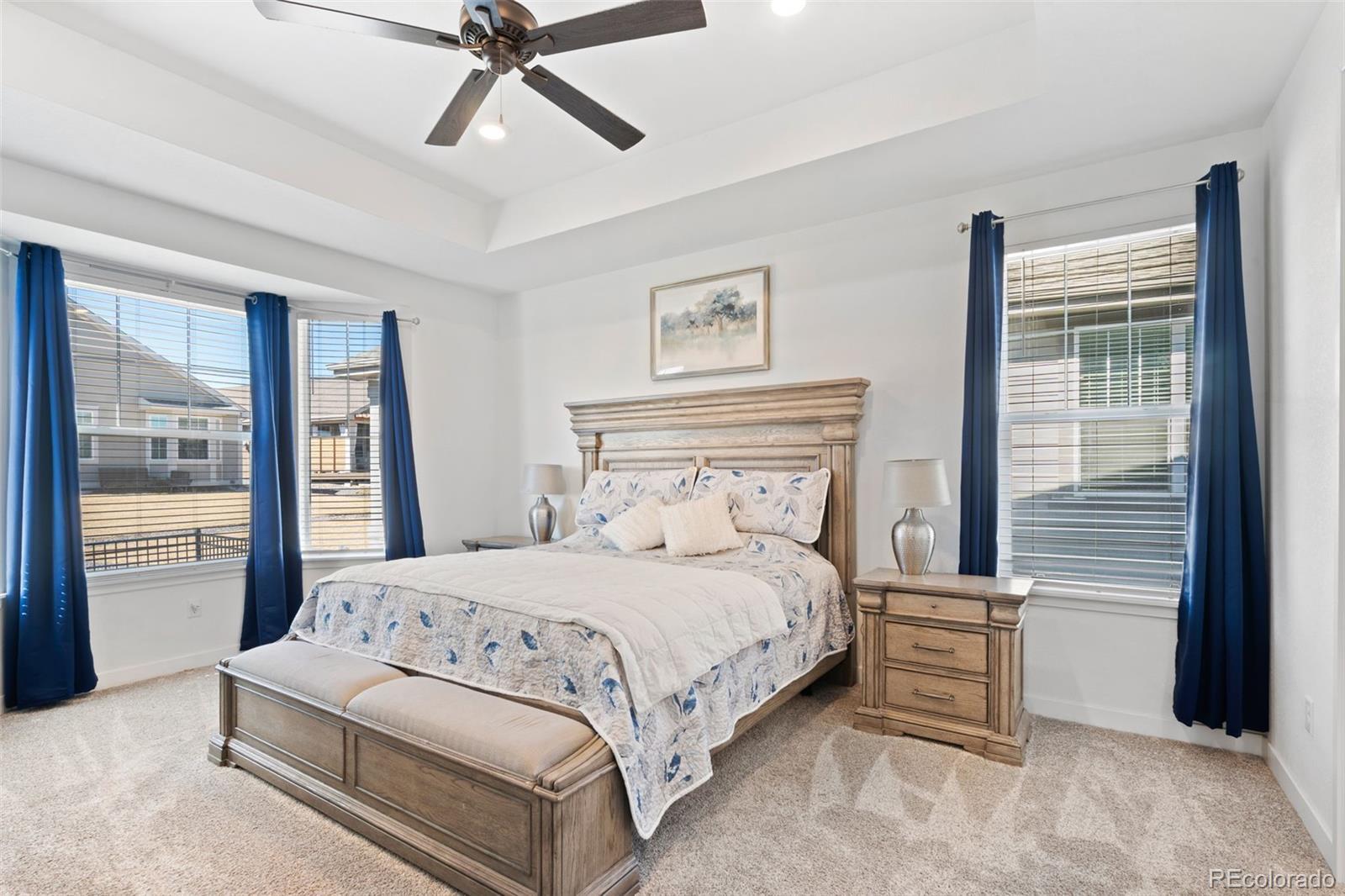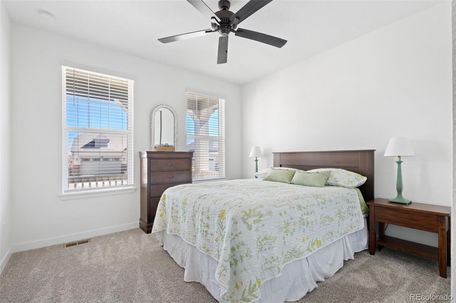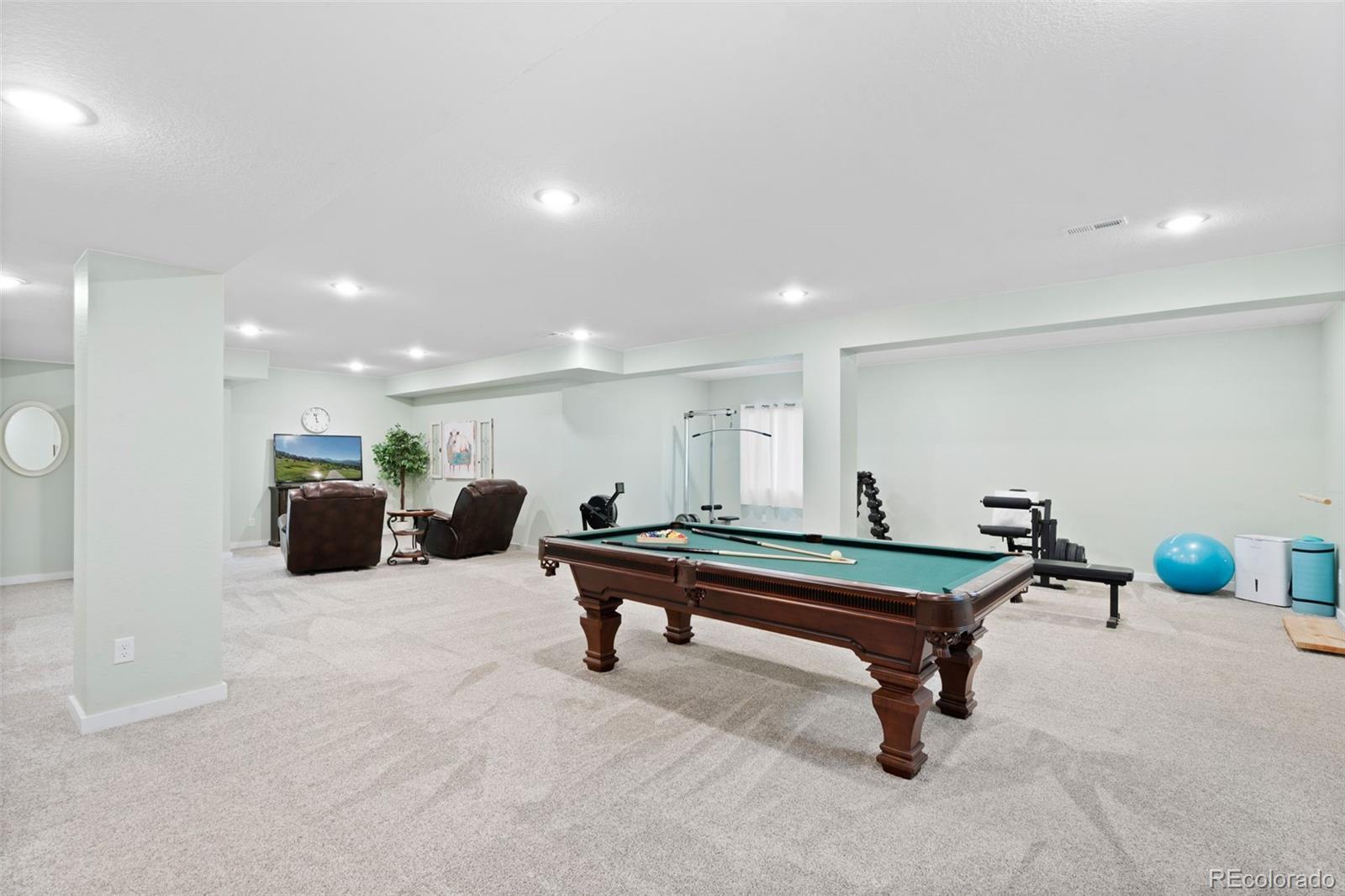 Welcome to this beautifully maintained ranch-style home with a finished basement in the highly desirable 55+ community of Heritage Todd Creek. Designed for comfort, flexibility, and easy living, this home offers space to relax, entertain, and enjoy the active lifestyle the community is known for. Start your mornings in the peaceful primary suite, where a charming bay window creates the perfect spot to enjoy a cup of coffee or read a book. Just steps away, the home’s most impressive feature awaits — a large, finished basement that significantly expands the living space and sets this home apart. The expansive basement great room is perfect for shooting pool, watching TV, setting up a workout area, or hosting game nights. A dedicated craft room provides plenty of space for hobbies, projects, or creative pursuits, and the layout still offers room to add one or two additional bedrooms if desired. Upstairs, the spacious main level includes three bedrooms and a comfortable living room centered around a cozy gas fireplace, creating a warm and inviting place to gather. The kitchen flows into a generous dining area, making everyday meals and entertaining easy. Thoughtful upgrades throughout the home add to both comfort and efficiency. Tinted windows help maintain a pleasant indoor temperature year-round, while solar panels provide valuable energy savings. Whether you’re hosting overnight guests with three bedrooms upstairs and additional sleeping space downstairs, or simply enjoying the extra room to spread out, this home offers versatility that is hard to find. Beyond the home, residents enjoy a vibrant lifestyle with dozens of clubs, activities, and amenities, including a clubhouse and restaurant, making it easy to stay active and connected in the wonderful Heritage Todd Creek community. Let this home become your next chapter.