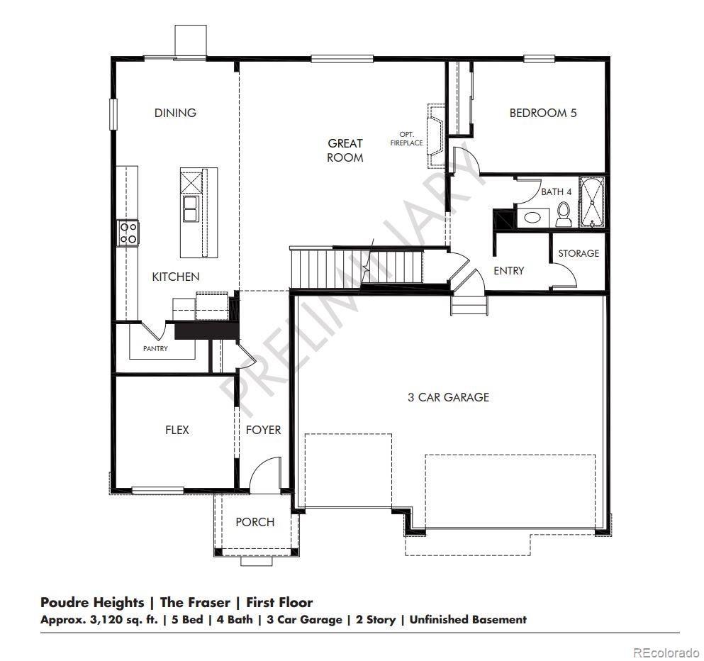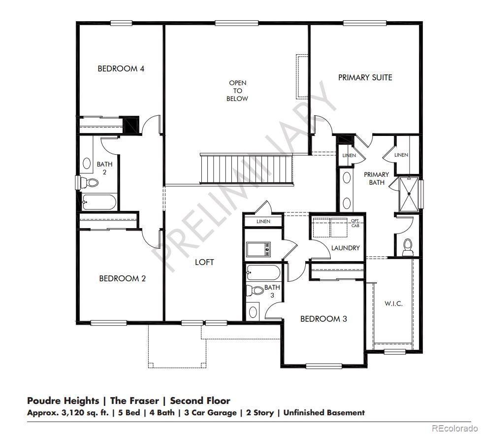 Unfinished Basement for future customization and storage! Ask a sales counselor about optional rear yard fencing!! Welcome to The Fraser, a thoughtfully designed two-story home that blends elegance with functionality. At the heart of the home is a breathtaking two-story great room, seamlessly connected to a spacious kitchen and dining area—perfect for entertaining or relaxing with loved ones. The expansive kitchen island serves as a natural gathering spot, ideal for hosting and everyday living. A private guest room on the main floor offers comfort and seclusion, making it perfect for visitors or multi-generational living. With five bedrooms, four full bathrooms, and a generous three-bay garage, The Fraser provides ample space for growing families and those who love to entertain. Experience elevated living in a home that’s as stylish as it is welcoming. Meritage Homes is known for quality construction, innovative design, and exceptional energy efficiency—thanks to features like advanced spray foam insulation. With transparent, all-inclusive pricing, every home includes appliances, blinds, and designer upgrades, ensuring a truly move-in ready experience that reflects our commitment to excellence and sustainability. Nestled in the heart of Windsor, Poudre Heights offers the perfect balance of small-town charm and modern convenience. Enjoy nearby parks like Eastman Park and Windsor West Park for outdoor fun. Shop and dine at The Promenade Shops at Centerra or Windsor Town Center, just minutes away. Whether you're planning a family outing, a date night, or a quick errand run, everything you need is right around the corner!
