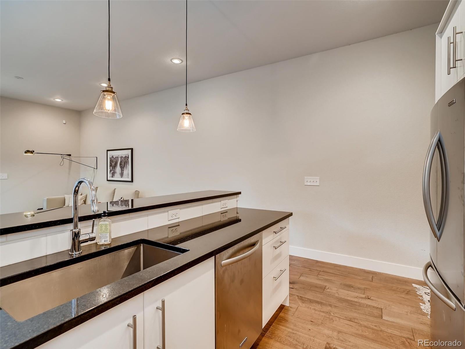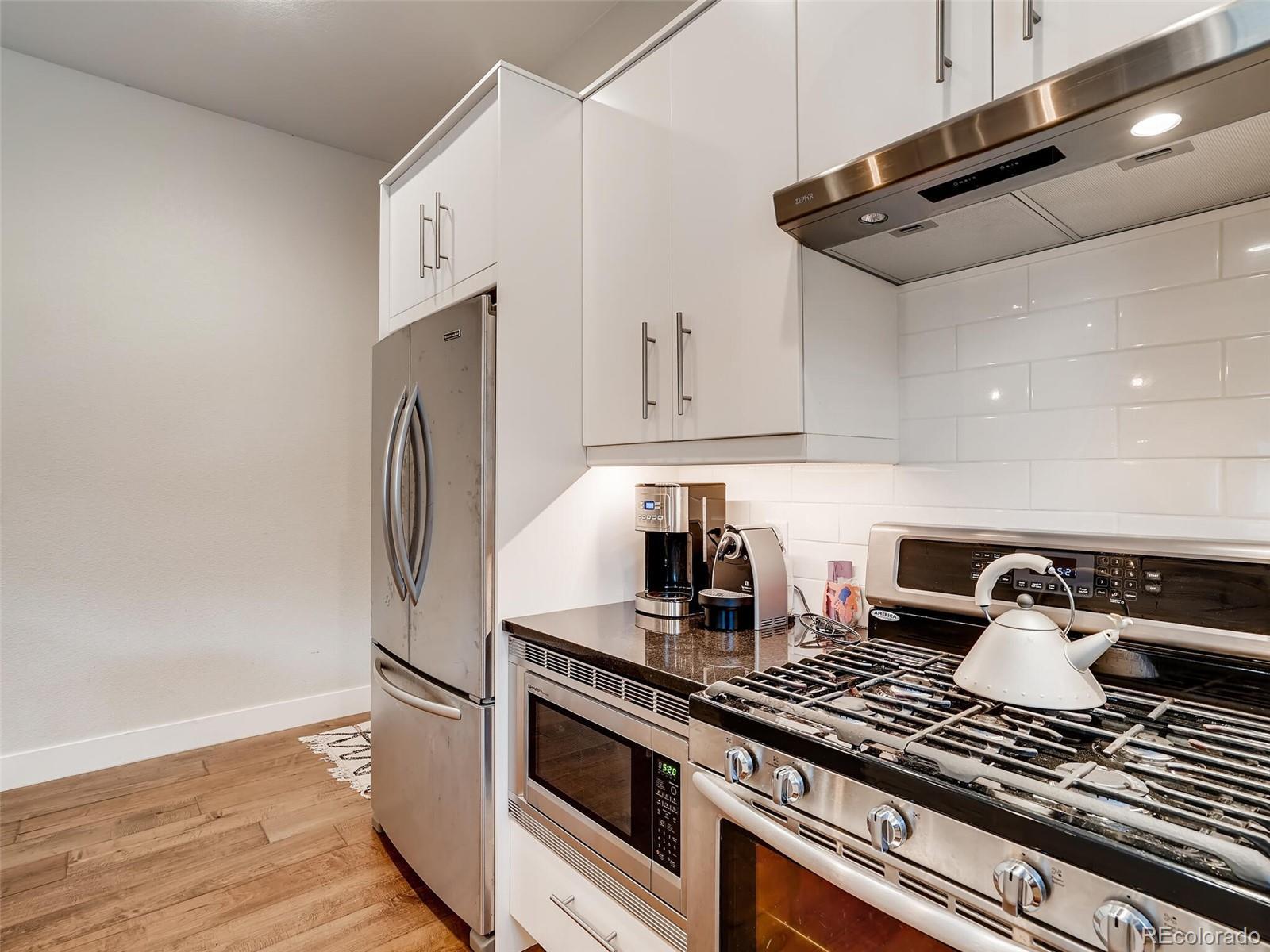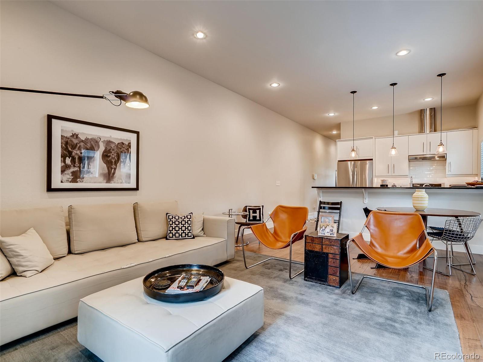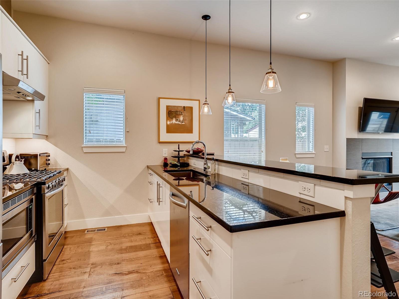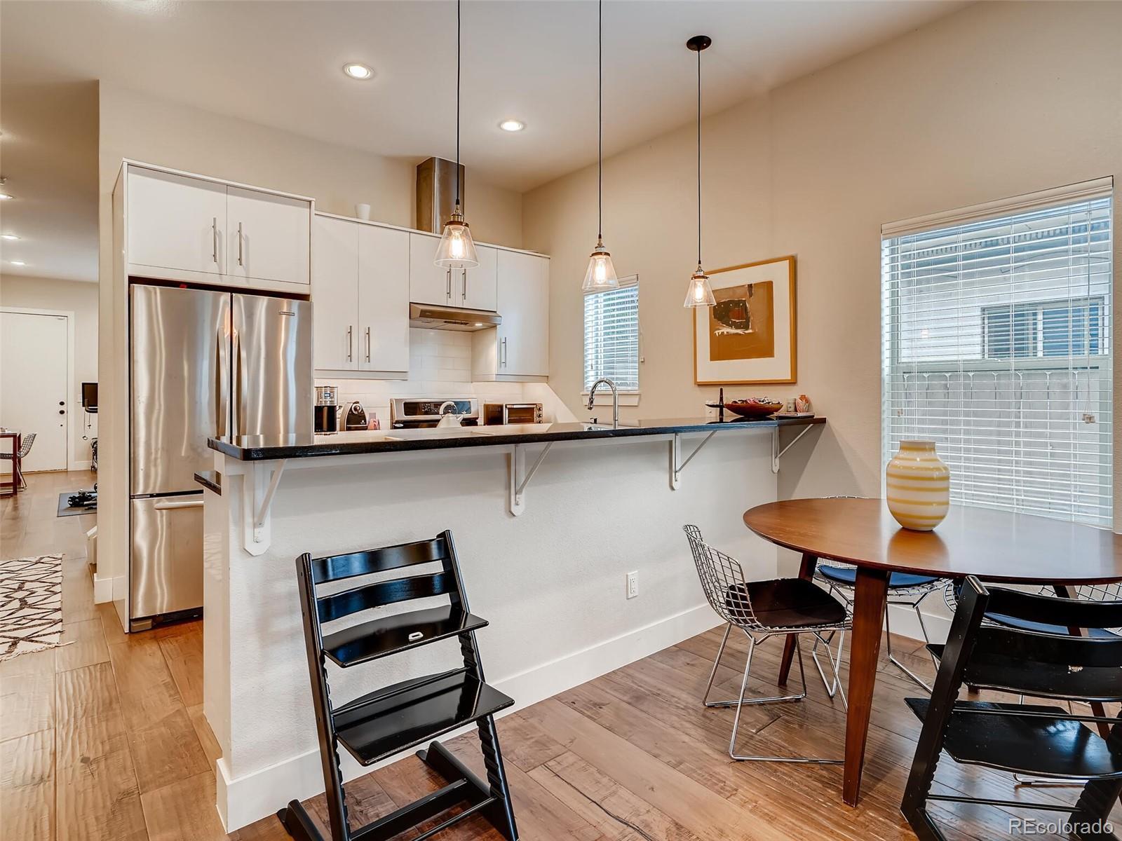 Stylish 3BR/2.5BR townhome located in Denver’s Wash Park West offers a fantastic location and off-street parking. This unit makes a great first impression with clean lines and a covered front patio with brick accents. Inside, wide plank floor and a flex area welcomes and can easily be office space or a sitting room. The sleek kitchen has clean, lacquered white cabinets, and SS fridge, oversized sink, dishwasher, microwave and 5 burner gas range. The adjoining family room includes a gas fireplace, space for a large TV and French doors with access to the low- maintenance backyard. Upstairs, a large master with great closet space and an attached bathroom with shower. Two additional bedrooms share a full bathroom upstairs along with W/D closet. Off-street parking includes a detached 1-car garage and an extra space next to the garage. One block to Starbucks, grocery stores and more. Easy freeway access. Style and a convenient location makes this townhome a great find!