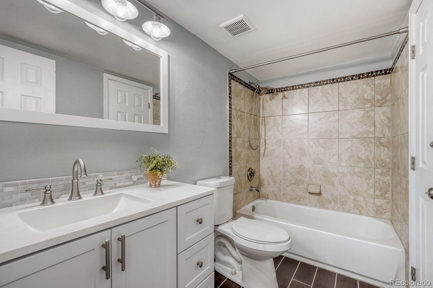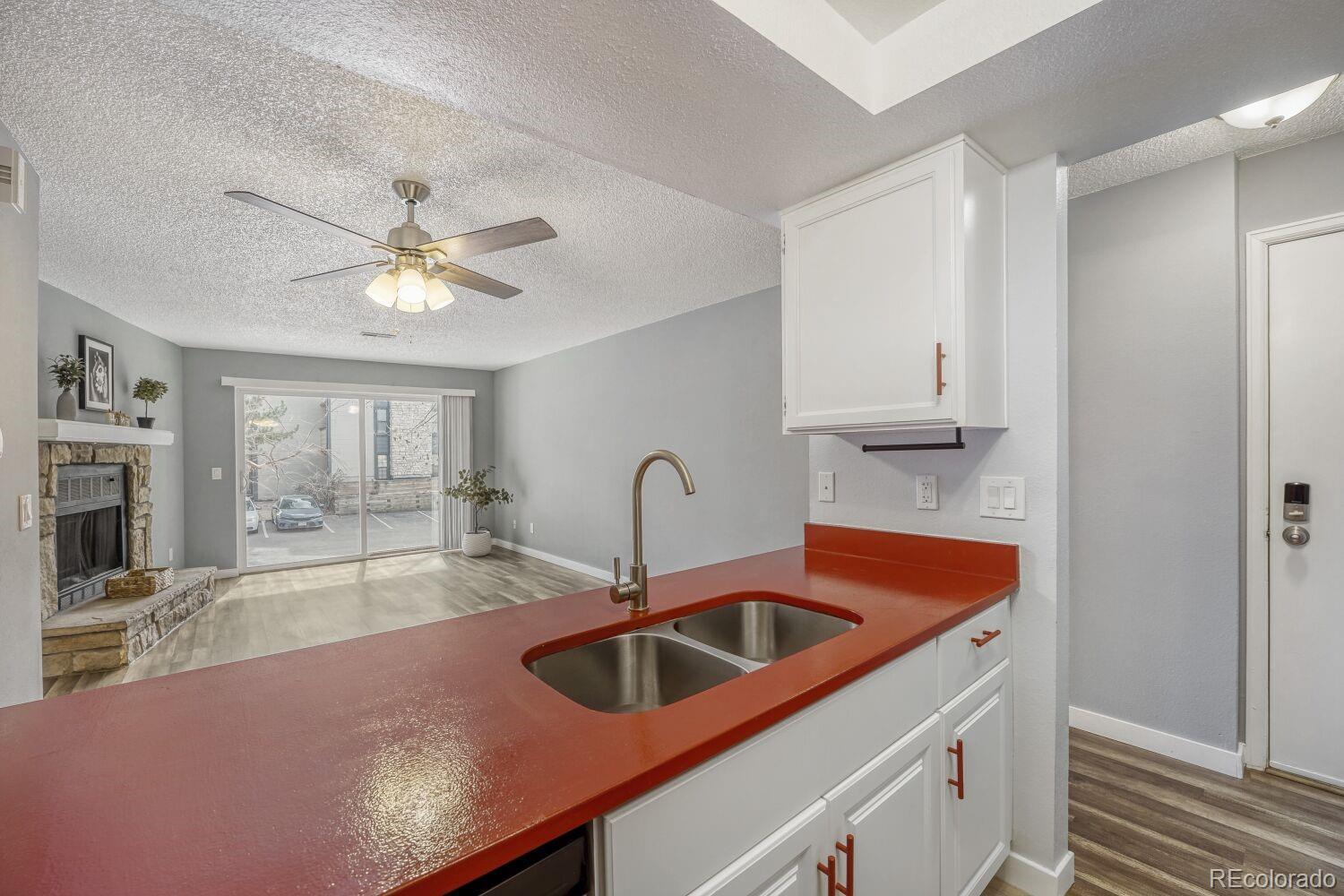 Welcome home to this charming 2 bedroom, 1 full bath, corner unit condo offering comfort, style, and low maintenance living in a prime location. The inviting living room features a cozy fireplace and a sliding glass door that fills the space with natural light while creating seamless indoor/outdoor flow to the patio, perfect for relaxing Colorado evenings. Enjoy cooking in the kitchen with stainless steel appliances, while the updated laminate flooring and fresh paint in the living room give the home a clean, modern feel. The thoughtfully designed layout features a Jack and Jill bathroom, providing added privacy and functionality for guest or roommates. Additional highlights include an in unit high efficiency washer and dryer, NEWER WATER HEATER (2023), NEW ROOF (2025). Security features include a Ring Doorbell and exterior patio camera. Enjoy community amenities such as a pool and tennis court(s), all with LOW HOA fees! Ideally located within blocks of shopping and dining, and just minutes to the light rail station, grocery store, fitness studios, parks, recreation, and the Anschutz Medical Campus. Easy access to I-225 and 20 minutes to DIA make commuting a breeze. Don't miss this opportunity to own a well appointed condo in an exceptional location.
