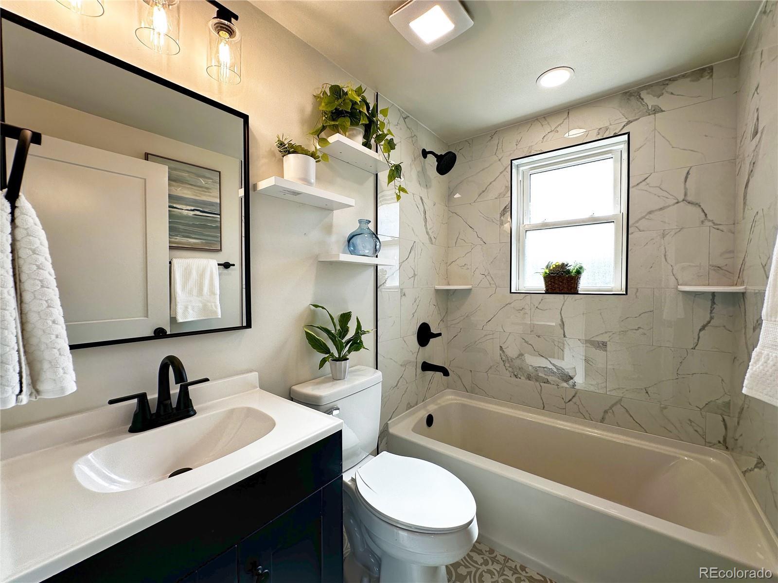 Completely updated and move-in ready, this beautifully remodeled Lakewood ranch offers modern comfort, thoughtful upgrades, and long-term peace of mind. The home features four bedrooms and two updated bathrooms, with a functional layout that includes a finished basement and a dedicated laundry room complete with full-size hookups and a utility sink. Recent improvements are extensive and meaningful, starting with a Class 4 Owens Corning hail-resistant roof paired with new 5” seamless gutters. Major systems have been replaced with a brand-new Goodman high-efficiency natural gas furnace, central AC, and a new 50-gallon hot water heater. Inside, you’ll find brand-new appliances, new flooring, fresh paint, and updated fixtures throughout, creating a clean, modern feel from top to bottom. The kitchen is highlighted by quartz countertops and a center island, offering both style and functionality. The exterior has been equally refreshed with a brand-new concrete porch, driveway, and sidewalks, along with a newly constructed two-car carport that is pre-wired for an electric vehicle charger. A 200-amp electrical panel provides ample capacity for today’s needs, and upgraded double-pane vinyl windows installed by a previous owner enhance efficiency and comfort. The fully fenced, level lot includes a new 400-square-foot Tough Shed, ideal for storage, hobbies, or a workshop. Conveniently located in Lakewood with easy access to nearby amenities, this updated home combines modern systems, quality finishes, and practical upgrades—making it a standout opportunity for buyers seeking a truly turnkey property.