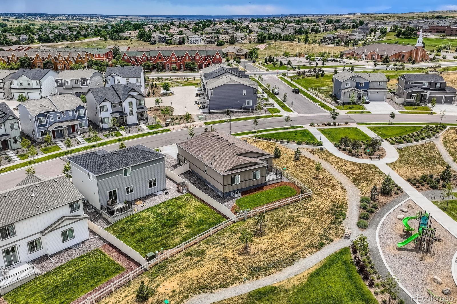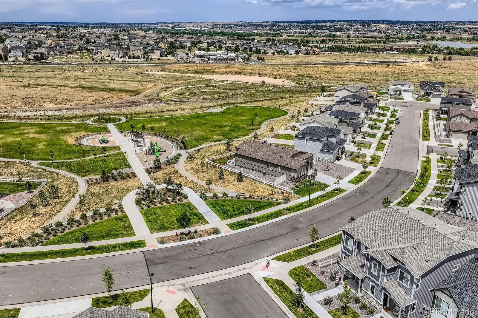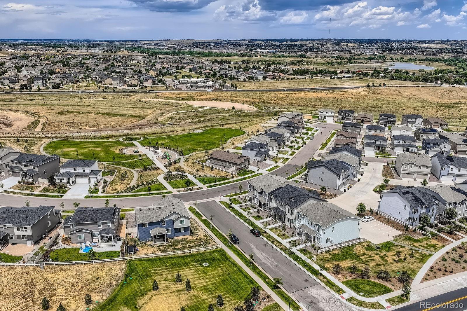 Welcome home to this beautifully designed Telluride model, offering a bright, open layout with three spacious bedrooms and two baths, perfectly blending comfort and style. The expansive great room is anchored by a stunning quartz tiled gas fireplace, creating a warm and inviting space for everyday living or entertaining. The gourmet kitchen is a true showstopper, featuring elegant cabinetry, quartz countertops, a large statement island, and a walk-in pantry ideal for hosting, cooking, and gathering. Thoughtful upgrades throughout the home include ceiling fans, an upgraded dining light fixture, window coverings, and all appliances included washer and dryer too. The unfinished basement provides incredible future potential, with plumbing already stubbed in, allowing you to customize and expand to suit your lifestyle. Set on a 6,790-square-foot premium lot bordered by open space on two sides, this home offers rare privacy and peaceful views. Relax on the welcoming covered front porch or entertain on the back patio, where sunsets over the adjacent park create a perfect backdrop. Both the home and the professionally landscaped exterior are truly move-in ready, so you can start enjoying it from day one. Located in a desirable Parker community with parks and a swimming pool, this home also offers easy access to shopping, schools, dining, and entertainment. This is a rare opportunity to own a beautifully upgraded home in an exceptional setting come experience everything this Parker property has to offer.