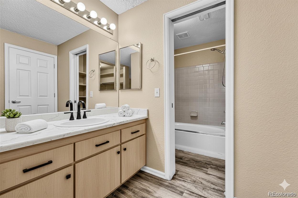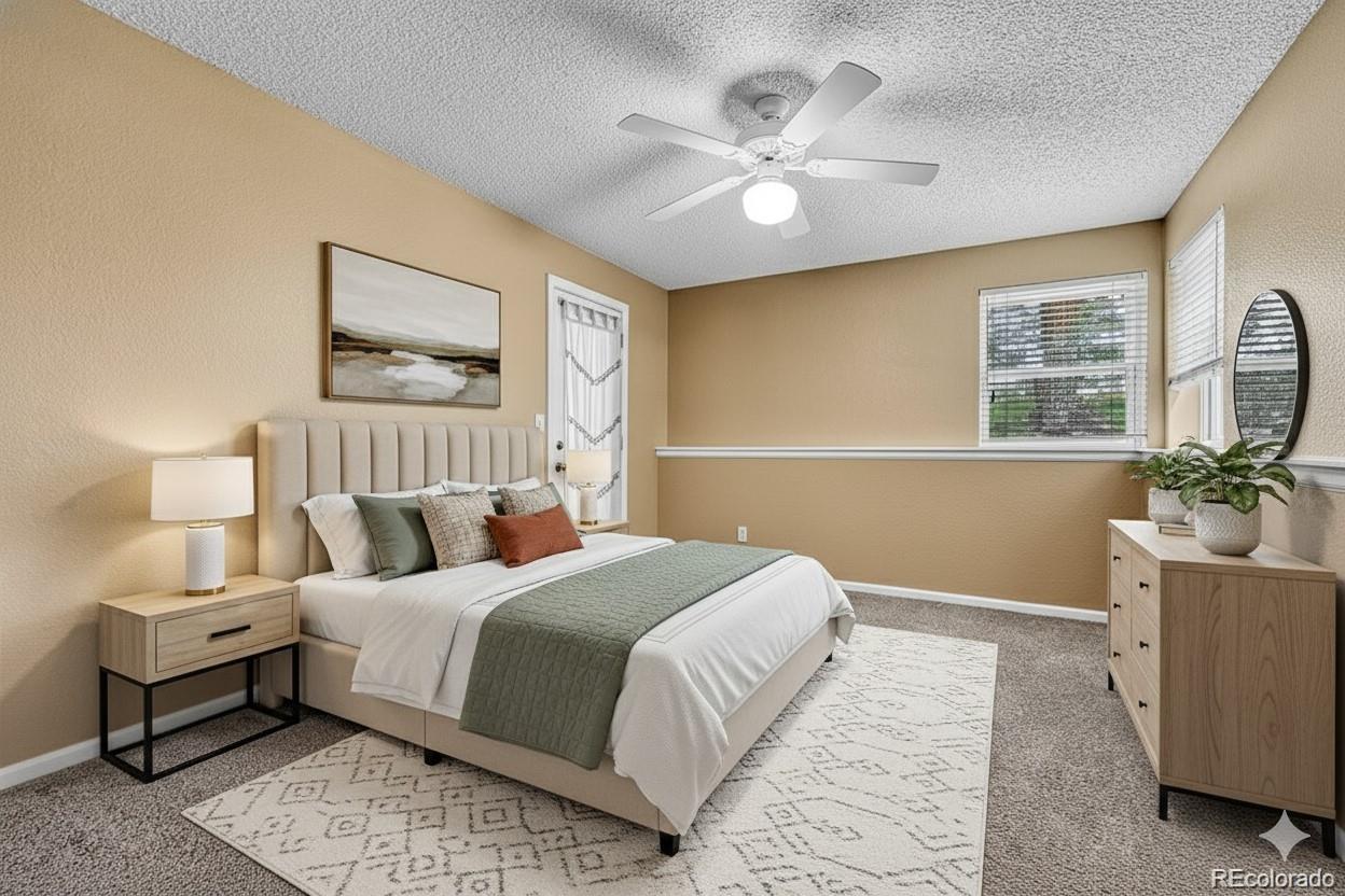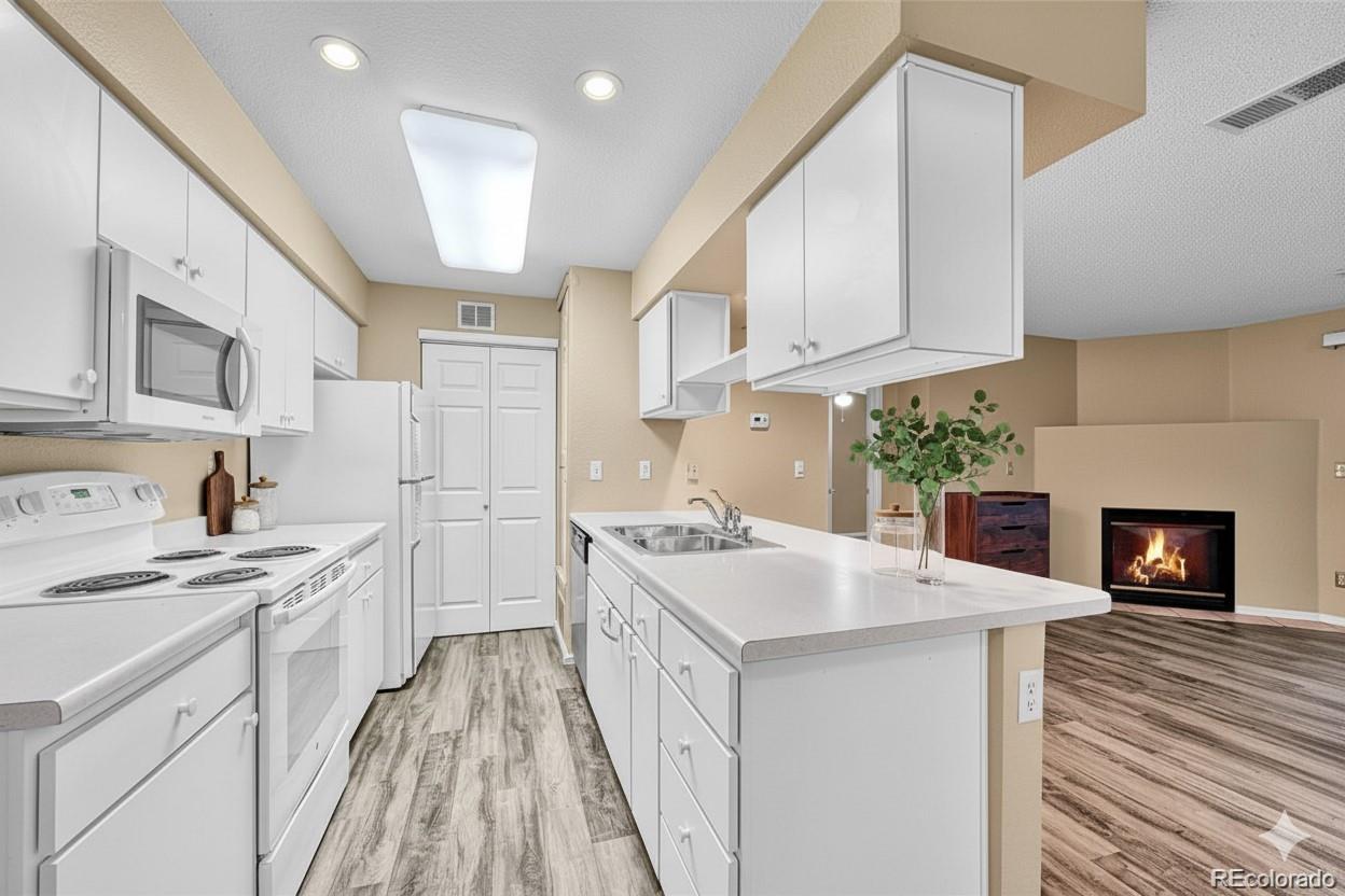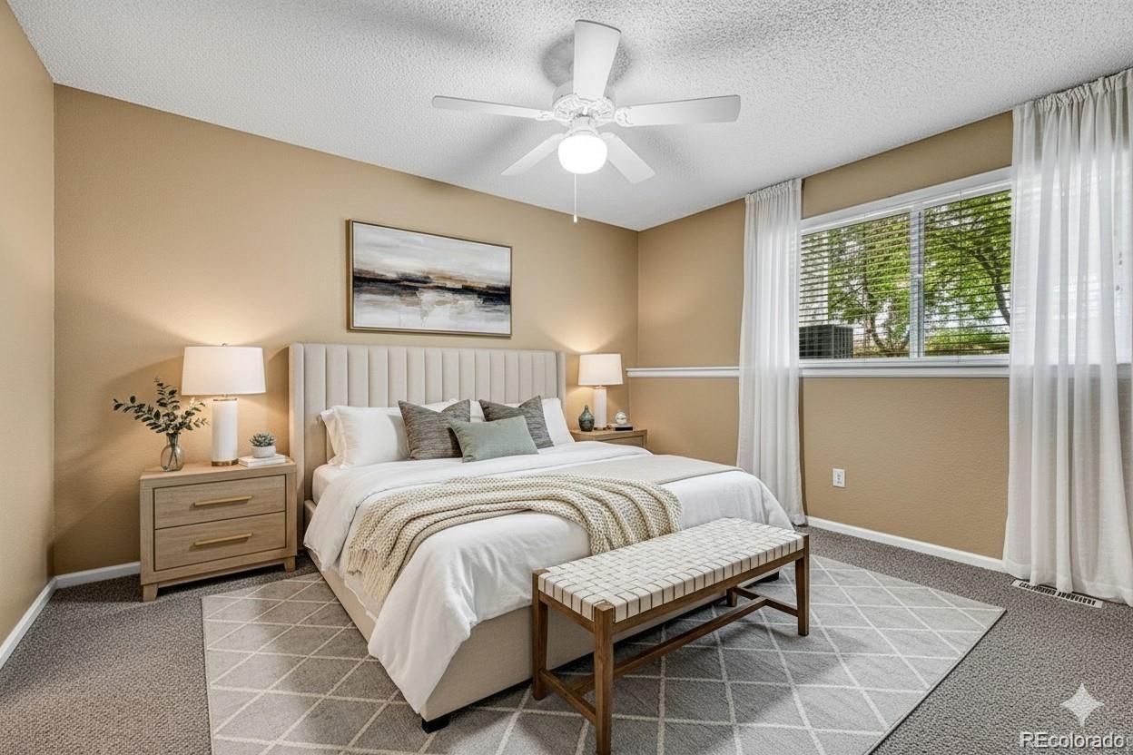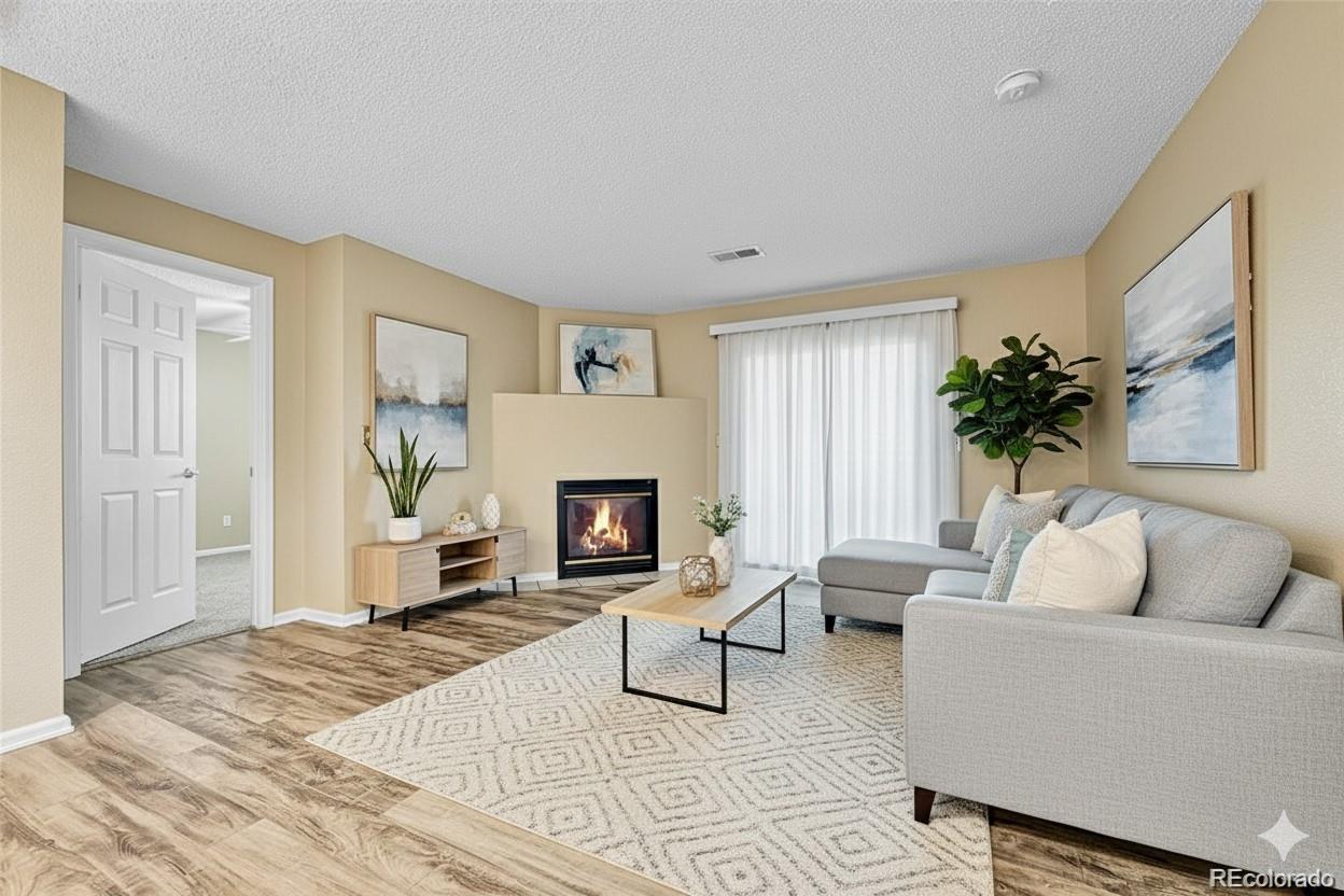 Welcome to your charming new home—this inviting condo offers unbeatable access to nearby parks and scenic trails! Step inside to a bright, open-concept layout, freshly repainted with freshly cleaned carpet in both bedrooms. The spacious living room features a cozy gas fireplace and opens to a large, private patio backing to peaceful open space. Enjoy the comfort of dual primary suites, each with its own en suite bath and walk-in closet. Additional highlights include central A/C, in-unit laundry, and stylish vinyl flooring throughout the main living areas. Come see it in person! Please contact Elizabeth Voorhees for any questions regarding the property. (303-570-3394) Select photos feature virtual staging to highlight the layout and potential of the home. Actual property is vacant and may appear different in person.