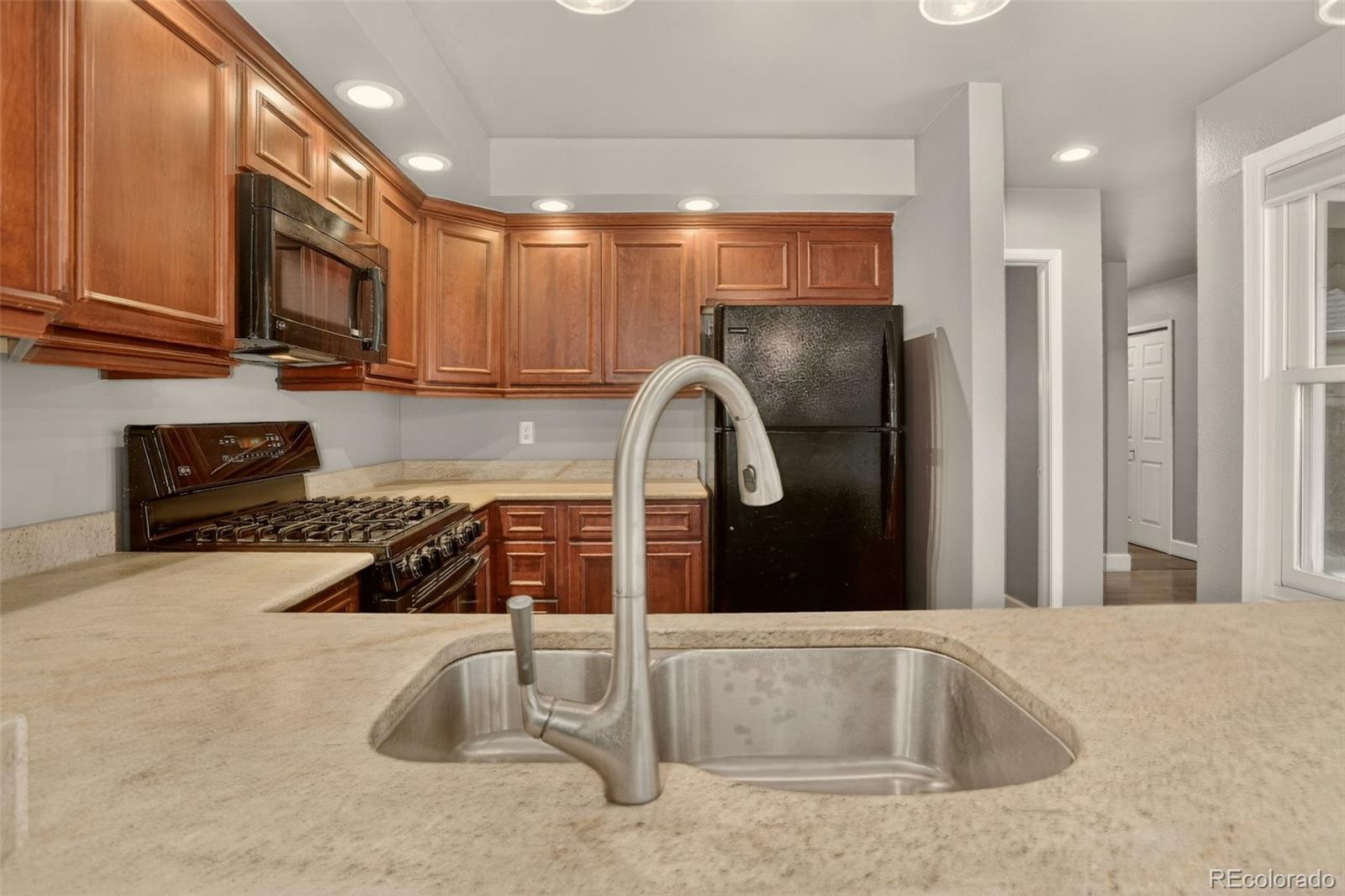 Welcome to a beautifully maintained multi-level home in one of Aurora’s most convenient and sought-after locations, just minutes from the Cherry Creek State Park trail system, everyday amenities, and major commuter routes. The main level offers a thoughtful blend of engineered hardwood and carpeted living spaces, including an inviting family room enhanced by an electric fireplace, recessed lighting, a ceiling fan, and seamless access to the backyard patio with a pergola that opens to peaceful natural space. The dining room brings charm and functionality with built-in shelving, cabinetry, a textured granite bar, and warm farmhouse-style lighting, while the eat-in kitchen provides a comfortable breakfast nook, pantry, granite accents, recessed and sconce lighting, and direct access to the extended two-car garage. A flexible main-floor bedroom or office with a ceiling fan sits next to a well-appointed bath with tile finishes and spotlight lighting. Upstairs, the primary suite offers a relaxing retreat with a walk-in closet, seating area, ceiling fan, and a European-inspired en-suite bathroom featuring dual sinks, granite countertops, a tile tub and shower, skylight, and elegant lighting. A secondary upstairs bedroom includes its own en-suite bath with granite finishes and a medicine cabinet. The fully finished basement adds exceptional livability with a spacious family room, granite wet bar, built-in cabinetry, a laundry area with washer, dryer, and mini-fridge, a bath with tile shower, and two additional rooms—one conforming bedroom with bathroom access and one non-conforming room ideal for guests or flex use. With multiple gathering spaces, thoughtful updates, and a serene backyard that truly sets the tone, this home delivers the comfort, versatility, and lifestyle buyers look for in Aurora.
