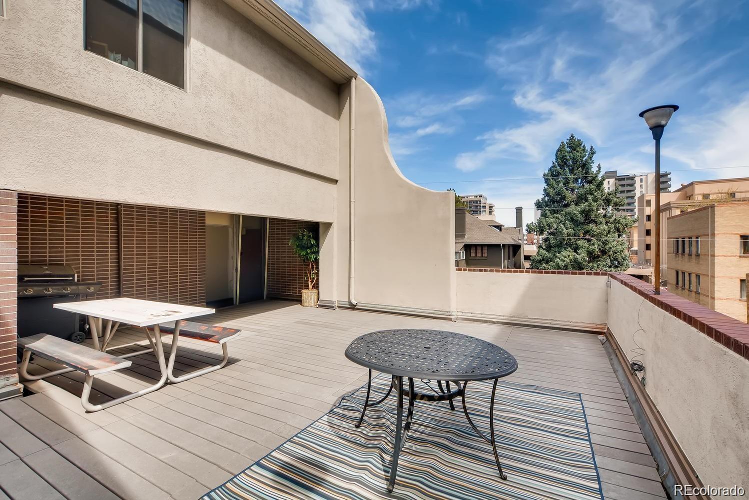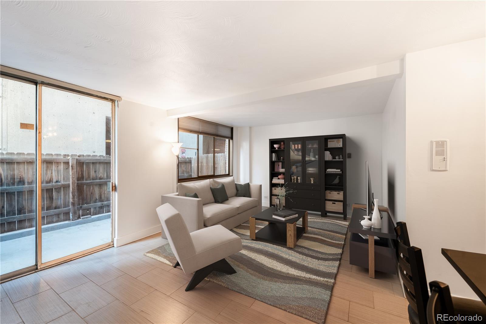 Updated spacious studio condo located right in the heart of Capital Hill! Unbeatable location for this stylish unit which also comes with a RARE private outdoor patio and 1 deeded reserved parking space! Lots of natural light shines through this corner unit studio that is quiet & cozy while also open & spacious due to it's open concept floor plan. A well thought out space that includes a built-in Murphy Bed and and "eat in" kitchen for maximizing the square footage & functionality of the studio space. Refreshed flooring throughout & a tastefully updated kitchen which includes granite countertops, stainless steel appliances, & custom backsplash. The oversized bathroom has been updated with a stylish vanity & lots of built in shelving. Storage won't be an issue as there are two large closets in the unit and an additional private/dedicated storage space located in the secured covered garage that can fit bikes, skis, golf clubs, etc. Finally, there is a rare in-unit washer/dry set and dedicated heating & cooling systems to round out everything you'd need in order to live comfortably! A meticulously maintained building with includes a bonus rooftop patio for residence to enjoy and a newly installed security & electronic entry access system. Come see this adorable studio that sits in one of Denver's liveliest neighborhoods that is just steps away from to Governors Park, coffee shops, restaurants, bars, museums, parks, grocery stores & much more!