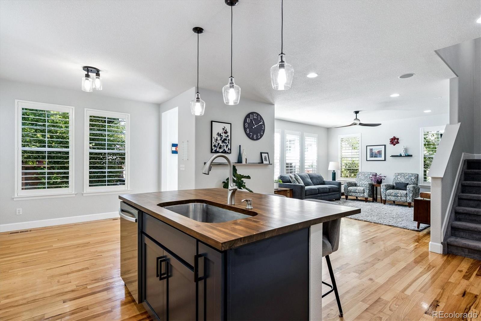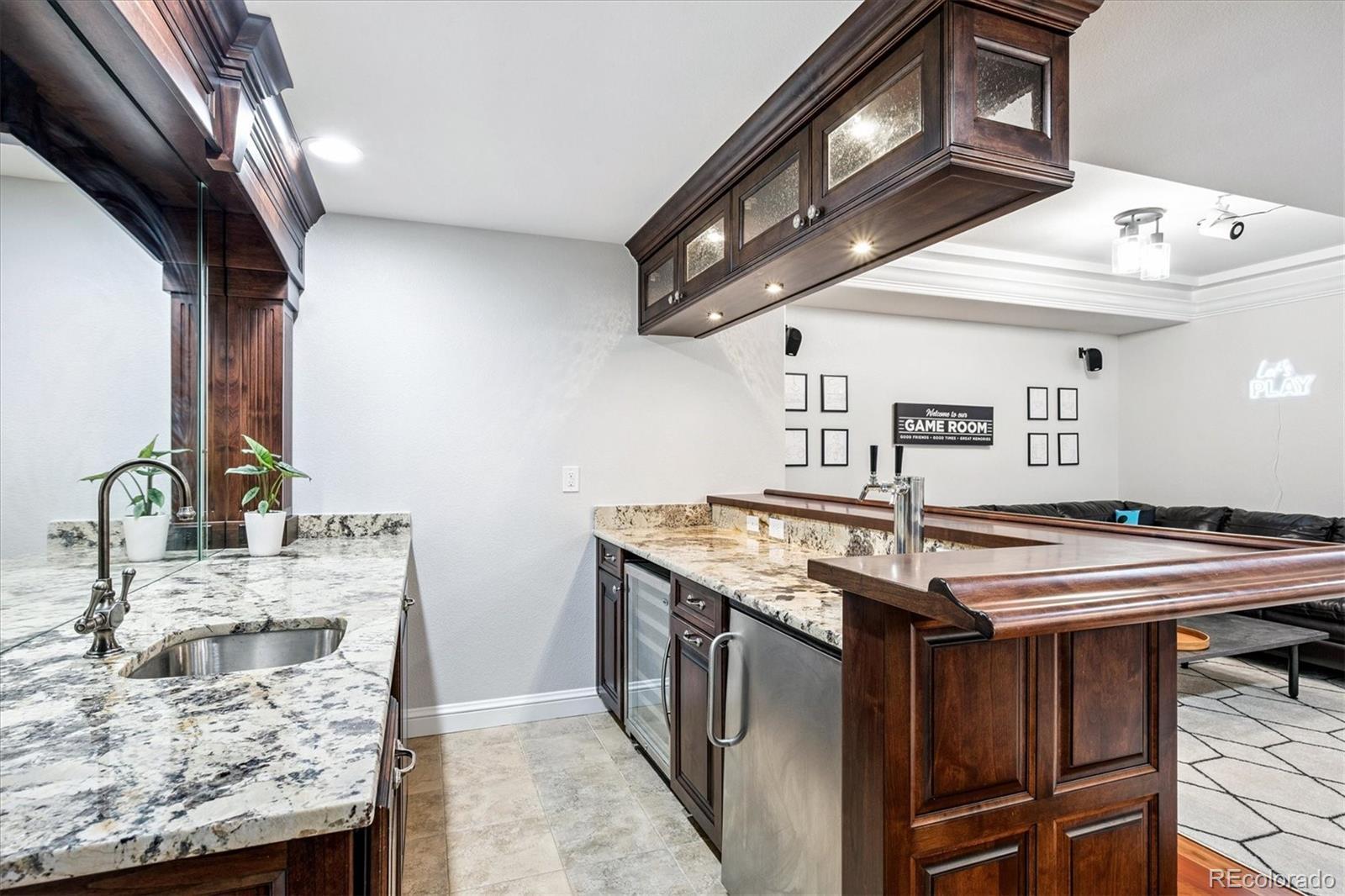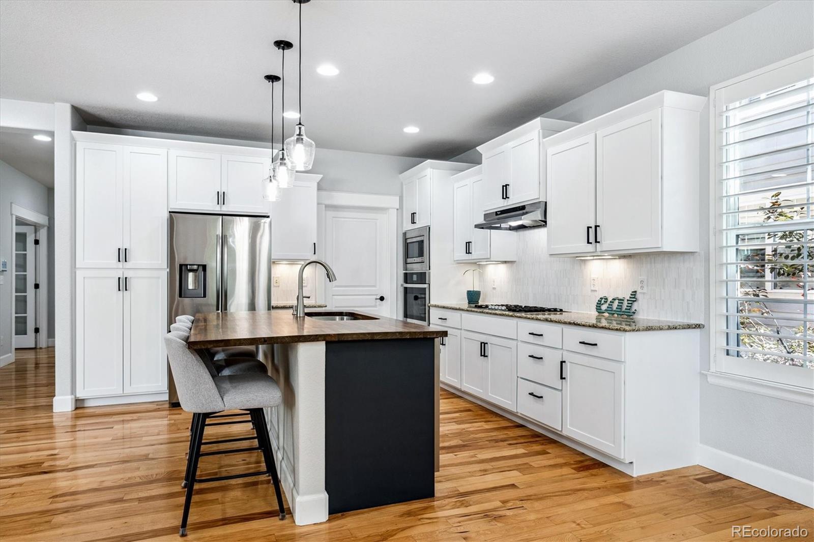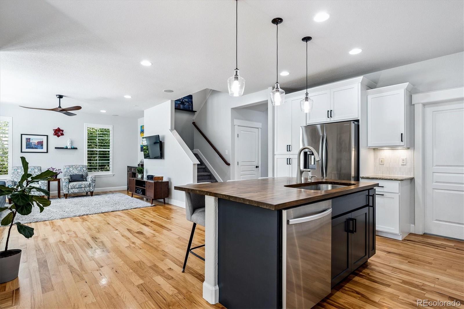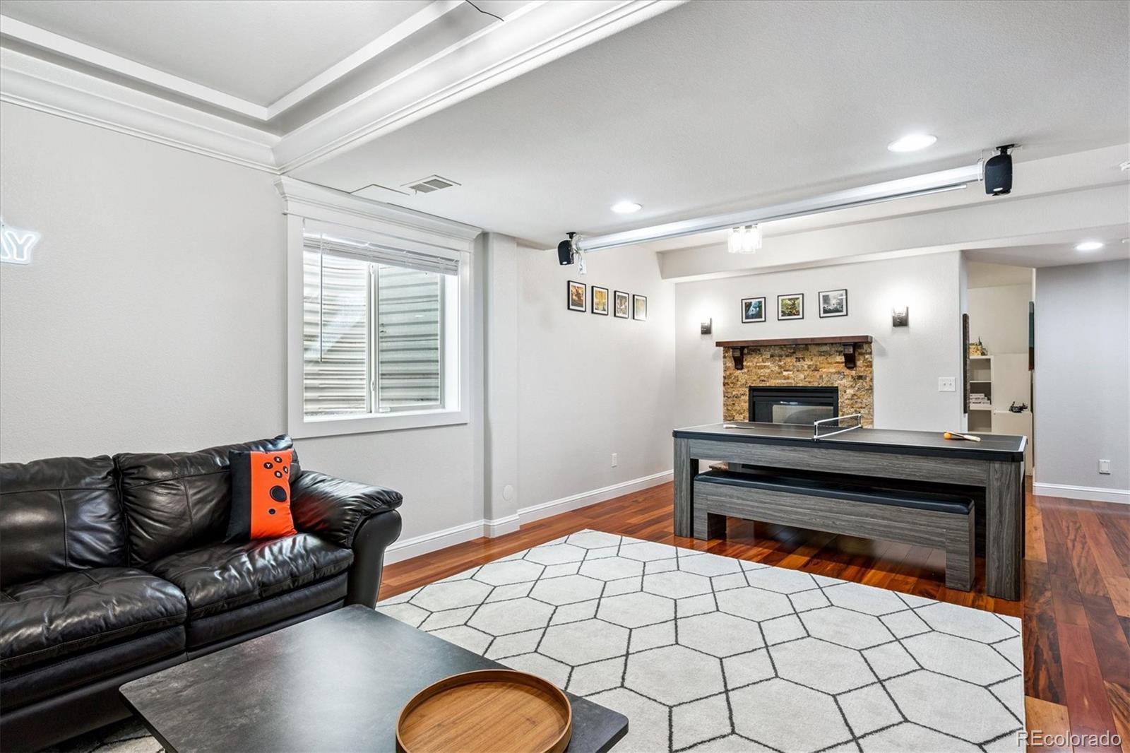 Step into a home where modern elegance meets everyday comfort, nestled in the heart of Denver’s vibrant Central Park neighborhood. This is more than just a house—it’s a place where your future begins to take shape. Thoughtfully crafted by an award-winning Summit County builder, every element of this residence was designed with the modern lifestyle in mind. Warm hardwood floors flow throughout the open main level, creating a seamless and inviting atmosphere. At the heart of the home is a chef-inspired kitchen, complete with a striking butcher block island and top-tier appliances. Whether you’re preparing meals or catching up with friends, the kitchen opens gracefully into the living area, where abundant natural light enhances the bright, airy feel. Downstairs, the fully finished basement includes a custom-built-in bar, spacious additional bedroom, and stylish ¾ bathroom—ideal for guests, multigenerational living, or a private office setup. You'll also find a dedicated game room and projector TV setup, creating the ultimate space for movie nights or casual get-togethers. Whether you're entertaining friends or enjoying a quiet night in, this lower level is designed to bring people together. Upstairs, the primary suite is a true retreat, complete with an updated five-piece bathroom, a generous walk-in closet, and a bonus space perfect for a home office, reading nook, yoga studio, or whatever suits your lifestyle. Two additional bedrooms offer comfort and privacy, and are complemented by a newly remodeled full bathroom, providing convenience and a touch of luxury for family members or guests. Step outside to your private backyard oasis with a grassy yard, freshly painted fence, and a spacious deck—perfect for morning coffee, evening stargazing, or simply unwinding after a long day. Situated with convenient access to Central Park's dog park and local shops, this home offers not only a beautiful living space but also a vibrant and connected community. Invest in your future