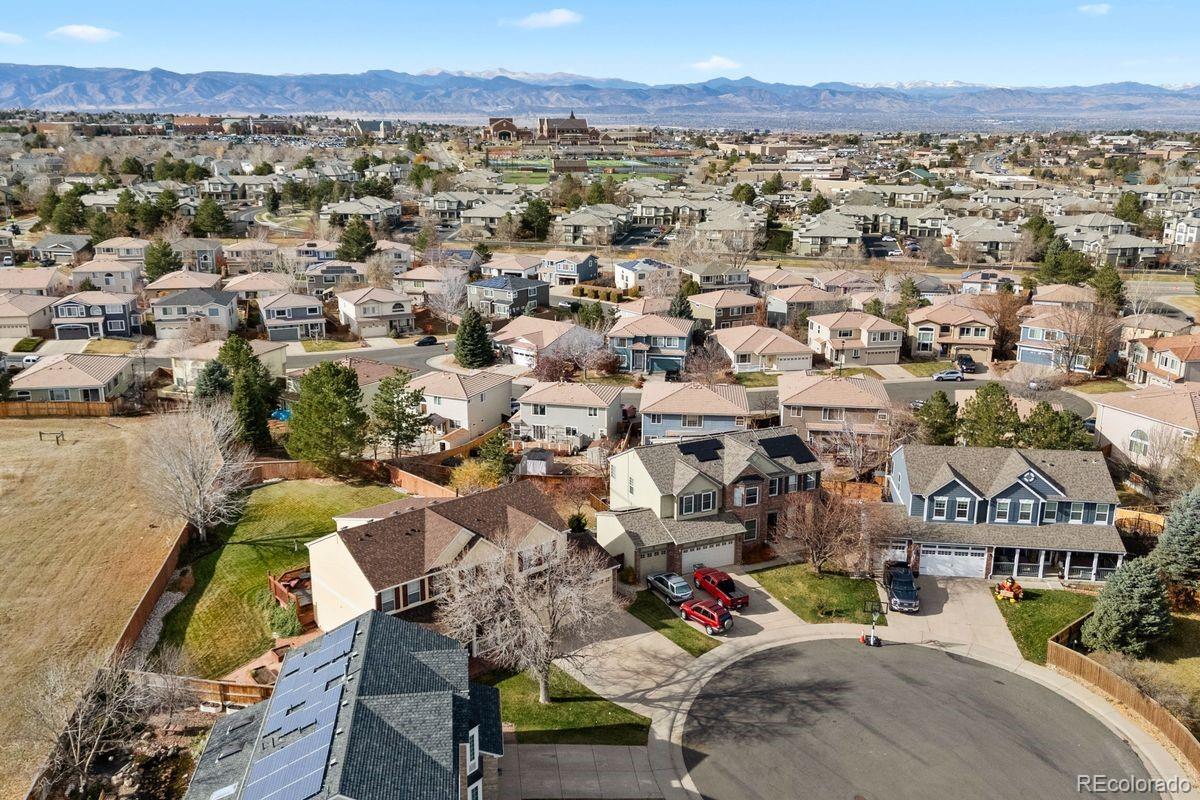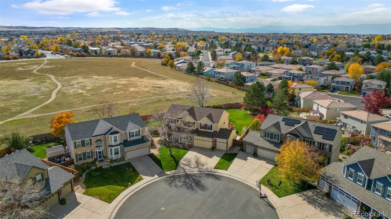 Welcome to a residence where timeless charm & thoughtful sophistication meet in perfect harmony. Set within one of Highlands Ranch’s most treasured pockets, this renewed home rests on a rare .32-acre flat lot and offers grace, intention, & warmth throughout. Upon entry, rich character, hardwood floors, & calm finishes create an immediate appeal. The layout opens to a sun-filled family room & updated kitchen, where large windows bring in abundant light & frame scenic views. A grand fireplace centers the space, offering comfort for both quiet moments & lively gatherings. The kitchen is designed with care, featuring designer cabinetry, elegant countertops, a subway-tile backsplash, & a walk-in pantry. An inviting office with sliding glass doors directly to the hot tub in the backyard, along with a full bathroom, living room, and dining room, completes the main level. Upstairs, the primary suite provides a spa-like retreat with a fully renovated bath including heated floors, contemporary fixtures, and a serene ambiance. Three additional bedrooms share a refreshed bathroom, & a conveniently located laundry room enhances everyday ease. Each space honors the home’s classic style while incorporating tasteful upgrades that elevate comfort. The finished basement offers versatility with a cozy fireplace, bar area, office and guest suite, and a stunning walk-in shower with dual showerheads—ideal for visitors or extended stays. An unfinished bonus room provides potential for a future bedroom, gym, or creative studio. The backyard is truly exceptional. Backing to scenic trails and opening to mountain views, it offers rare privacy and a deep connection to nature. With its expansive lawn, hot tub, and wide entertaining deck, this outdoor haven feels like a sanctuary—perfect for gatherings, quiet mornings, and lingering evenings. Every corner of this home blends traditional warmth with elevated design, creating a place where elegance feels effortless and comfort feels complete.