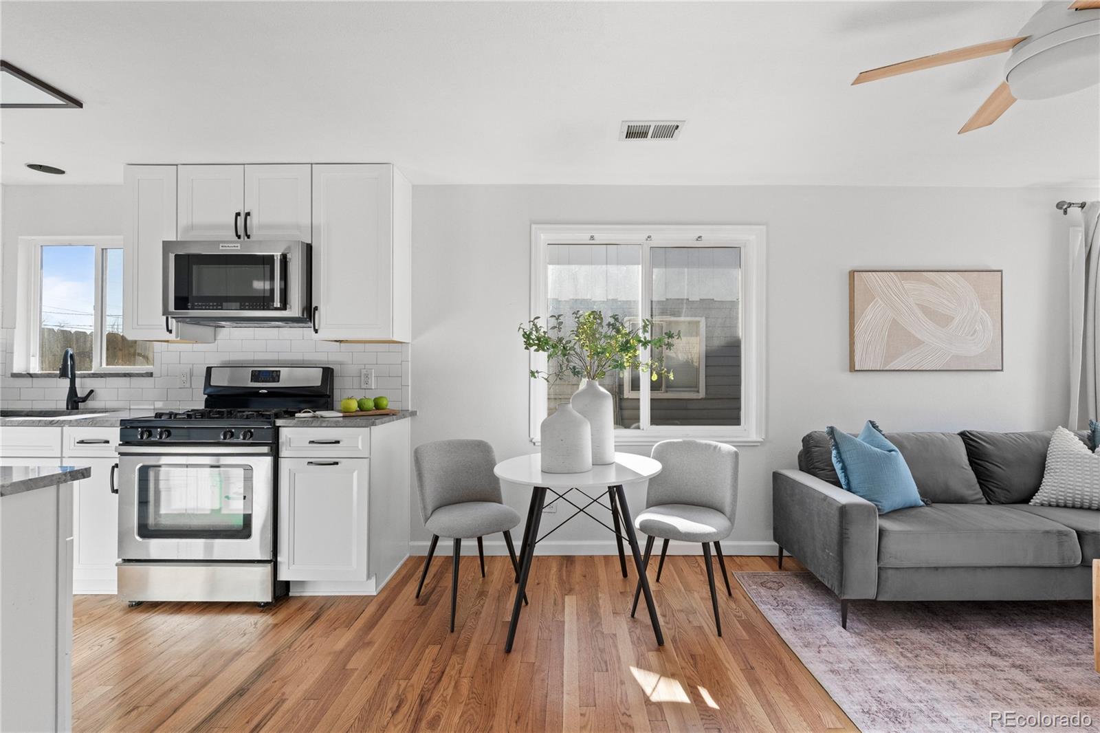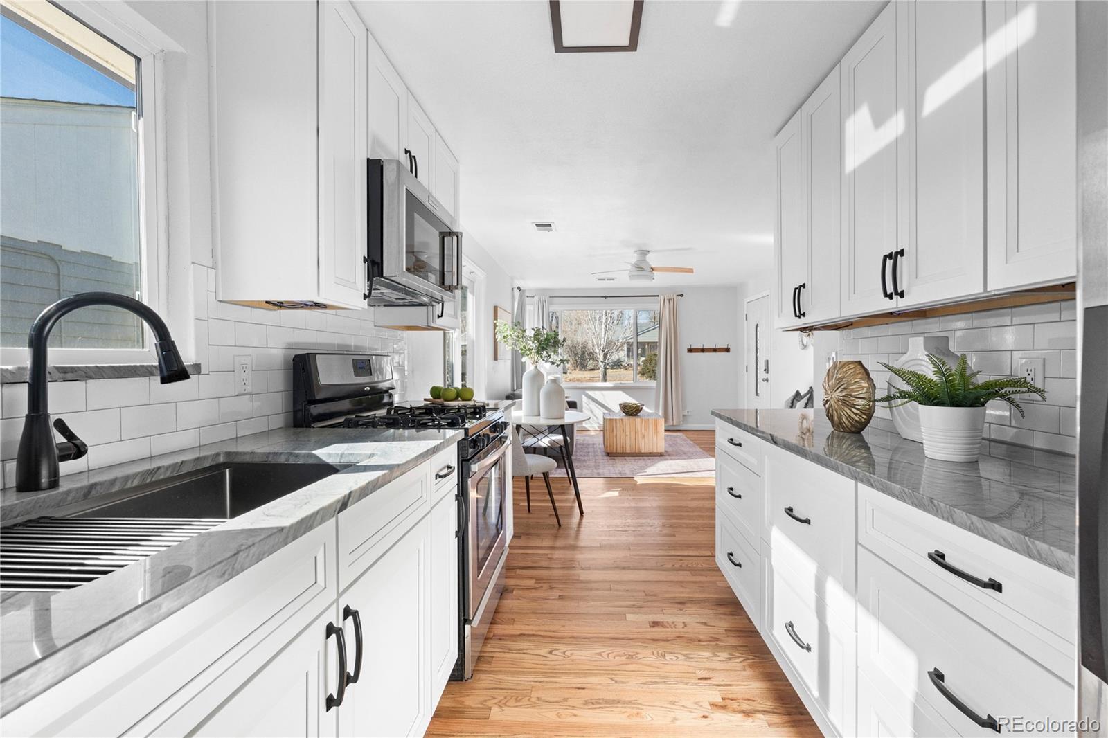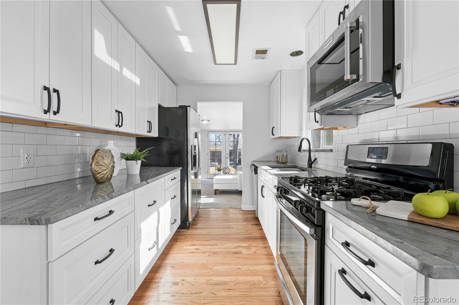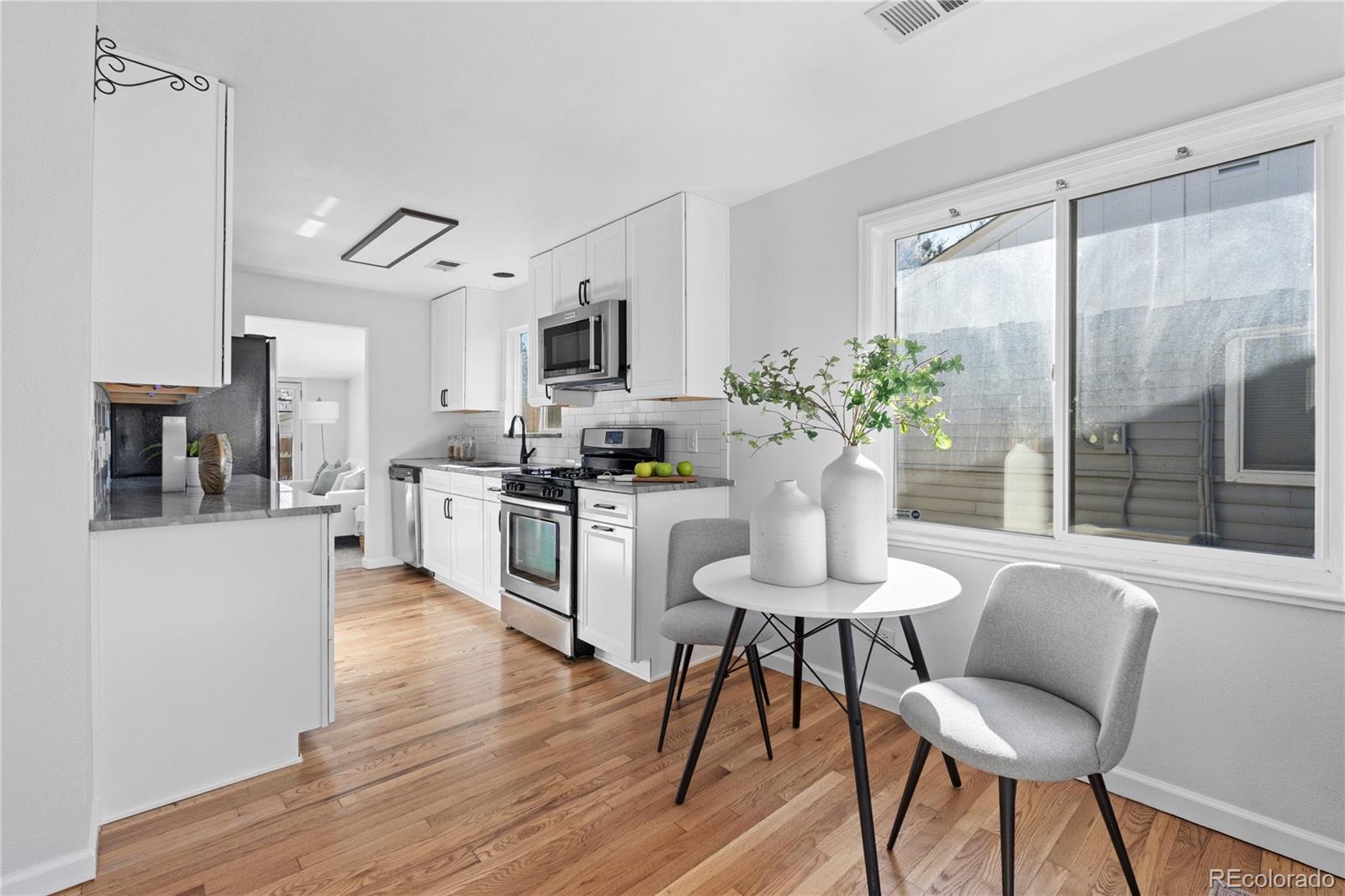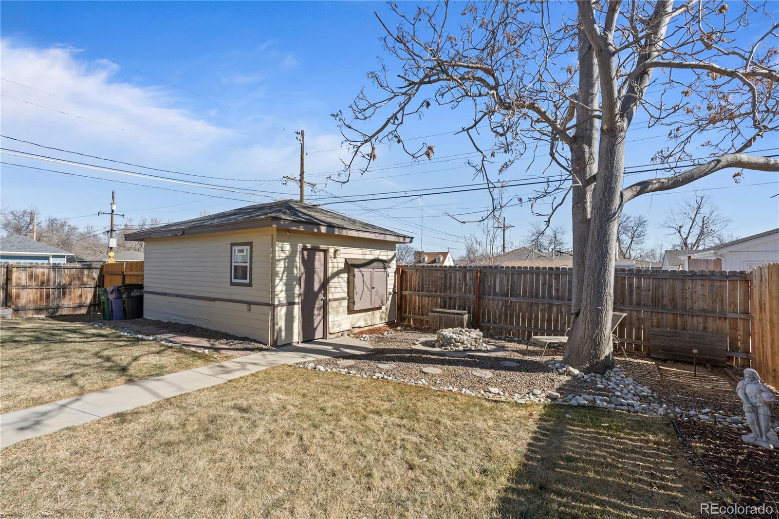Welcome to 4994 Umatilla Street, an elegant home on a spacious and sun drenched 6,250-square-foot corner lot, offering a harmonious blend of privacy, yard space, and urban convenience. With 1,273 square feet of thoughtfully designed living space, this 3-bedroom, 2-bathroom property provides the perfect canvas for modern living. Step inside to discover an updated contemporary kitchen including newer cabinets, slab quartzite counters, a 4 burner gas stove, Stainless Steel appliances and undermount cabinet lighting. The extensive hardwood floors on the main floor include the entry, living room, kitchen and 2 secondary bedrooms. Complimented with a nice full bath and remodeled 3/4 bath with glass shower, new vanity and slab quartz counter. From the family room you can escape through the French doors to the expansive and fully fenced private yard, perfect for entertaining under the beautiful wood pergola. The backyard features a Bluetooth stereo with speakers, firepit, outdoor TV weather protected cabinet, horseshoe pit, and drop-down screen with projector for use with the 5-speaker surround mounted speakers in the pergola. For those with a green thumb, the existing planter boxes make it easy to start your gardening projects while soaking up all the natural light in this stunning oasis-like yard. The yard also features a 11-foot wide rear gate that allows vehicle or trailer access up to 20-feet in length on the gravel pad. The enclosed outdoor sunroom off the primary bedroom adds some great additional bonus space that is perfect for a small sitting room, office or even workout room. Located just a short 2 block walk from Chaffee Park, this modern retreat offers a unique opportunity to live in a home that combines style and great access to major highways including I-70 and I-25 while being a short ride into everything downtown Denver or the many other surrounding neighborhoods like Tennyson St, LoHi, Sunnyside, the Highlands and more. Schedule your tour today!