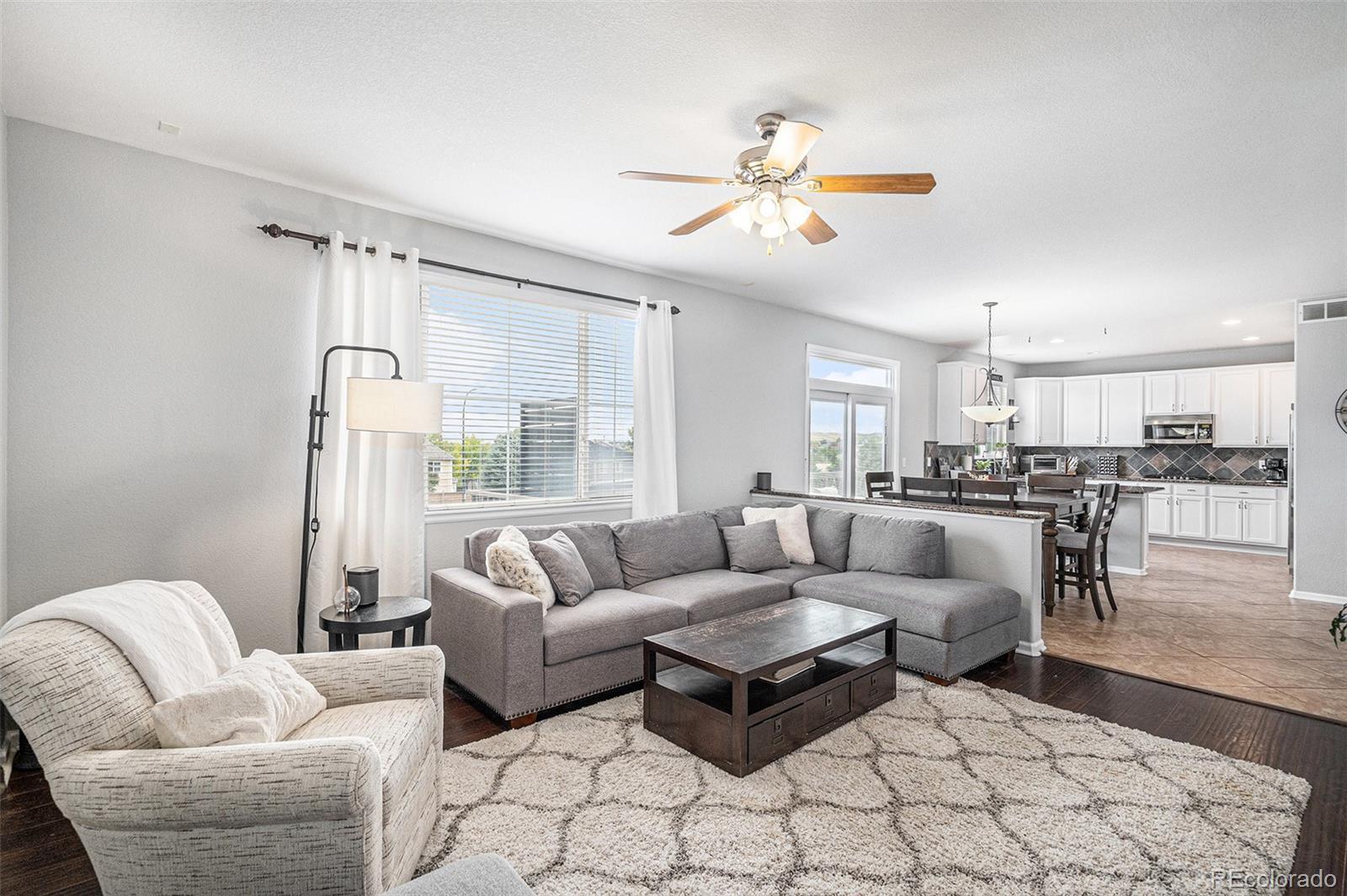 Beautiful Home in Firelight at Highlands Ranch – Premium Corner Lot with Views! Welcome to this stunning 4-bedroom, 4-bathroom home located in the highly sought-after Firelight community of Highlands Ranch. Perfectly situated on a large corner lot with open space to the side and NO NEIGHBORS BEHIND, this home offers unmatched privacy and sweeping views—even see fireworks on the 4th of July! Step inside to an open, light-filled floor plan featuring upgraded front windows and a glass door to the deck with built-in blinds, offering peace and quiet indoors. The spacious living room with a cozy gas fireplace is perfect for entertaining, and the formal dining room can be used as a second home office. A private main floor office with French doors and a convenient full bathroom complete the main level. The bright, eat-in kitchen is a chef’s dream with slab granite countertops, stainless steel appliances, double ovens, gas cooktop, farmhouse sink, and 42" cabinets. Upstairs, you'll find a huge primary suite with a walk-in closet and custom built-ins creating a private dressing area. Two additional large bedrooms share a Jack & Jill bathroom, and the upstairs laundry room adds everyday convenience. The beautifully finished walk-out basement includes a spacious family room with surround sound, a fourth bedroom with egress window, a designer 3/4 bath with custom tile, plus a flex space with built-in shelving—perfect for a second office, gym, or playroom. Enjoy Colorado’s outdoor lifestyle with a private backyard, elevated deck, and a covered flagstone patio—ideal for relaxing or entertaining. New Furnace and Air Conditioner installed 2018, concrete tile roof installed in 2008. Located just steps from the neighborhood recreation center, parks, trails, and walking distance to shops and restaurants, you can even walk to get a coffee. Easy access to DTC and top-rated schools. This home is truly move-in ready—just unpack and start enjoying everything Highlands Ranch has to offer!