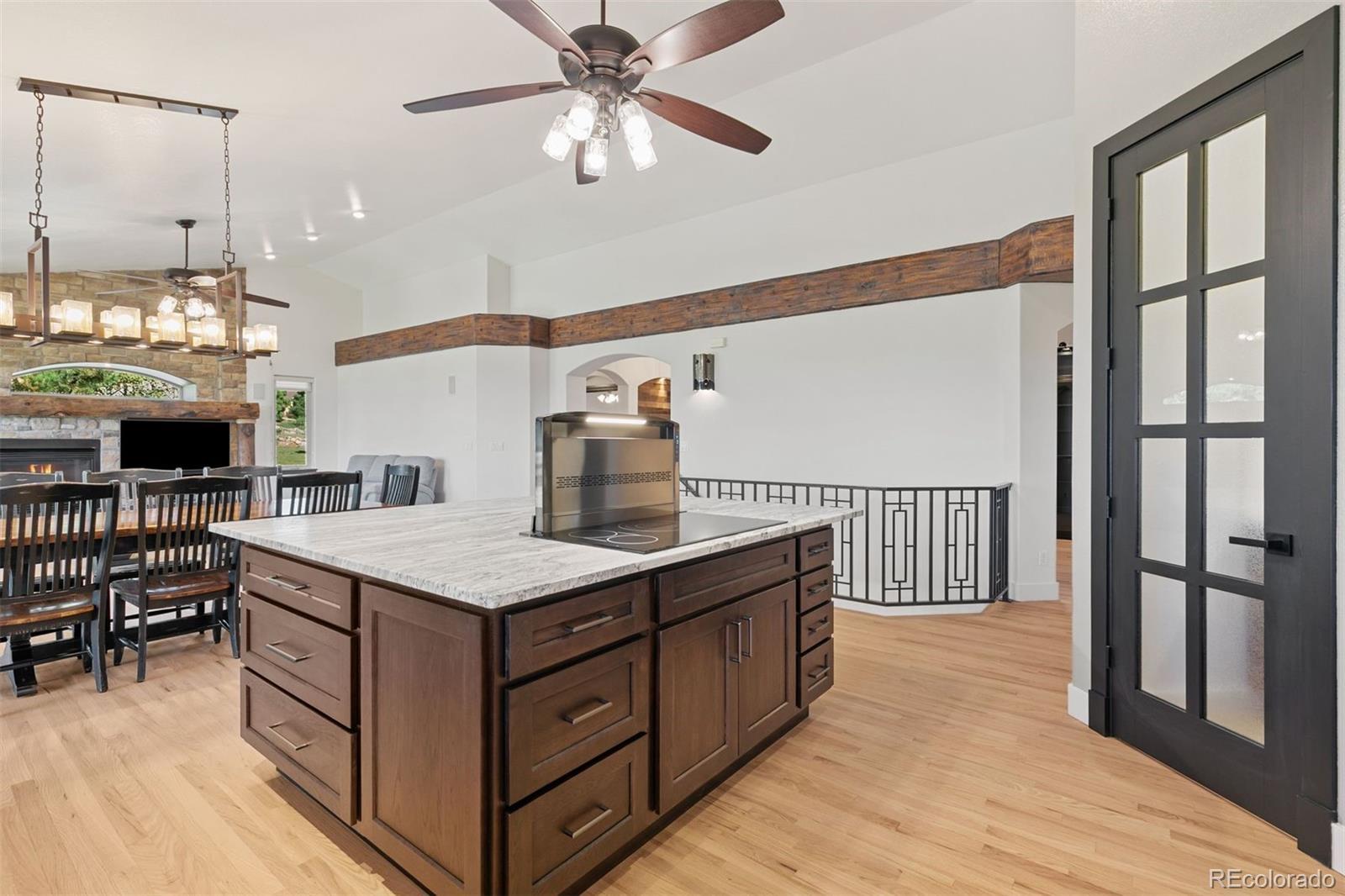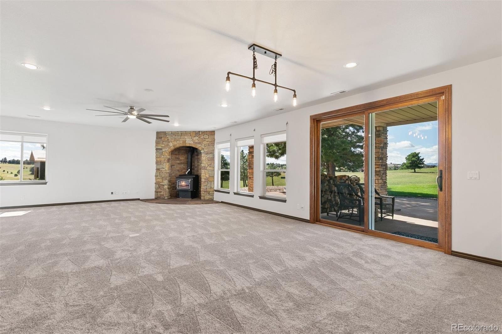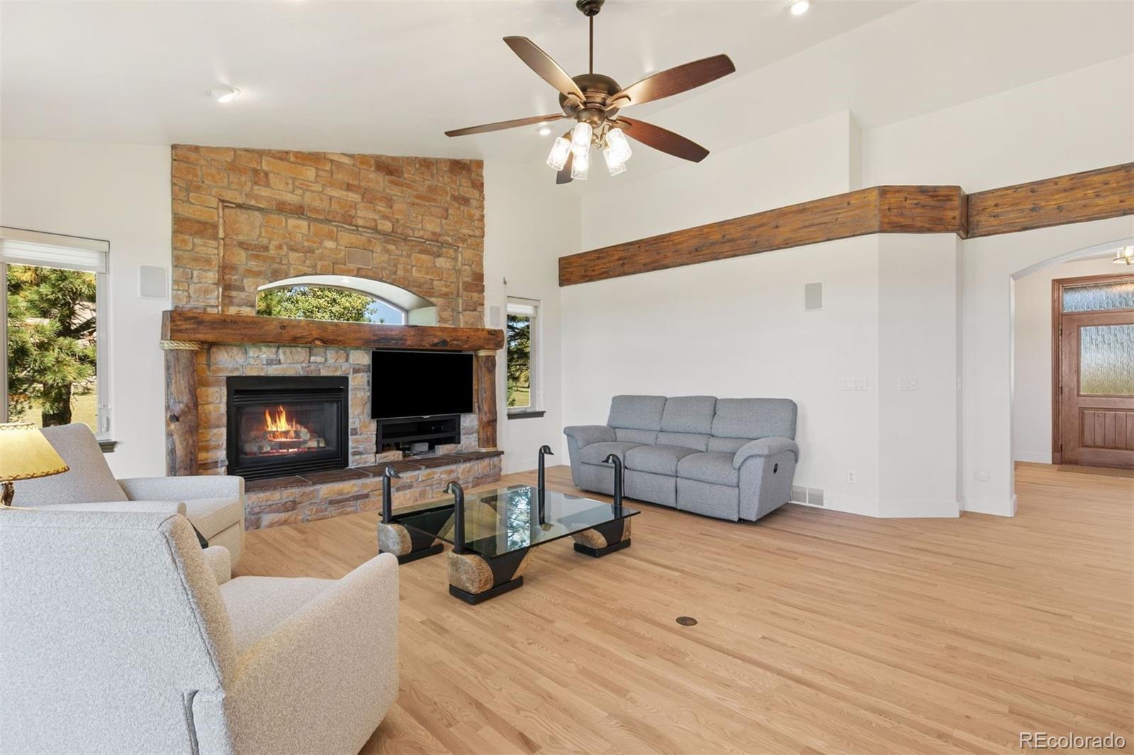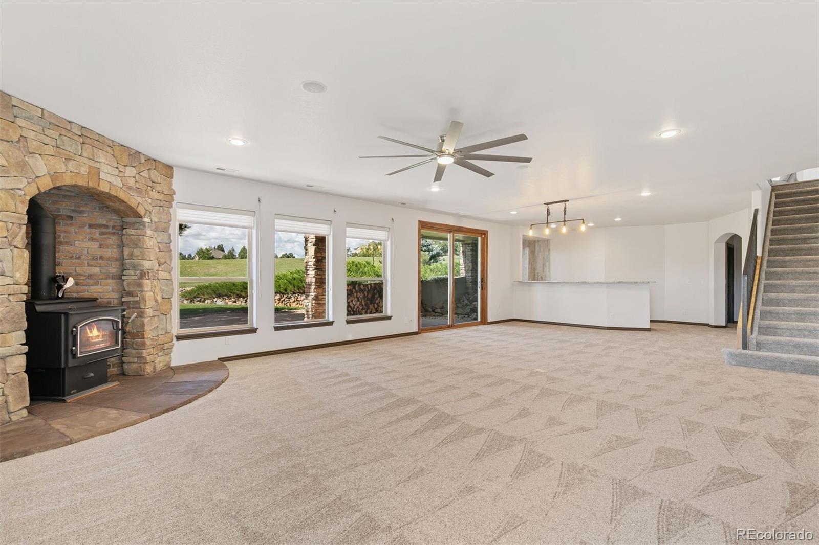 Stunning ranch home with walkout basement & impressive Pikes Peak and Front Range views. Welcome to this beautifully appointed home located in King’s Deer Highlands, offering 4,608 sq. ft. of thoughtfully designed living space, including a walk-out basement. With 5 beds, 4 baths, and an abundance of custom features, this home blends comfort, function, and style. The heart of the home is the remodeled gourmet kitchen, showcasing leathered granite counters, custom soft-close cabinetry with dovetailed drawers, lower roll-out shelves, and under-cabinet LED lighting. A spacious butler’s pantry with custom cabinetry adds convenience and elegance. Stunning hardwood floors flow throughout the main level, enhancing the open and inviting feel. The primary suite offers access to the rear deck, a generous walk-in closet, and a spa-like 5-piece bath. Also on the main level are a second bedroom and full bath, a flex space perfect for a dining room, home office, or library, and a well-appointed laundry room with granite counters, a sink with spray faucet, and abundant storage. Custom iron railings lead to the finished walk-out basement, designed for entertaining. Here you’ll find a full wet bar with granite counters, tile backsplash, sink with spray faucet, as well as a large family room with a wood-burning stove. Three additional bedrooms and two baths provide comfort and privacy for all. Outdoor living is just as impressive. Enjoy Pikes Peak and Front Range views from the covered composite deck, relax by the water feature on the lower patio, or take in the serenity of the 2.5-acre homesite. Additional highlights include an oversized 3-car garage with commercial-grade steel doors, added shelving, insulated aluminum security shutters on all doors and windows, a whole-house surge protector, and a Generac generator providing peace of mind year-round, new roof and so much more. Meticulously cared for, this home reflects true pride of ownership and is ready to welcome its next owner.