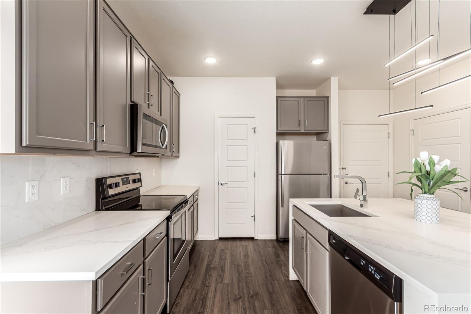 Step into comfort and style with this spacious 4-bedroom, 4-bathroom corner townhome. Nestled in a lively and well-connected neighborhood, this home has been nicely updated and provides an ideal blend of function and comfort. The main level features a bright and open layout, with the living room flowing effortlessly into the dining area and kitchen—perfect for both daily living and entertaining. The kitchen is outfitted with stainless steel appliances, generous counter space, and abundant cabinetry for all your storage needs. Upstairs, you'll find three large bedrooms, including a relaxing primary suite with its own walk-in closet and en-suite bathroom featuring double vanities and a walk-in shower. A full bathroom in the hallway serves the additional bedrooms. Also found upstairs is the laundry room with washer and dryer included. The fully finished basement expands your options, with a fourth bedroom, another full bathroom, and flexible space for guests, or home office plus ample storage. Enjoy the benefits of a two-car garage and the extra sunlight and privacy that come with being a corner unit. Ideally located close to shopping, restaurants, and everyday conveniences, this home also offers quick access to Denver International Airport and Green Valley Ranch Golf Club. With plenty of room to grow and priced under $450,000, this move-in-ready home is a must-see. Property can also be for rent for $3,000 per month. Contact us today to schedule a tour or learn more!