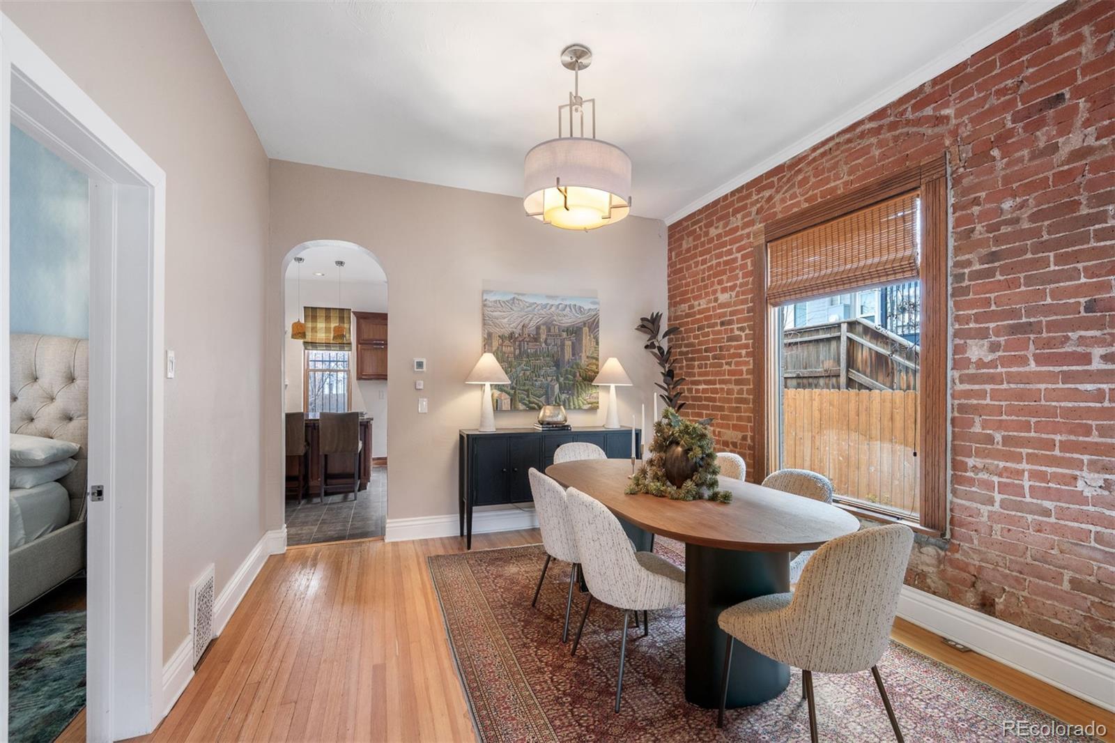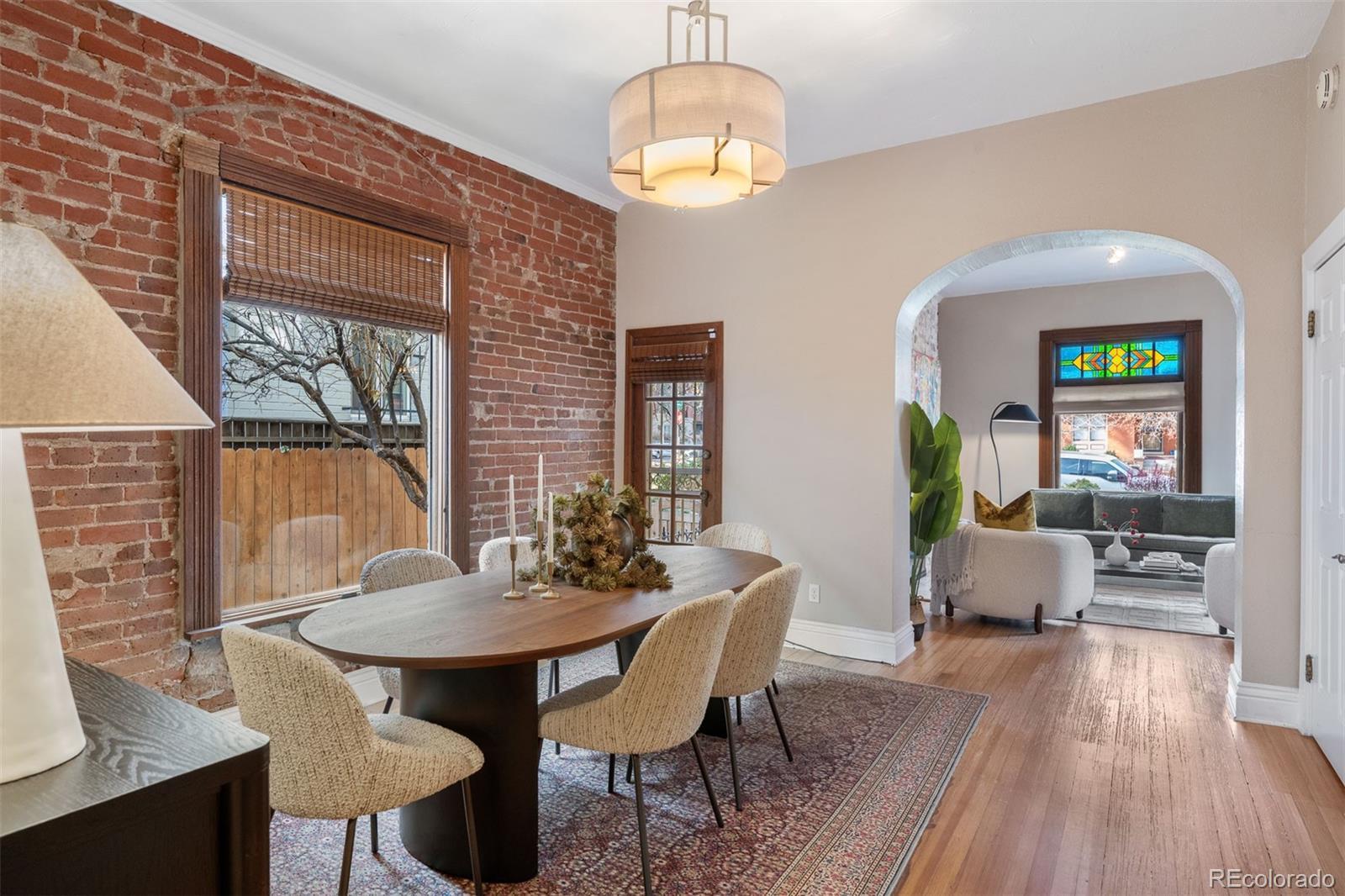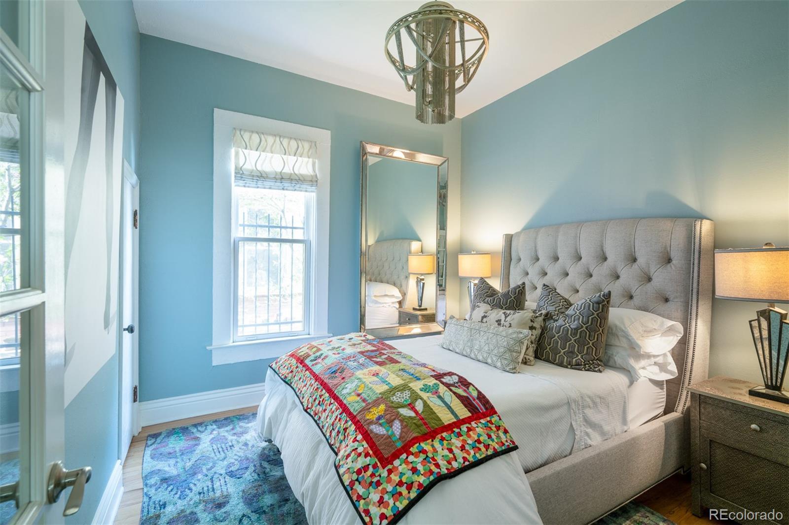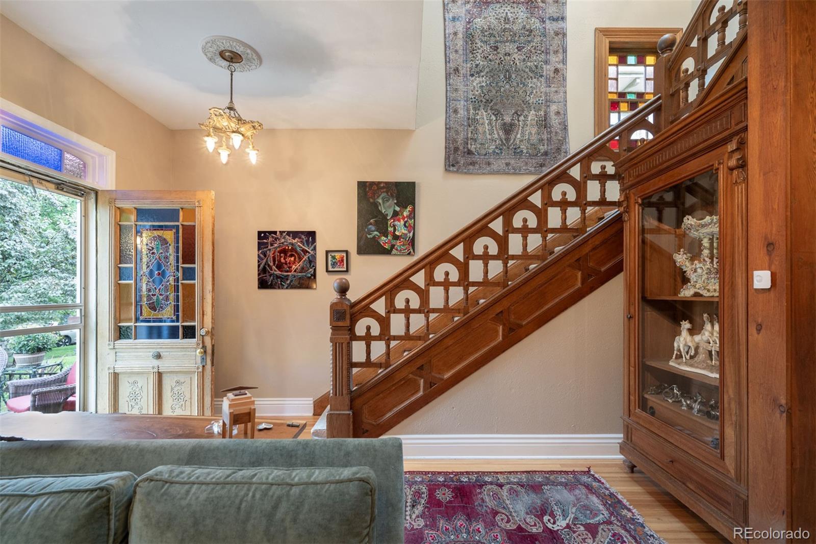 Experience the rare opportunity to live on one of Denver’s most cherished tree-lined blocks, just moments from the Denver Botanic Gardens, Cheesman Park, and the boutiques, cafés, and cultural energy of nearby Cherry Creek and Congress Park’s local shopping and dining. This historic 4-bedroom, 2-bath residence gracefully marries classic architecture with modern comfort, offering a home that feels as welcoming as its coveted urban setting. Step inside to discover beautiful stained-glass windows, an ornate staircase, and rich period details that speak to the home’s original craftsmanship. The inviting living room, anchored by a gas fireplace, sets the stage for stylish entertaining. A generous primary bedroom provides enough room for a sitting area, home office nook, or an expanded wardrobe. Two additional bright upstairs bedrooms, plus a convenient main-floor bedroom and full bath, offer flexible options for guests, multigenerational living, workout room, or a private work-from-home retreat. The spacious, light-filled kitchen accommodates the household chef with abundant custom cabinetry, ample prep space, and storage, while the upper-level open-concept 5-piece bath and second-floor laundry elevate everyday living. The back opens to a private, fully fenced backyard—a lush retreat framed by mature perennials, perfect for quiet mornings with coffee or lively gatherings on the deck. The one-car garage, originally a carriage house, adds a touch of history and offers potential for expansion to a two-car garage. This is a rare chance to own a piece of Denver’s history on one of its most sought-after blocks, surrounded by some of the city’s most vibrant and desirable neighborhoods.