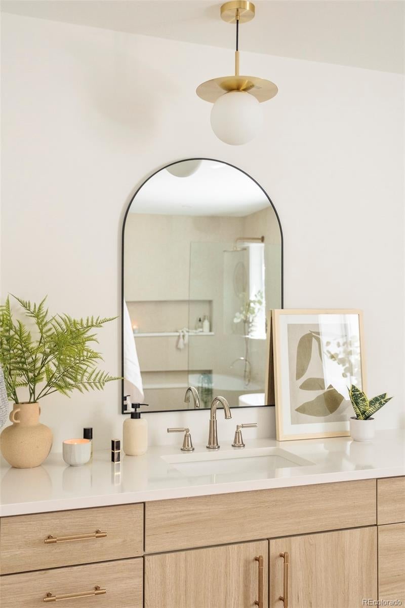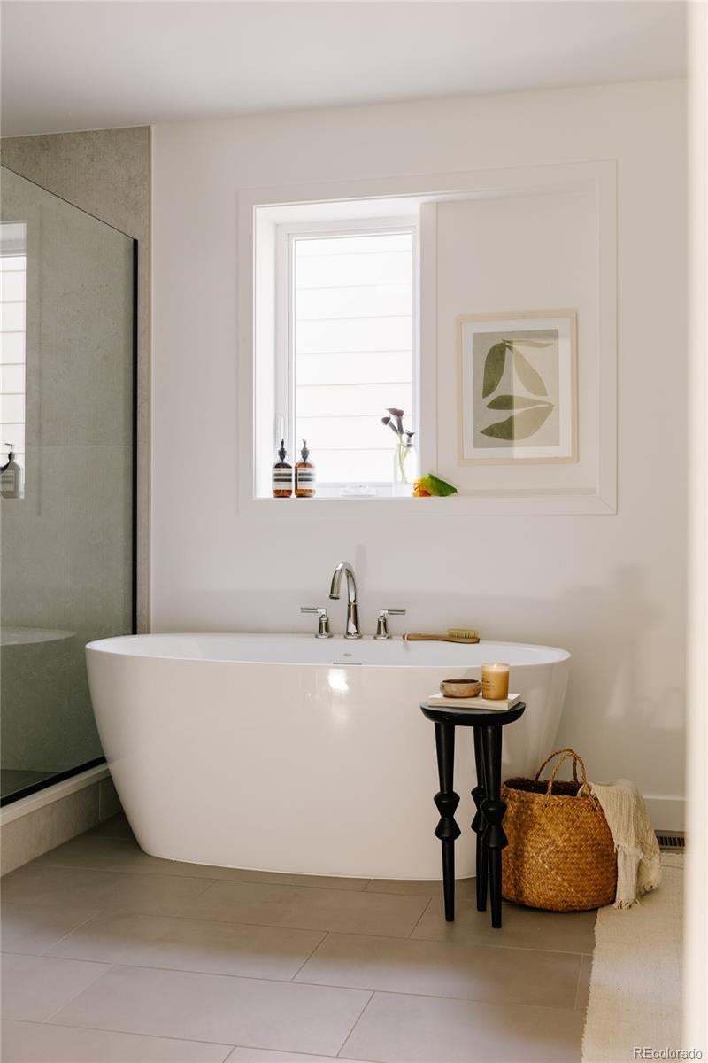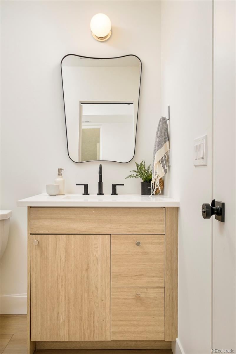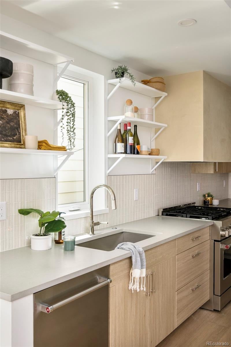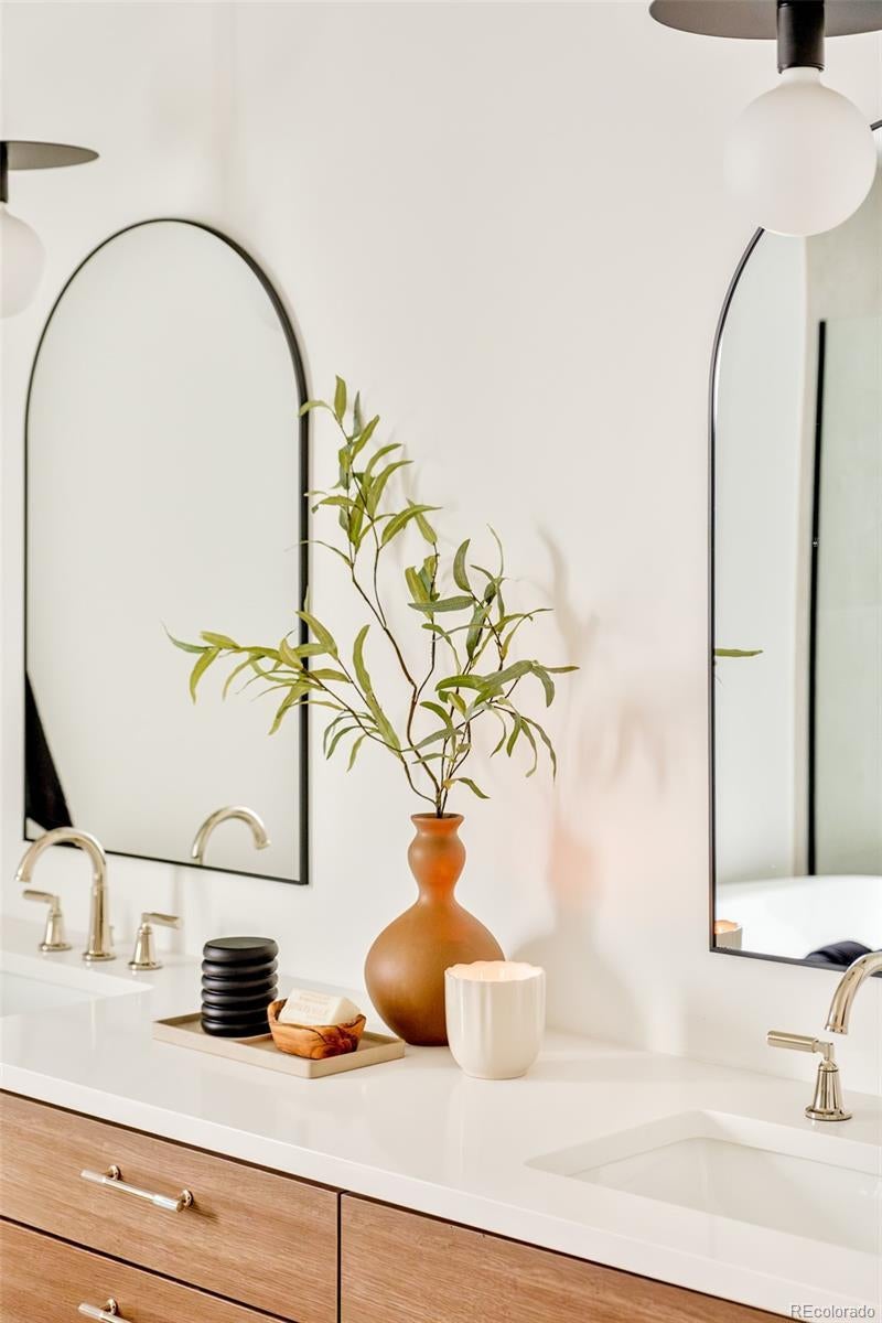 This light-filled half-duplex in Jefferson Park blends polished design with easy, everyday city living. With three bedrooms and three baths, the home features a mix of organic textures, clean modern lines, and finishes that feel warm, timeless, and livable. The kitchen sits at the heart of the home and truly delivers, with a quartzite island, quartz-topped cabinetry, open shelving, stainless appliances, and a walk-in pantry that makes both daily life and entertaining feel effortless. The open living and dining areas are filled with east-facing light and anchored by a lime-washed fireplace that adds subtle texture and character. Two bedrooms and a full bath on the main level offer flexibility for guests, a home office, or rental potential. Upstairs, the primary suite feels like a private retreat, complete with a custom coffee bar, a spa-inspired bath with a soaking tub and walk-in shower, and a generous walk-in closet. A nearby loft adds even more versatility, whether you need a gym, an extra workspace, or a cozy lounge. Laundry hookups on both levels are the ultimate convenience. The rooftop deck is a standout feature, offering a private outdoor space to relax, entertain, or soak in the city energy. A bonus storage room and a one-year builder warranty add peace of mind and low-maintenance appeal. Set near neighborhood coffee shops, restaurants, and parks, the location makes it easy to enjoy LoHi, downtown, and the Highlands. Enjoy Broncos and Nuggets games with, quick access to I-70 for mountain getaways, and smooth I-25 commutes, this home delivers great design in a location that truly showcases the best of Denver. Welcome home