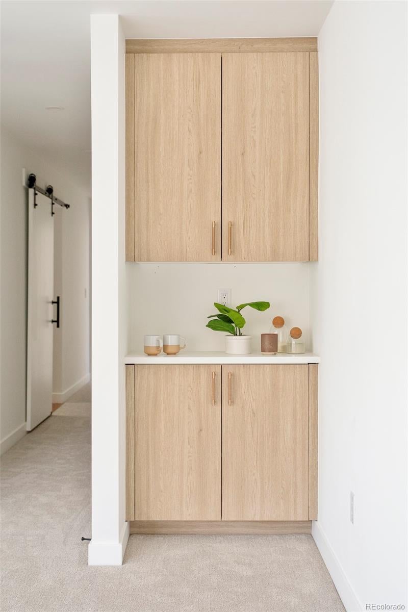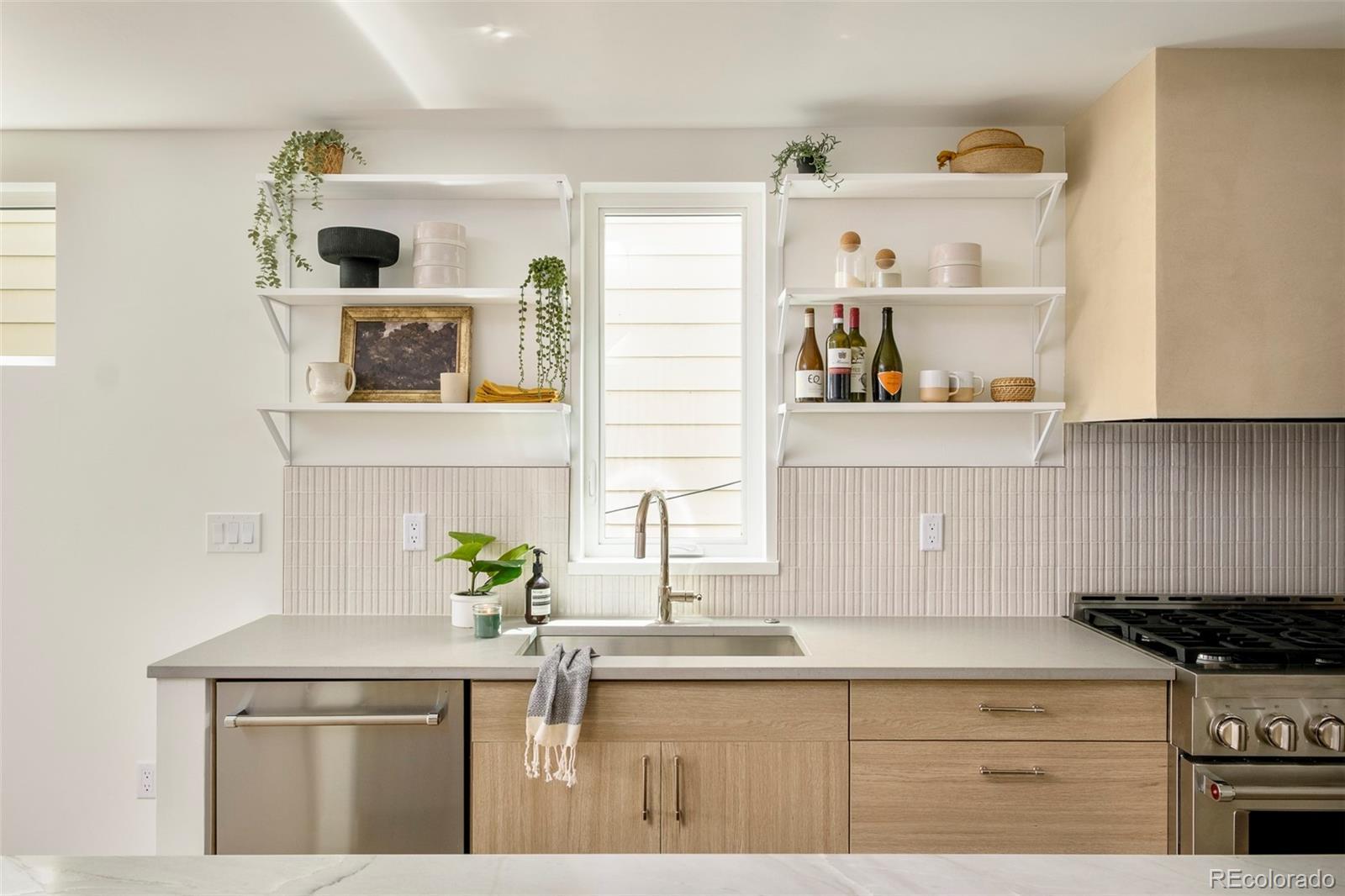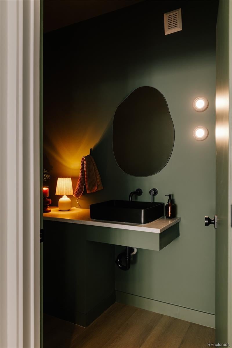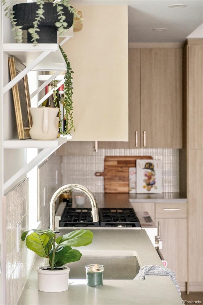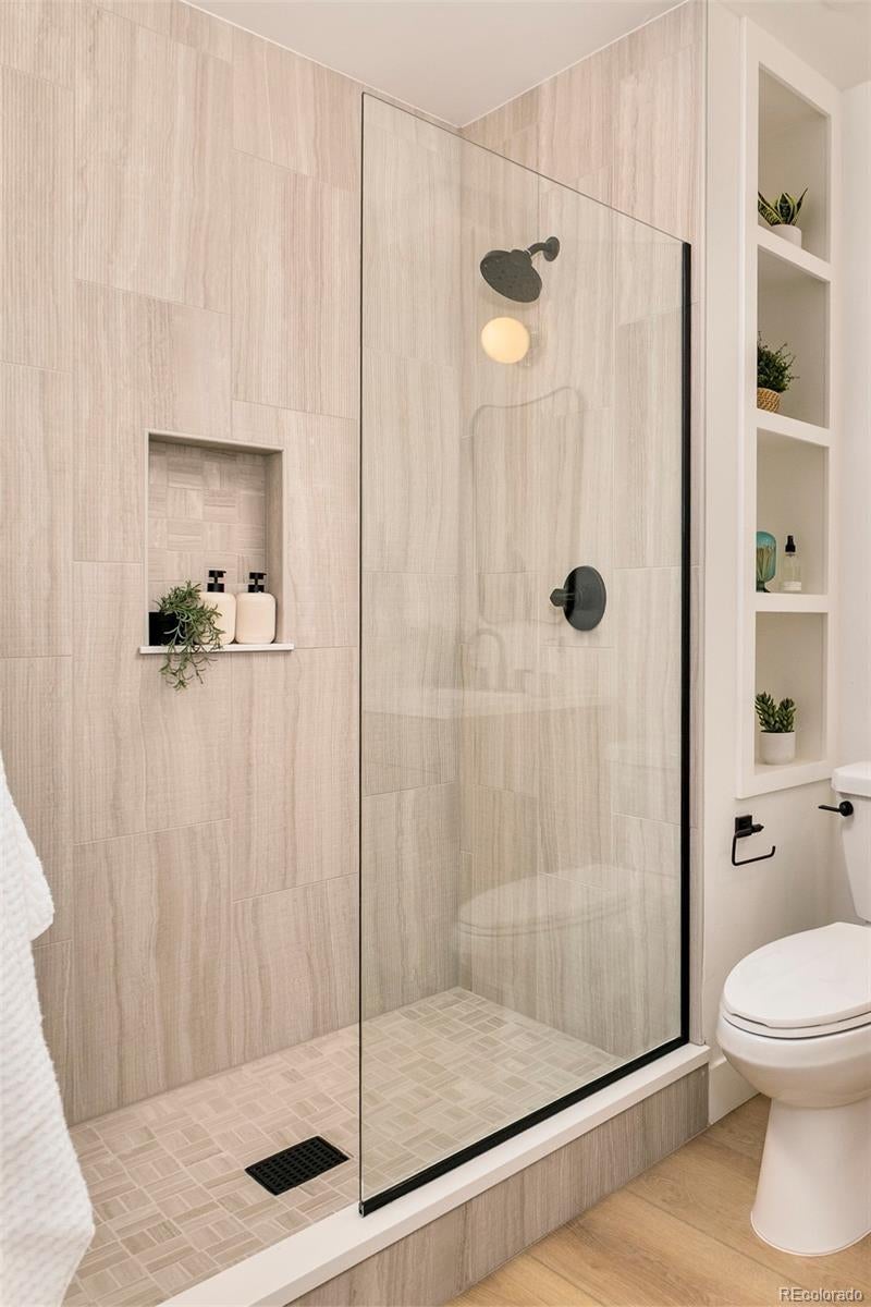 This light-filled half-duplex in Jefferson Park blends polished design with easy, everyday city living. With three bedrooms and three baths, the home features a mix of organic textures, clean modern lines, and finishes that feel warm, timeless, and livable. The kitchen sits at the heart of the home and truly delivers, with a quartzite island, quartz-topped cabinetry, open shelving, stainless appliances, and a walk-in pantry that makes both daily life and entertaining feel effortless. The open living and dining areas are filled with east-facing light and anchored by a lime-washed fireplace that adds subtle texture and character. Two bedrooms and a full bath on the main level offer flexibility for guests, a home office, or rental potential. Upstairs, the primary suite feels like a private retreat, complete with a custom coffee bar, a spa-inspired bath with a soaking tub and walk-in shower, and a generous walk-in closet. A nearby loft adds even more versatility, whether you need a gym, an extra workspace, or a cozy lounge. Laundry hookups on both levels are the ultimate convenience. The rooftop deck is a standout feature, offering a private outdoor space to relax, entertain, or soak in the city energy. A bonus storage room and a one-year builder warranty add peace of mind and low-maintenance appeal. Set near neighborhood coffee shops, restaurants, and parks, the location makes it easy to enjoy LoHi, downtown, and the Highlands. Enjoy Broncos and Nuggets games with, quick access to I-70 for mountain getaways, and smooth I-25 commutes, this home delivers great design in a location that truly showcases the best of Denver. Welcome home