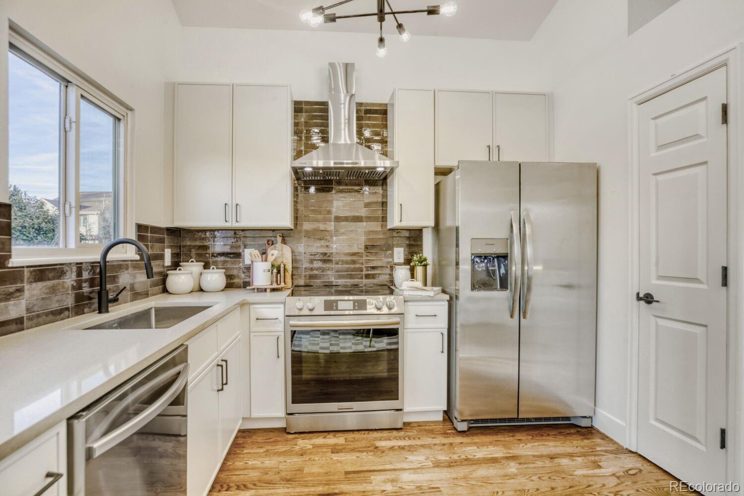 Welcome to the perfect home on the edge of Denver and Arvada. The home starts with a large, vaulted entryway and kitchen that comes with brand new stainless appliances, new custom cabinets and unique countertops. The home comes with three full bathrooms including a master ensuite all finished with premium design, materials, and labor. The lower area has an additional living space with a brick fireplace and new flooring. The home also comes with a large two car garage and a well sized yard perfect for families or pets.