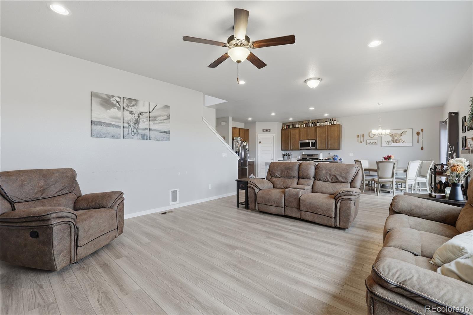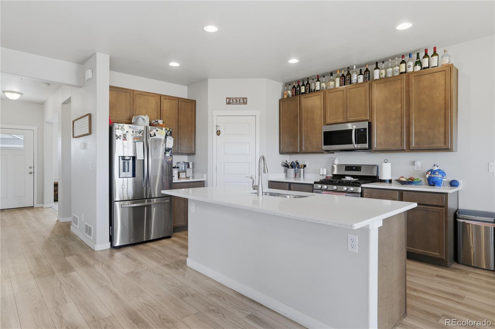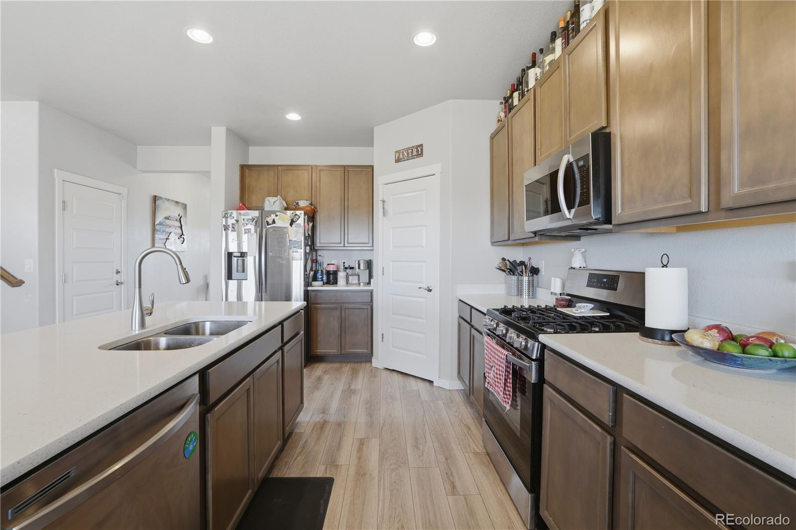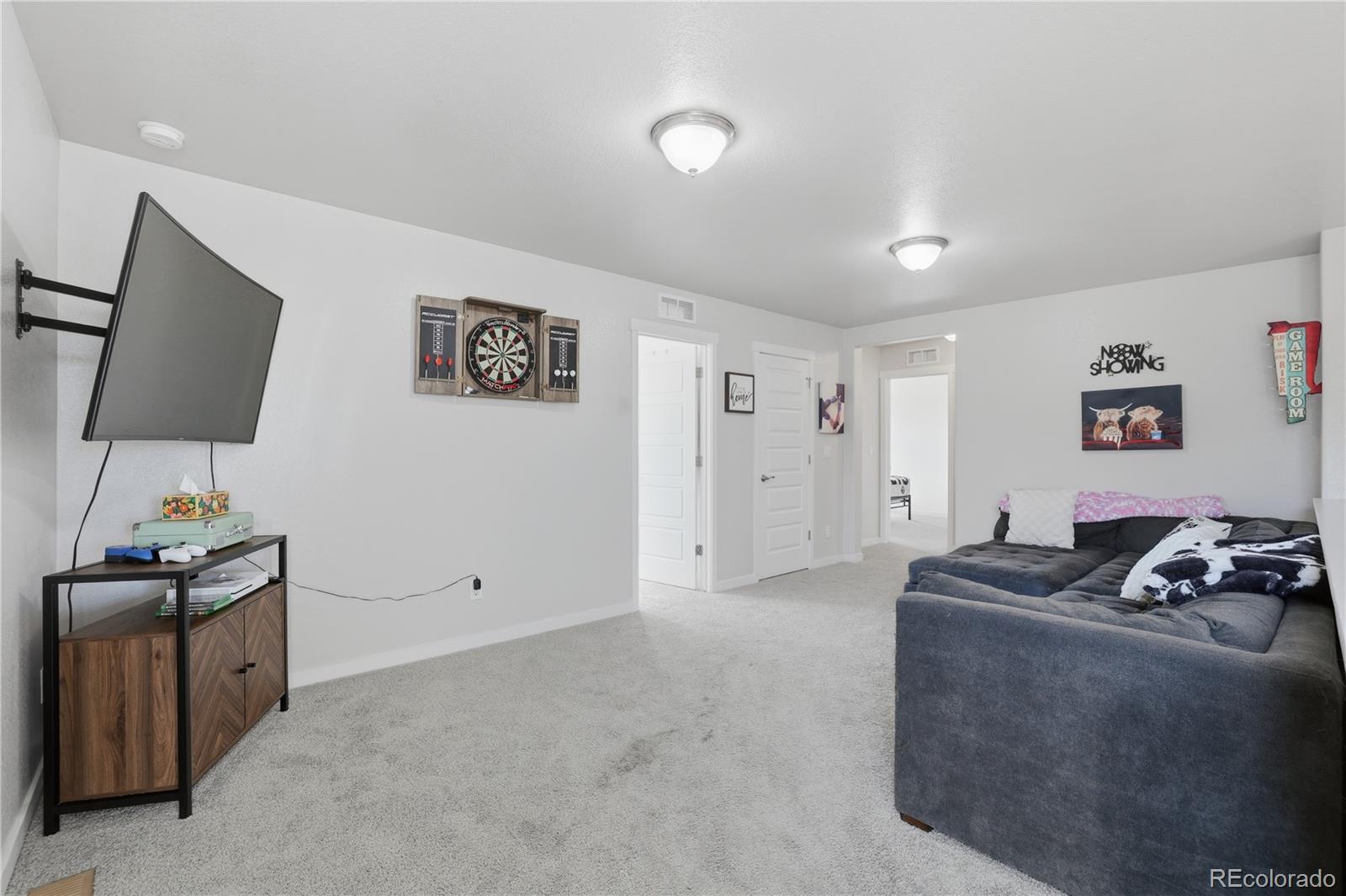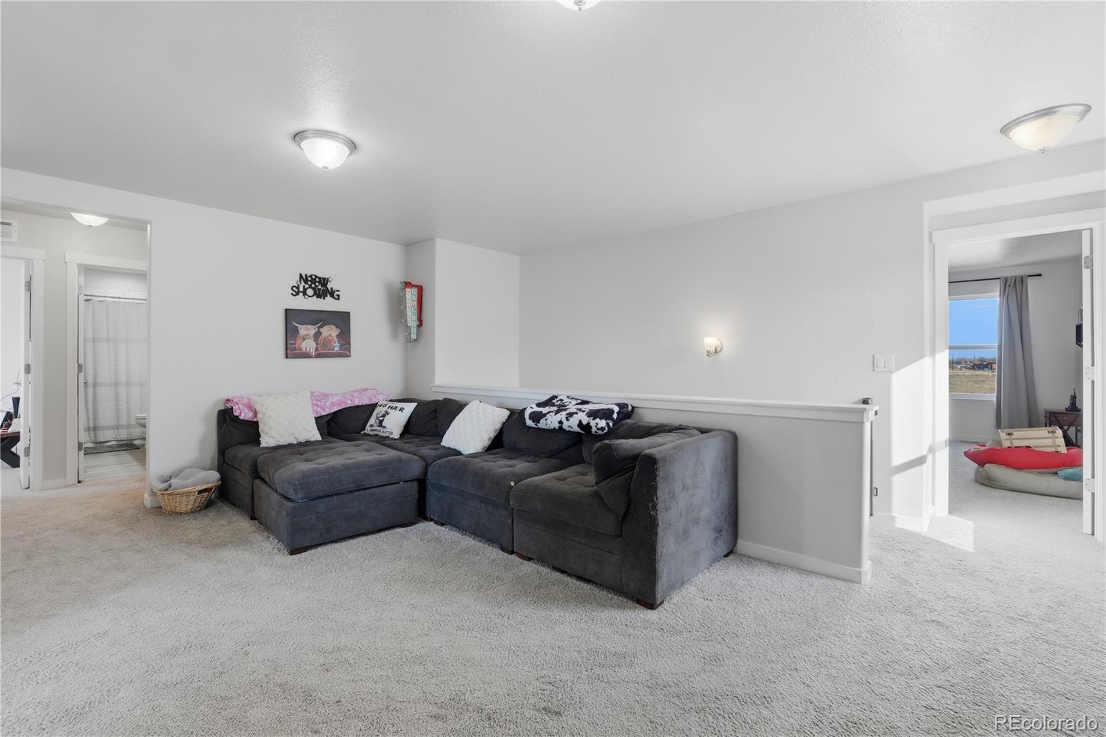 Welcome home to this well maintained two-story residence in the desirable Lochbuie Station community, located less than 10 minutes from Barr Lake State Park and its miles of trails, open space, and outdoor recreation. Designed with both comfort and flexibility in mind, this 4-bedroom, 2.5-bath home offers a bright, open floor plan ideal for modern living. The main level features expansive living and dining spaces filled with natural light, seamlessly connecting to a well-appointed kitchen complete with stainless steel gas range, dishwasher, microwave, generous cabinetry, and a spacious center island—perfect for entertaining, meal prep, or casual gatherings. A versatile flex room on the main floor provides endless options for a home office, playroom, or additional living space. Upstairs, retreat to the spacious primary suite, highlighted by a large walk-in closet and a beautifully finished en-suite bathroom with designer tile, double vanities, quartz countertops, and ample under-sink storage. Secondary bedrooms are generously sized, and a sizable loft offers additional space for a media room, study area, or relaxation zone. Step outside to enjoy the fully fenced backyard, offering privacy and room for outdoor entertaining, gardening, or play. A two-car garage adds convenience and storage. With thoughtful finishes throughout, flexible living spaces, and close proximity to parks, open space, and commuter routes, this home offers exceptional value and livability in this growing Northern Colorado community less than 30 minutes from Denver.