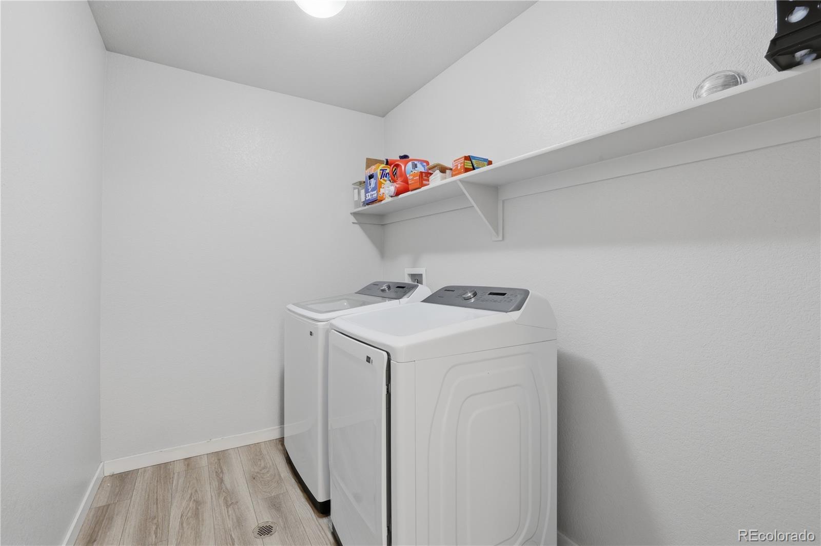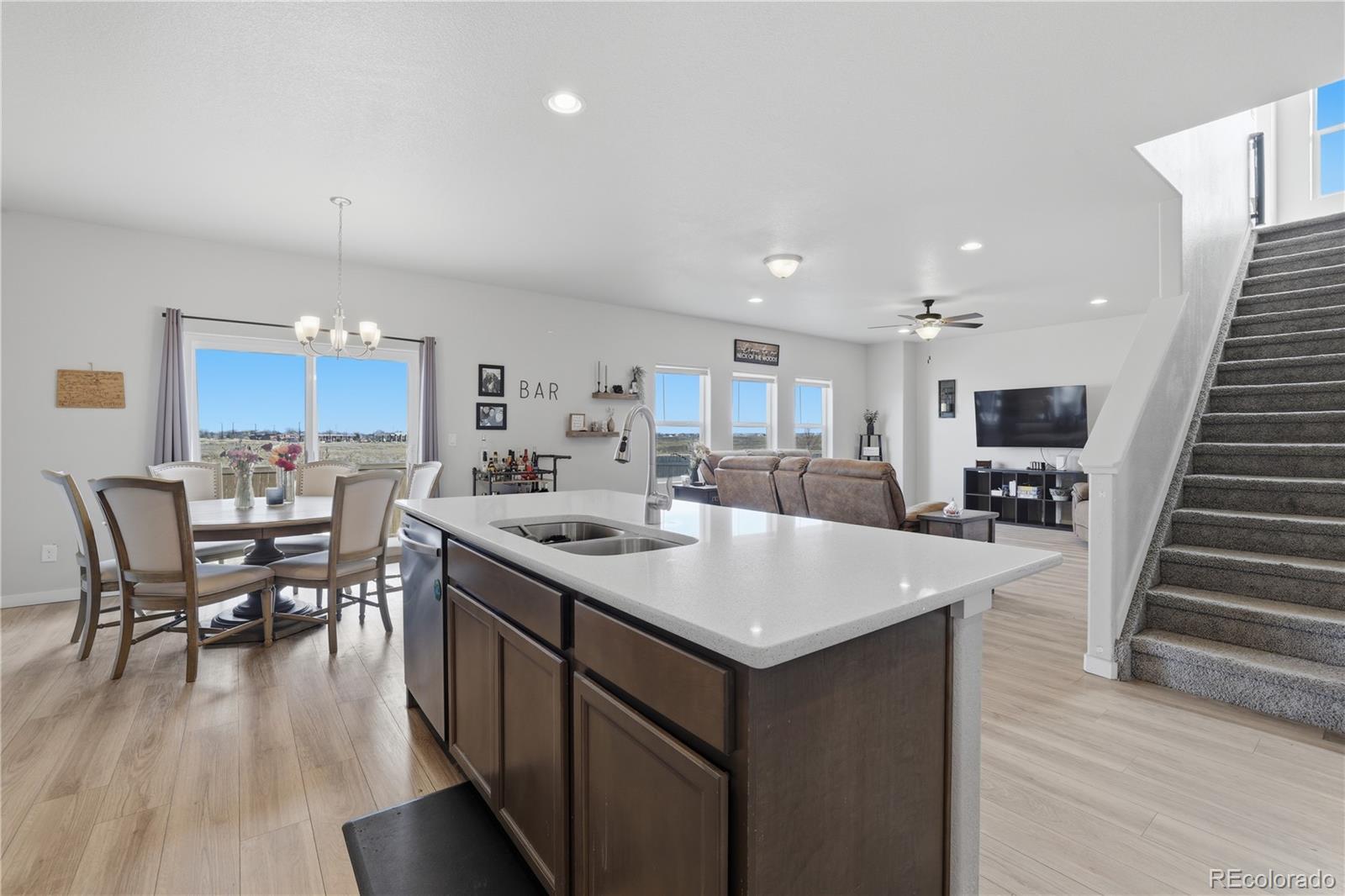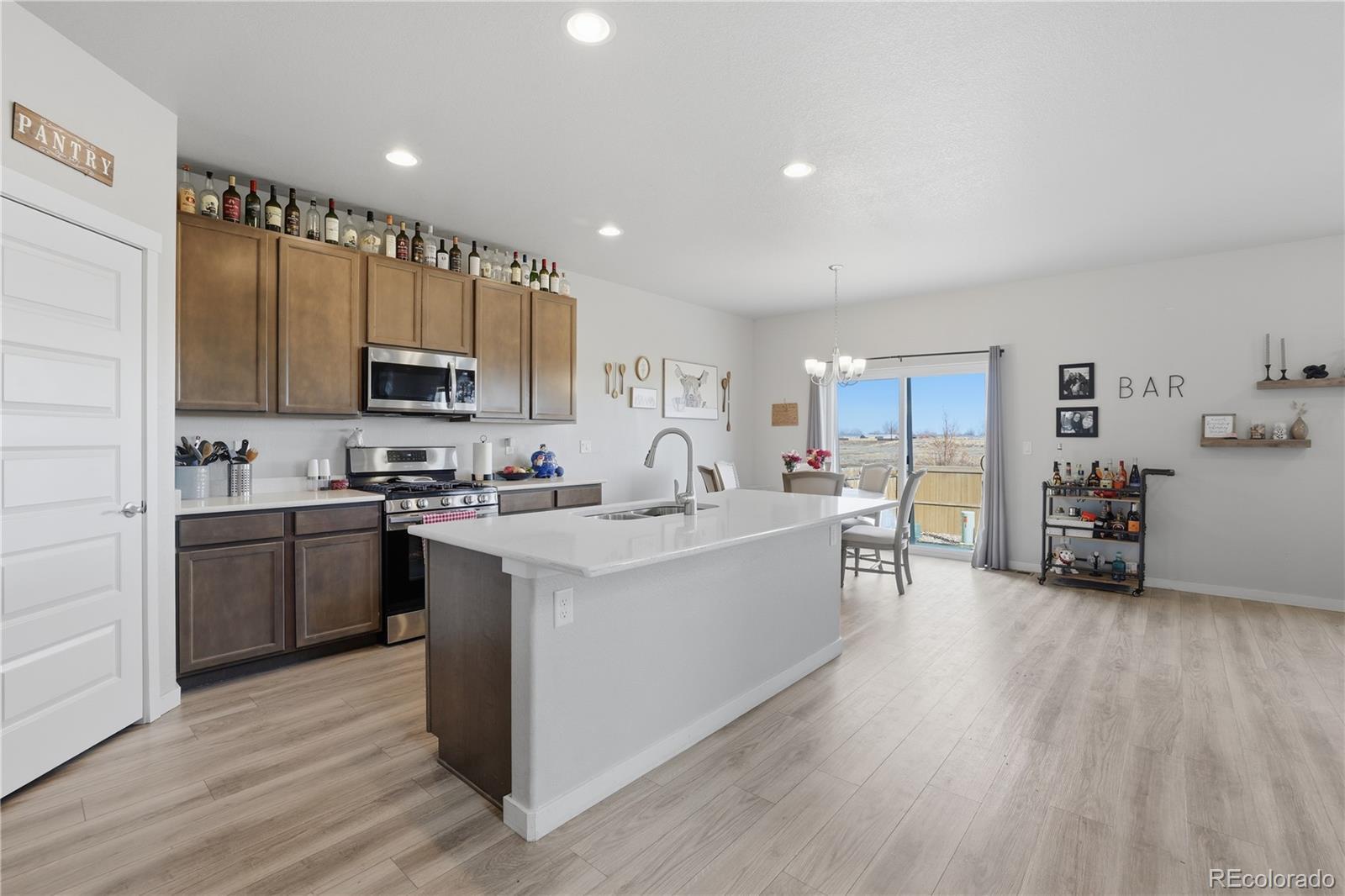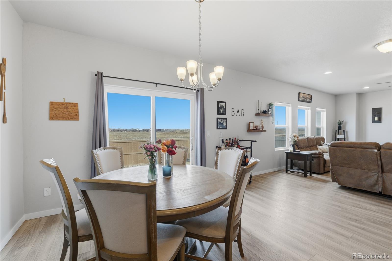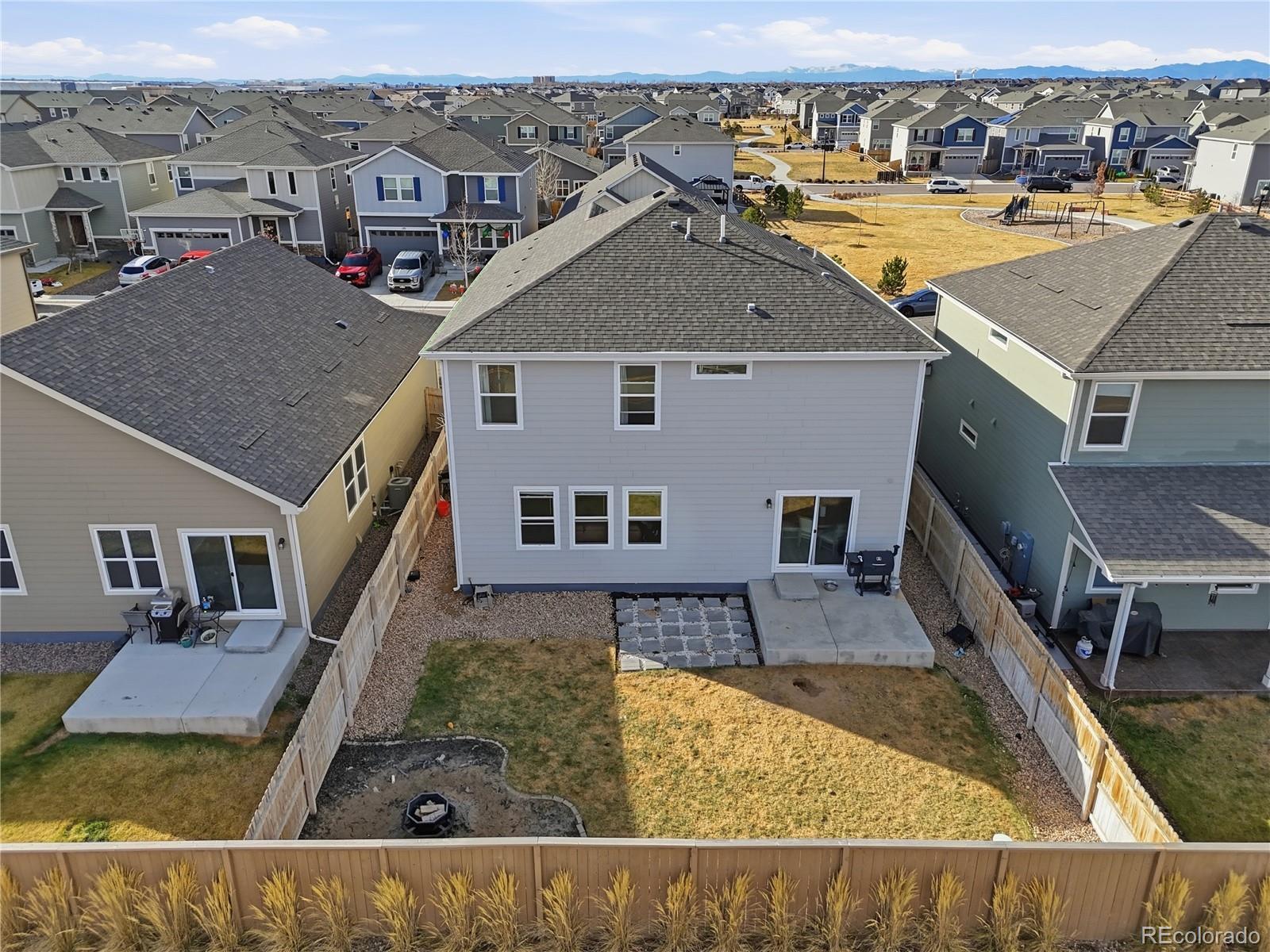 Welcome home to this well maintained two-story residence in the desirable Lochbuie Station community, located less than 10 minutes from Barr Lake State Park and its miles of trails, open space, and outdoor recreation. Designed with both comfort and flexibility in mind, this 4-bedroom, 2.5-bath home offers a bright, open floor plan ideal for modern living. The main level features expansive living and dining spaces filled with natural light, seamlessly connecting to a well-appointed kitchen complete with stainless steel gas range, dishwasher, microwave, generous cabinetry, and a spacious center island—perfect for entertaining, meal prep, or casual gatherings. A versatile flex room on the main floor provides endless options for a home office, playroom, or additional living space. Upstairs, retreat to the spacious primary suite, highlighted by a large walk-in closet and a beautifully finished en-suite bathroom with designer tile, double vanities, quartz countertops, and ample under-sink storage. Secondary bedrooms are generously sized, and a sizable loft offers additional space for a media room, study area, or relaxation zone. Step outside to enjoy the fully fenced backyard, offering privacy and room for outdoor entertaining, gardening, or play. A two-car garage adds convenience and storage. With thoughtful finishes throughout, flexible living spaces, and close proximity to parks, open space, and commuter routes, this home offers exceptional value and livability in this growing Northern Colorado community less than 30 minutes from Denver.