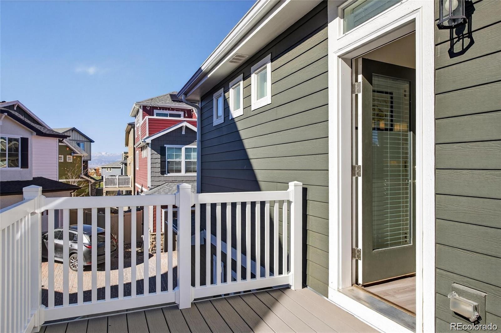 Maintenance-Free Living in a Beautiful Single-Family Home! Enjoy mountain views, privacy, and no attached neighbors in this stunning home that’s truly better than new! With great curb appeal and a wrap-around front deck, this property welcomes you the moment you arrive. Whether you’re sipping coffee in the early morning or taking in a breathtaking sunset, the front porch or spacious back deck offer the perfect spots to relax and unwind with your favorite book. Inside, you’ll find a chef’s kitchen designed for those who love to cook and entertain, featuring a gas cooktop, upgraded appliances, and a large center island ideal for meal prep or casual dining. The spacious primary bedroom includes a luxurious ensuite bath and a walk-in closet, providing a true retreat at the end of the day. The lower level offers flexibility with an additional bedroom, a full bath, and a bonus space perfect for a home office or potential third bedroom. The fully landscaped yard with a privacy fence, and shutters on all the windows, makes this home move-in ready! There is storage space below the stairs plus a crawl space that is easily accessible. Conveniently located near shopping, schools, parks, and just minutes from I-25, this home truly has it all! The HOA covers the snow removal on your upgraded paver driveway, making it a great lock and leave. Don’t miss your chance to make this exceptional home your own!