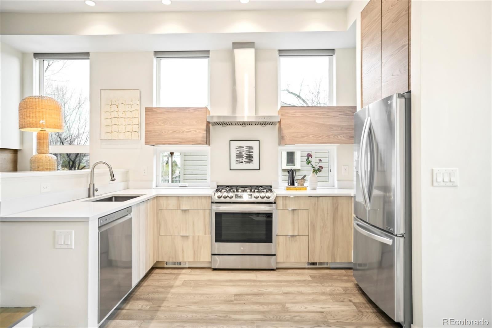 Craving character over copy-paste new builds? This Overland duplex delivers flexible spaces, sunlight, and a layout that actually lives. If you value personality, this one will stick with you. Ask listing agent about Community Reinvestment Act options that may provide credit toward buyer closing costs, prepaids, and discount points. Not your average Denver floor plan and that’s the point. Thoughtful updates pair with an unapologetically unique layout that feels warm, functional, and memorable. A cozy entry flows to a sunken dining room with built-ins, an airy living room with a modern fireplace, and a sleek kitchen with stainless appliances and plenty of storage. High ceilings and a south-facing orientation bring in beautiful light all day. Upstairs, the primary suite is a true retreat with a spa-like bath and a private deck facing the mountains. The finished basement adds real utility with a rec room and wet bar for game nights or guests. Oversized closets and a detached two-car garage keep gear organized for Colorado weekends. Out back, a large deck and mature tree create shaded, year-round outdoor living. You’re moments to Harvard Gulch Park, the Evans light rail station, SoBo restaurants and coffee, and the Platte River Trail. This is for the buyer who wants style and flexibility instead of a showroom template. Come feel how it lives.