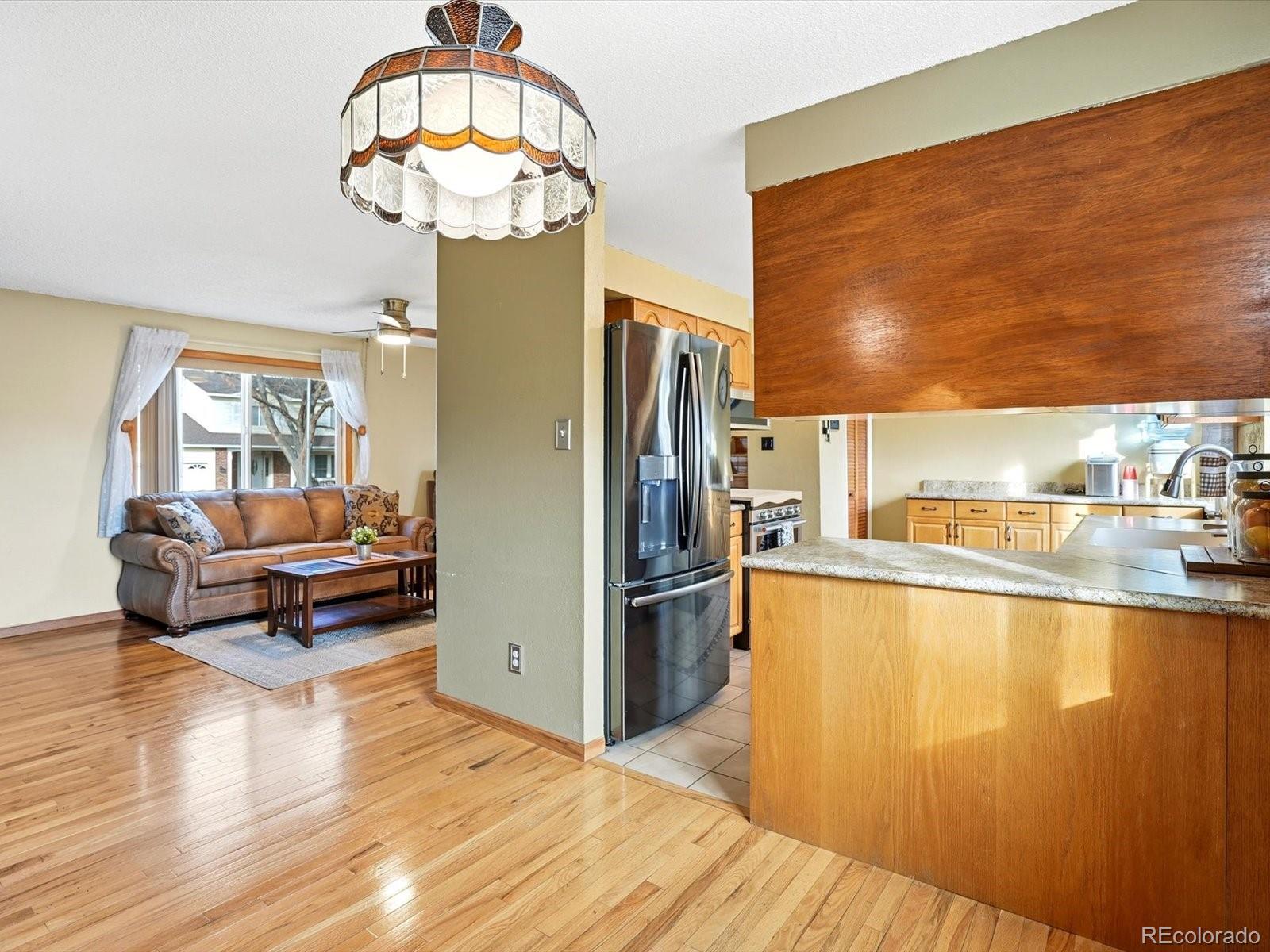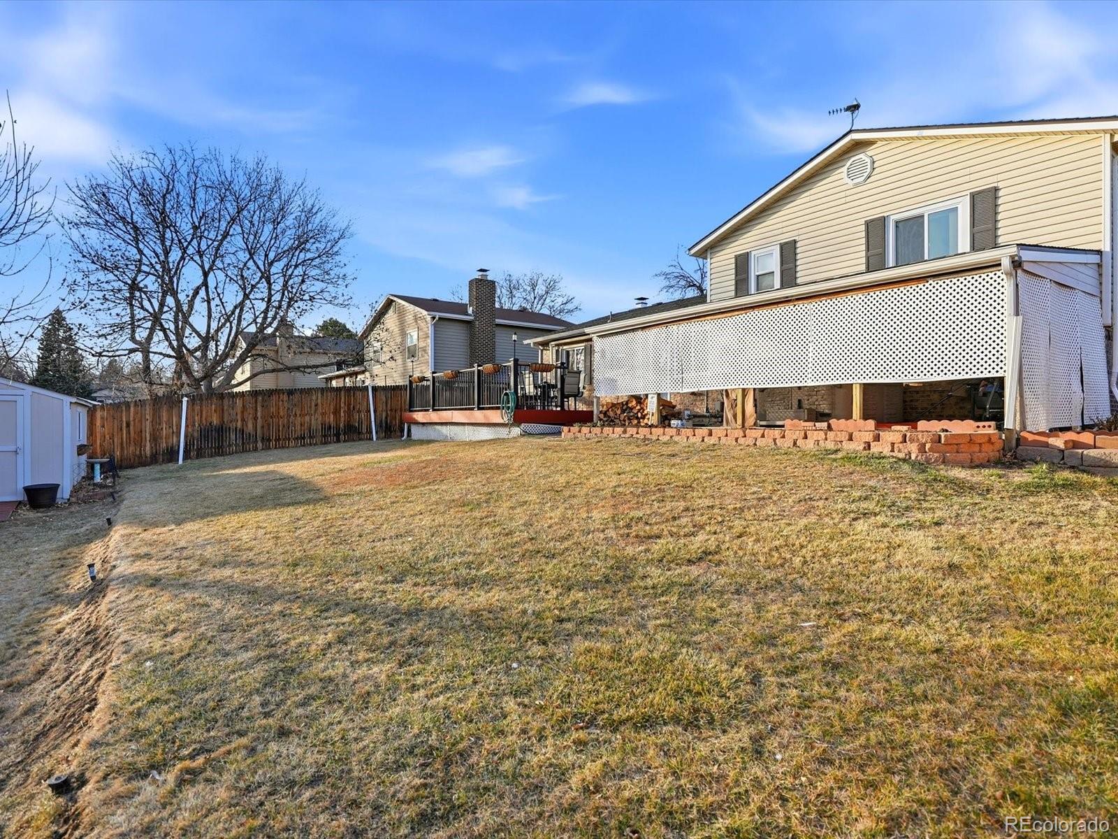 Seller offering $5,000 concession!! This well-cared-for split-level home offers flexible spaces designed for everyday comfort and easy entertaining, both inside and out. Step into the main level where hardwood floors anchor a welcoming living room that flows naturally into the dining area, perfect for hosting dinners, game nights, or relaxed evenings at home. The spacious kitchen is built for real use, featuring brushed stainless KitchenAid appliances, generous counter space, and plenty of built in cabinets. Upstairs, you’ll find three comfortable bedrooms and two beautifully updated full bathrooms. The primary suite includes its own ensuite bath, creating a private retreat at the end of the day, while the additional bedrooms work well for guests, home offices, or hobbies. The lower level expands your living options with a large family room ideal for movie nights or casual get-togethers. A dry bar makes entertaining effortless, and the wood-burning fireplace adds warmth and character during Colorado’s cooler months. Outside is where this home truly shines. The oversized backyard invites you to relax, play, and entertain with ease. Enjoy summer evenings on the expansive deck under the Sunsetter awning, unwind in the covered patio and private hot tub area, or spend time gardening among mature trees, hardscape flower beds, and dedicated garden spaces. There’s also a large grassy area for pets or play and a storage shed for tools and gear. An attached two-car garage offers additional storage, and the new three-car driveway, combined with no HOA, provides rare flexibility for parking a boat or camper. Recent updates include a 2023 A/C, insulated garage door, new perimeter fencing, Milgard windows (2016), and updated bathrooms (2022). Google and T-Mobile gigabit fiber is available at the curb. Ideally located near new parks, schools, restaurants, and Jefferson Academy, with easy access to both Denver and Boulder—just 15 minutes either way.