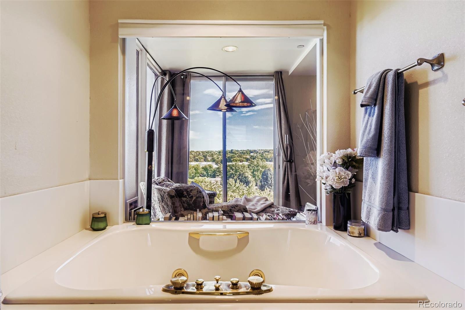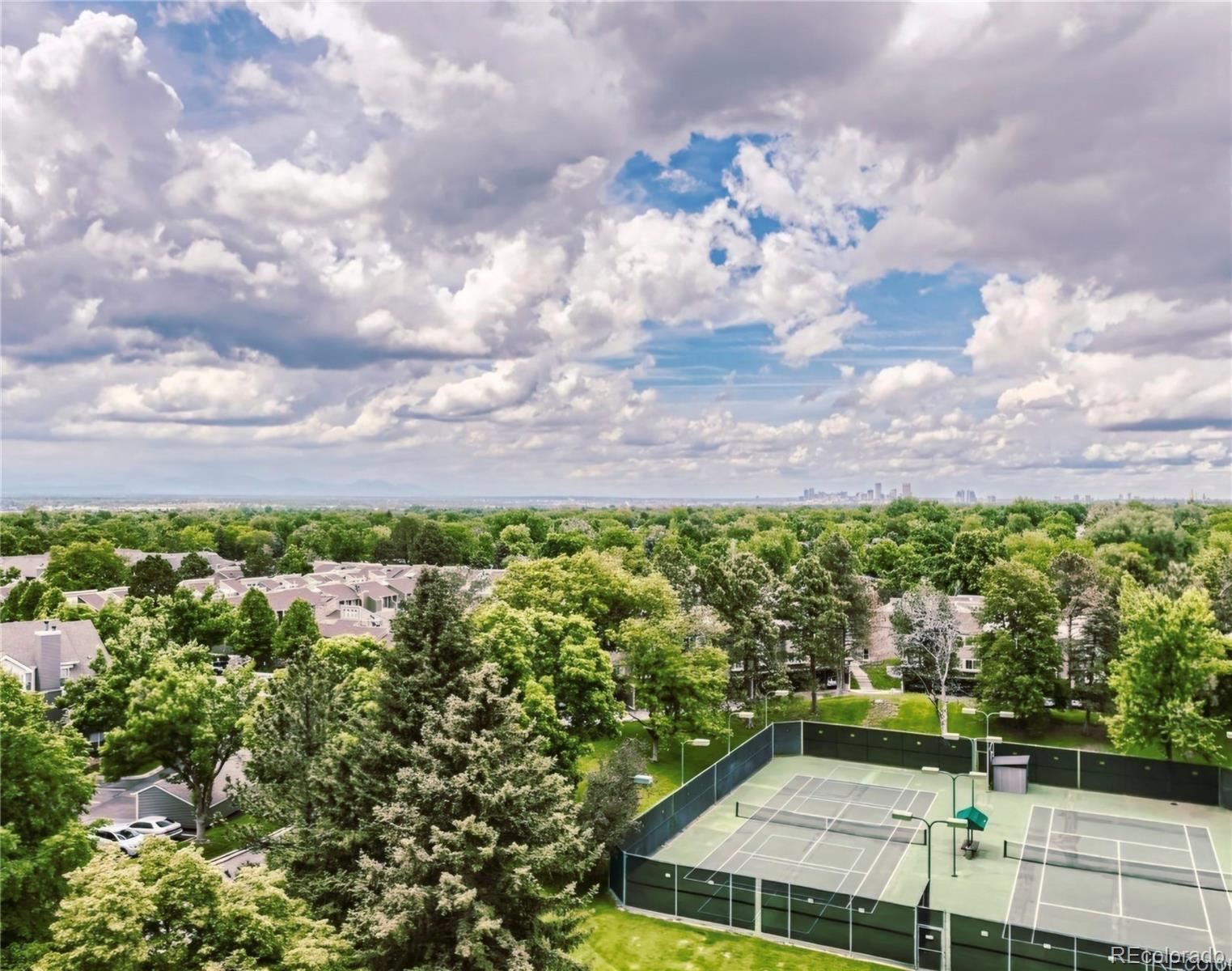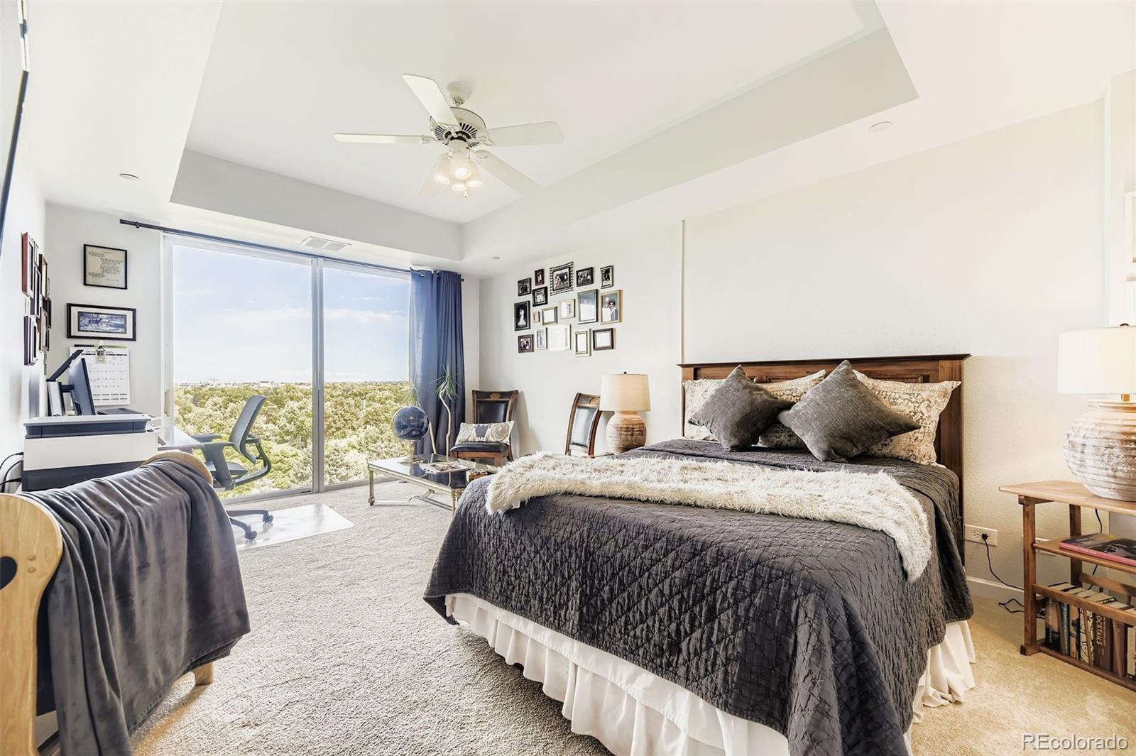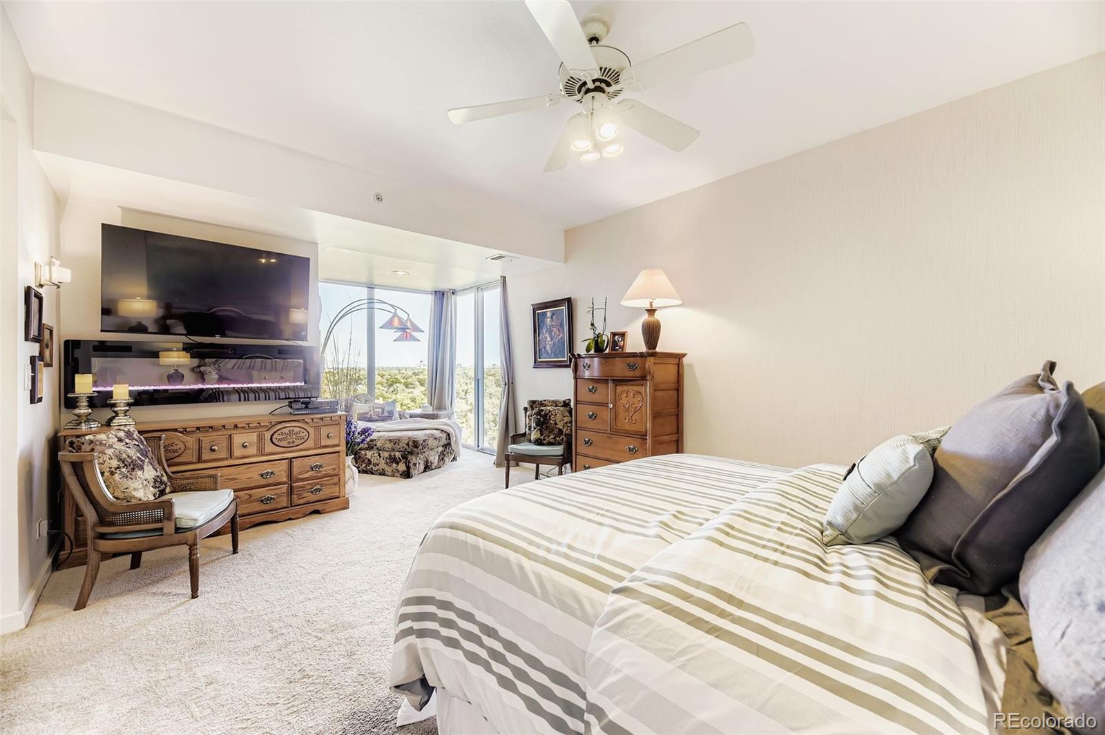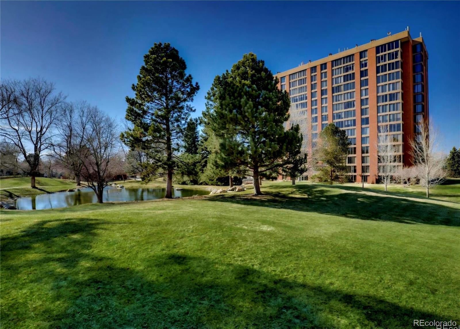 This is luxury high-rise living in highly acclaimed Cherry Hills. Take advantage of the 2.375% ASSUMABLE loan and jaw-dropping list price. This gorgeous North East corner unit has BREATHTAKING panoramic views of the Mile High. Sunrise to Sunset, views galore. Floor plan is perfect for a live/work, roommate or Mother-in-law. Two large bedrooms both boasting full baths, walk-in closets and floor to ceiling windows. Split suite design offering full privacy. Primary Bedroom flaunts an over-sized walk in closet and spa tub with views to get lost in. Open living area features 9 foot ceilings throughout, gorgeous fireplace, floor to ceiling windows with unobstructed views and proper dining area with built in storage butler. Urban contemporary style brick featured in kitchen/living area offers that hip Denver "loft" feel. Stainless appliances. Quaint cocktail/coffee bar, perfect for entertaining. No stairs. Single level living. Two side by side parking spots (Level B2 - #299/#300) in secure underground/heated garage, steps away from building entry/elevators. Secure/private XL storage unit (A11), just adjacent of dedicated parking. Impeccably maintained grounds and stunning landscape including mature trees, ponds and waterfall. Located conveniently to Downtown, DTC, dining, shopping, hospitals and entertainment. 1st class HOA services including: 24 hour security guard, concierge, secure underground parking, secure/temp controlled storage units, underground bike storage, secure package delivery, window washing twice a year, fitness center including heated indoor/outdoor pool, spa, steam rooms, meeting/party rooms, outdoor gas grills, fire pit, pool table, racquetball court, tennis/pickle ball courts, guest rental suites, all on 7.5 acre grounds. Social activities including happy hours/holiday events. Worth every penny!! Lock and go lifestyle, no worries. Opportunity to make this home your "living" work of art. You'll love it here!