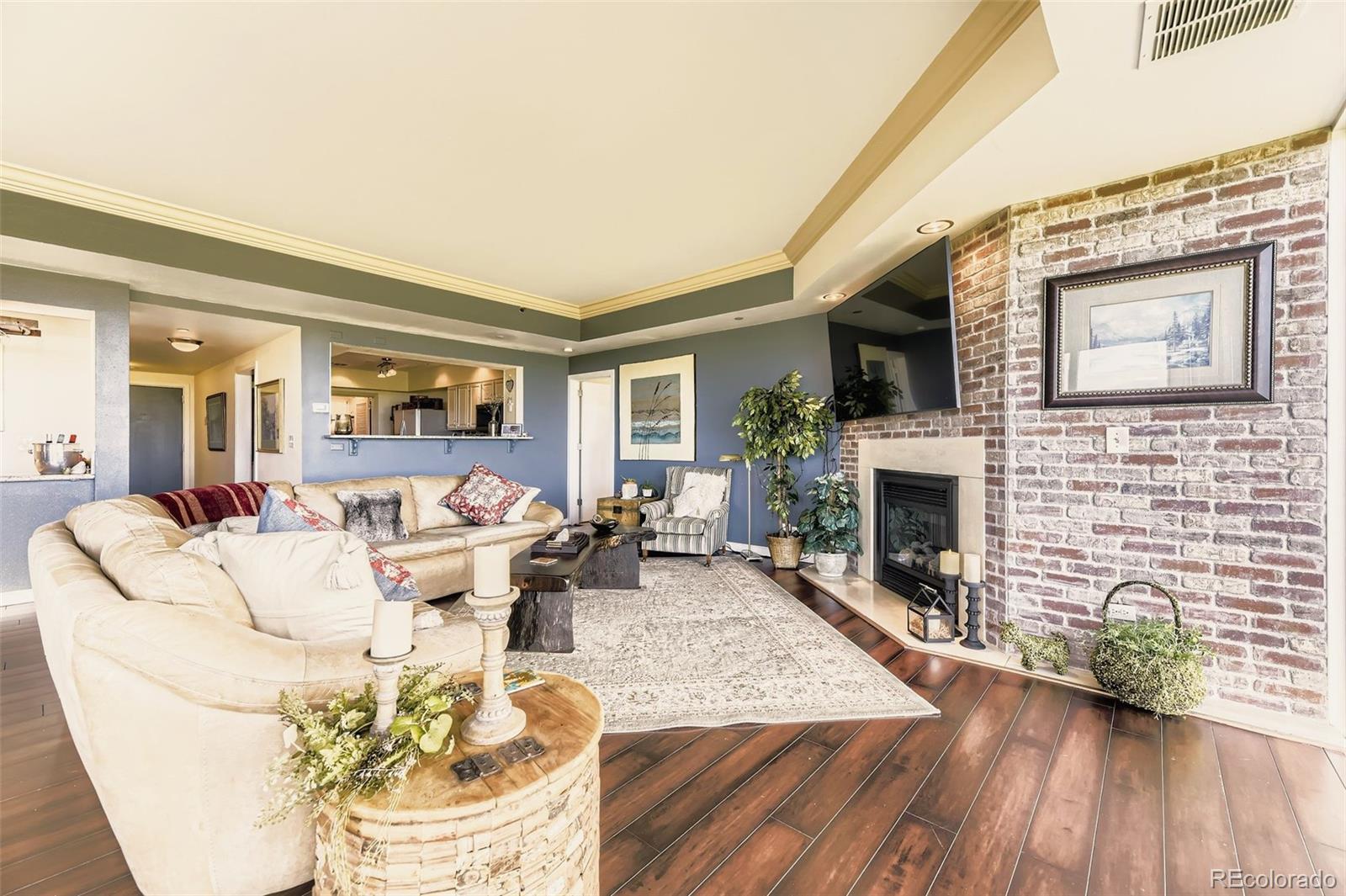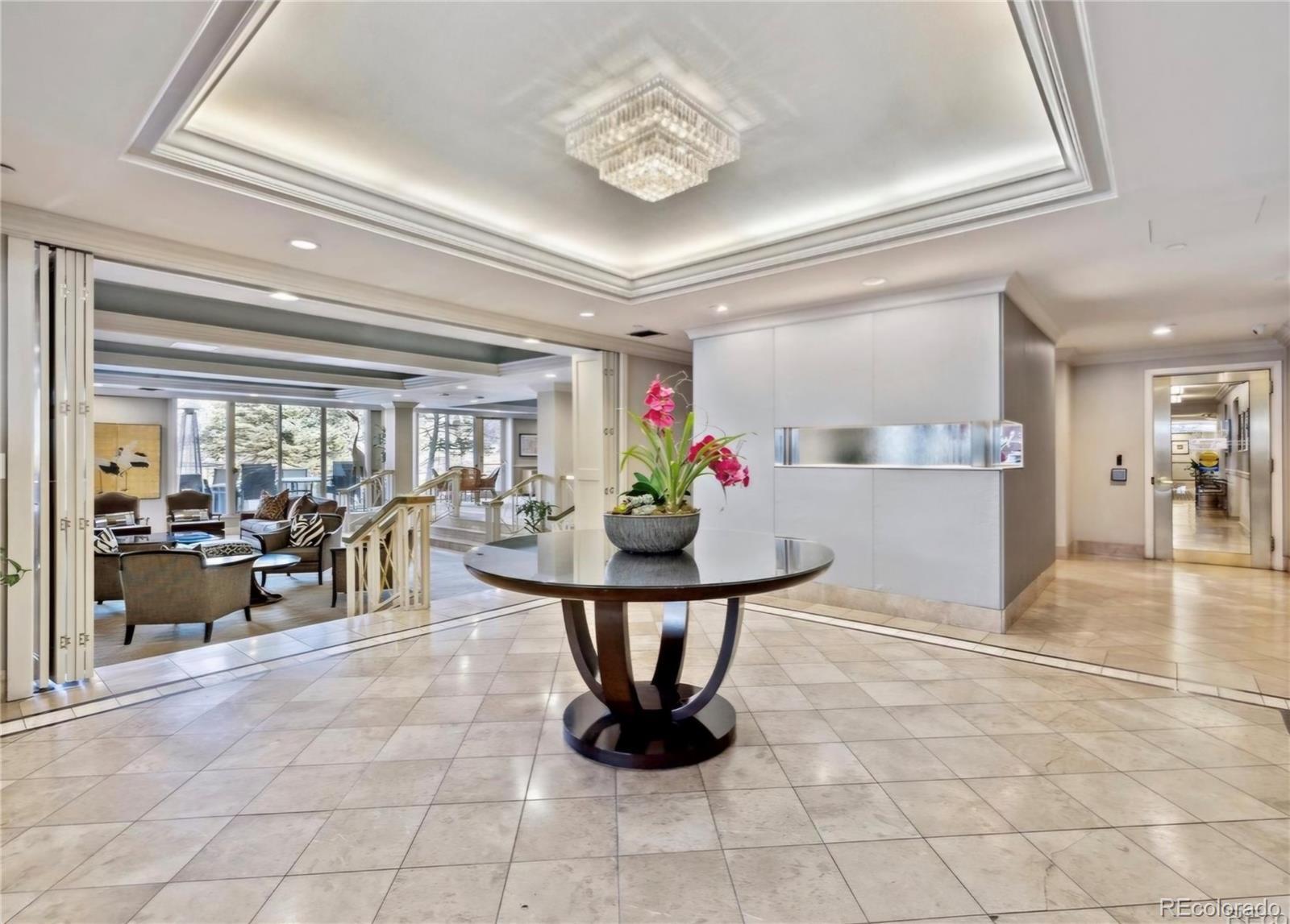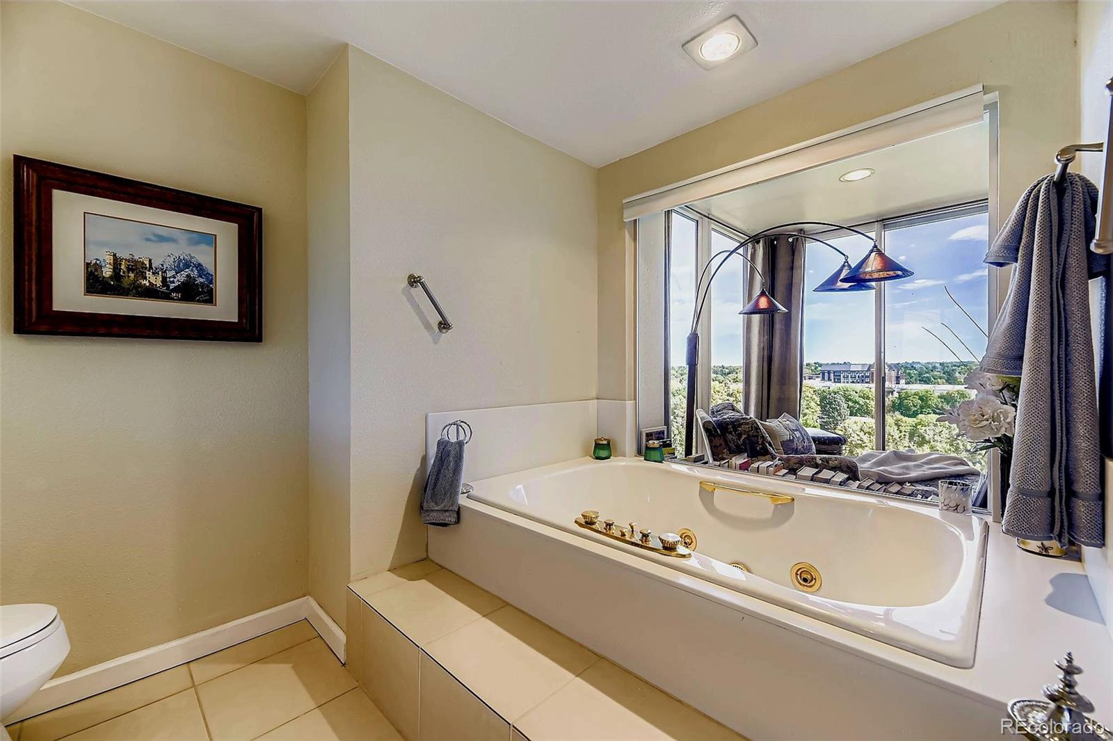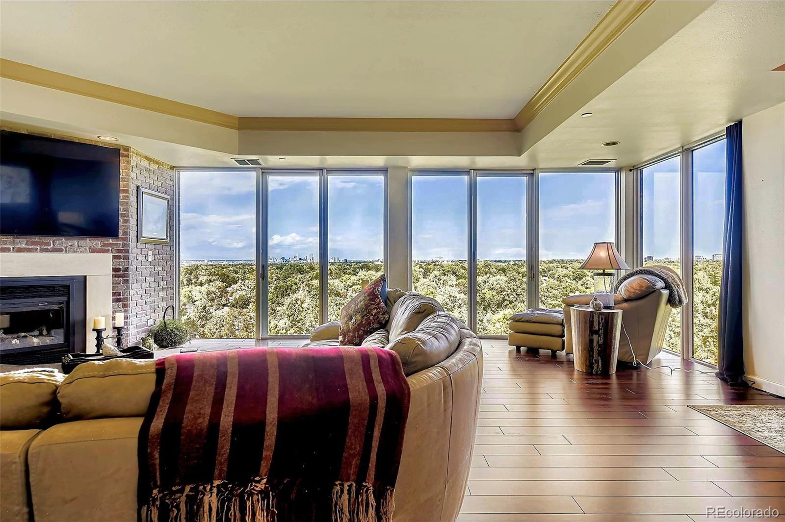 This is luxury high-rise living in highly acclaimed Cherry Hills. Take advantage of the 2.375% ASSUMABLE loan and jaw-dropping list price. This gorgeous North East corner unit has BREATHTAKING panoramic views of the Mile High. Sunrise to Sunset, views galore. Floor plan is perfect for a live/work, roommate or Mother-in-law. Two large bedrooms both boasting full baths, walk-in closets and floor to ceiling windows. Split suite design offering full privacy. Primary Bedroom flaunts an over-sized walk in closet and spa tub with views to get lost in. Open living area features 9 foot ceilings throughout, gorgeous fireplace, floor to ceiling windows with unobstructed views and proper dining area with built in storage butler. Urban contemporary style brick featured in kitchen/living area offers that hip Denver "loft" feel. Stainless appliances. Quaint cocktail/coffee bar, perfect for entertaining. No stairs. Single level living. Two side by side parking spots (Level B2 - #299/#300) in secure underground/heated garage, steps away from building entry/elevators. Secure/private XL storage unit (A11), just adjacent of dedicated parking. Impeccably maintained grounds and stunning landscape including mature trees, ponds and waterfall. Located conveniently to Downtown, DTC, dining, shopping, hospitals and entertainment. 1st class HOA services including: 24 hour security guard, concierge, secure underground parking, secure/temp controlled storage units, underground bike storage, secure package delivery, window washing twice a year, fitness center including heated indoor/outdoor pool, spa, steam rooms, meeting/party rooms, outdoor gas grills, fire pit, pool table, racquetball court, tennis/pickle ball courts, guest rental suites, all on 7.5 acre grounds. Social activities including happy hours/holiday events. Worth every penny!! Lock and go lifestyle, no worries. Opportunity to make this home your "living" work of art. You'll love it here!