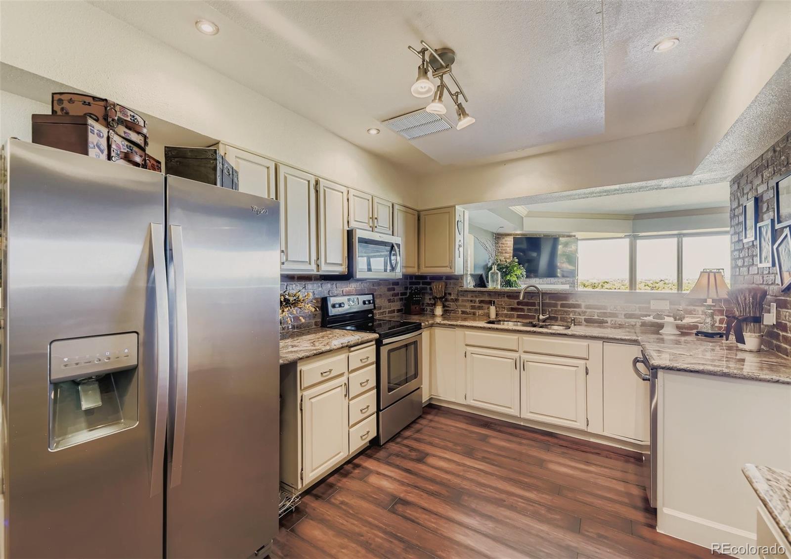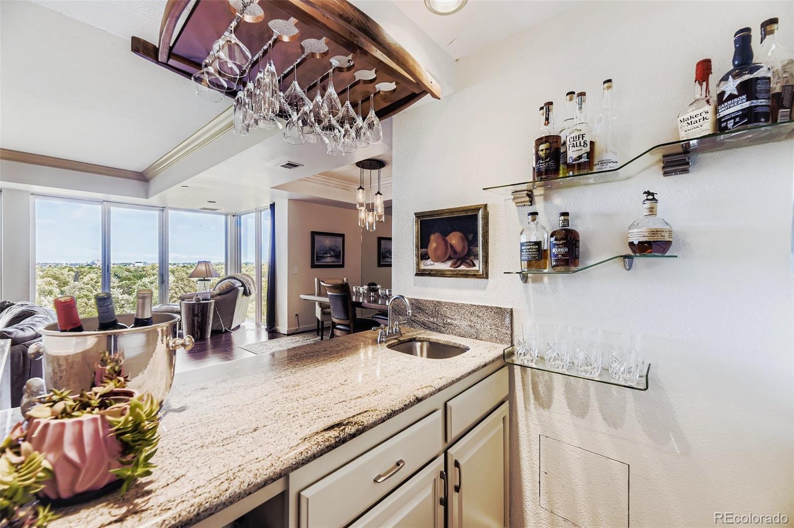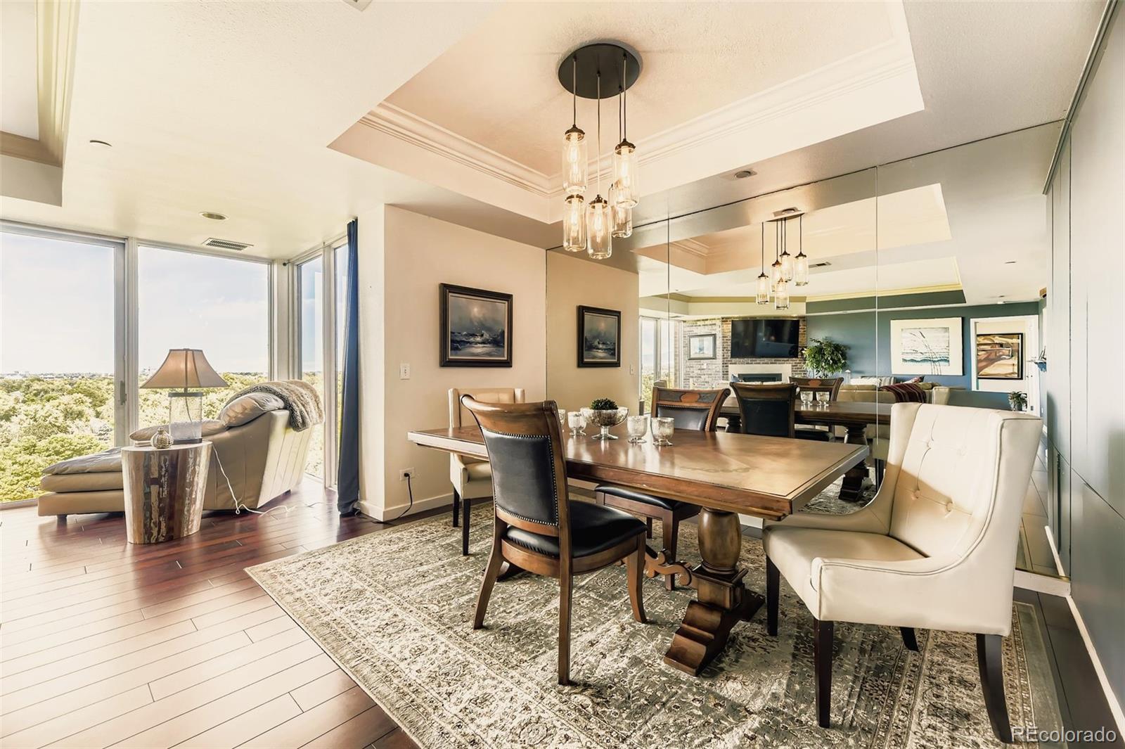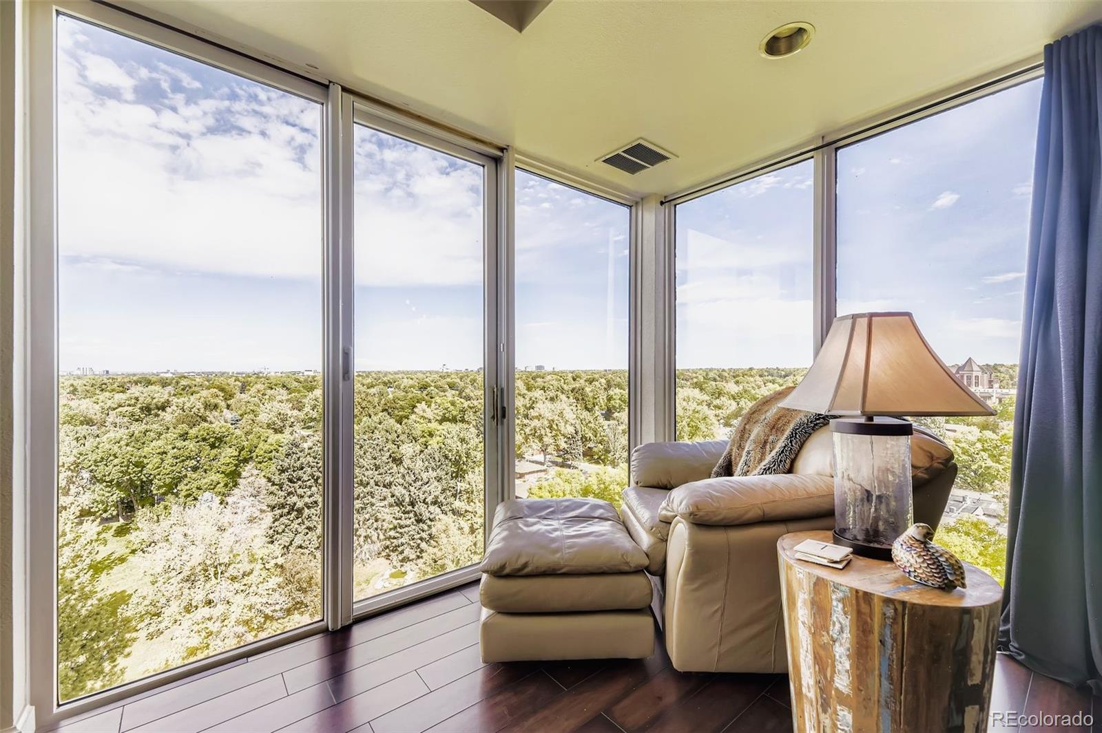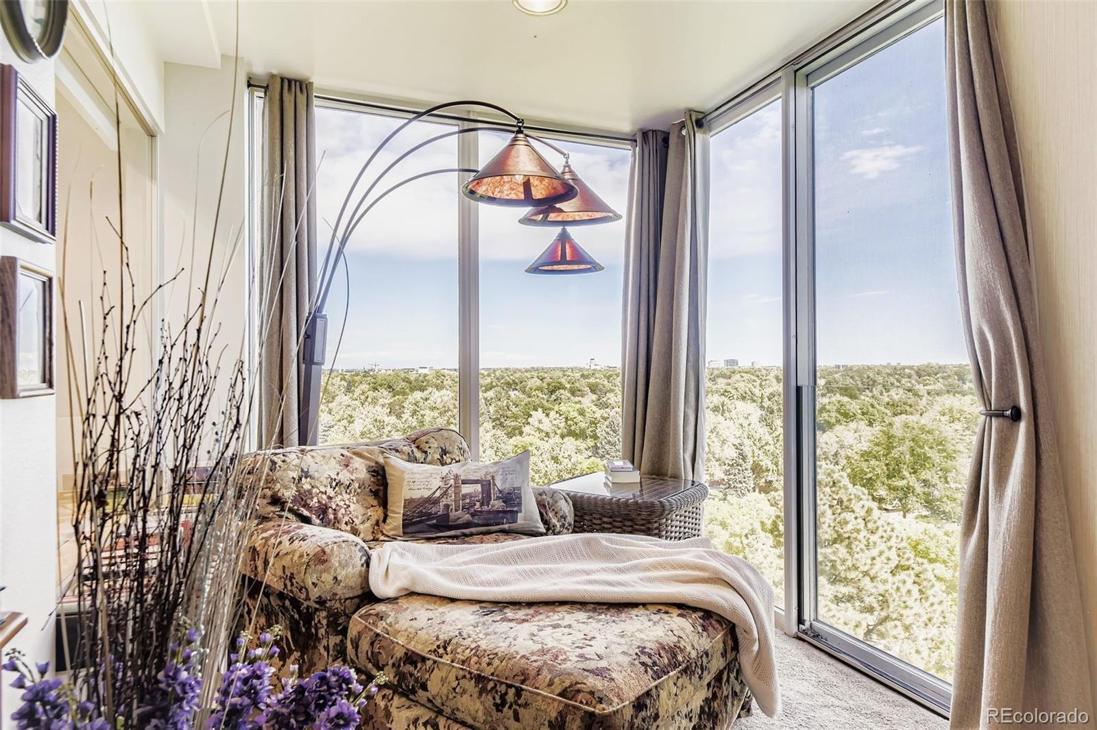 This is luxury high-rise living in highly acclaimed Cherry Hills. Take advantage of the 2.375% ASSUMABLE loan and jaw-dropping list price. This gorgeous North East corner unit has BREATHTAKING panoramic views of the Mile High. Sunrise to Sunset, views galore. Floor plan is perfect for a live/work, roommate or Mother-in-law. Two large bedrooms both boasting full baths, walk-in closets and floor to ceiling windows. Split suite design offering full privacy. Primary Bedroom flaunts an over-sized walk in closet and spa tub with views to get lost in. Open living area features 9 foot ceilings throughout, gorgeous fireplace, floor to ceiling windows with unobstructed views and proper dining area with built in storage butler. Urban contemporary style brick featured in kitchen/living area offers that hip Denver "loft" feel. Stainless appliances. Quaint cocktail/coffee bar, perfect for entertaining. No stairs. Single level living. Two side by side parking spots (Level B2 - #299/#300) in secure underground/heated garage, steps away from building entry/elevators. Secure/private XL storage unit (A11), just adjacent of dedicated parking. Impeccably maintained grounds and stunning landscape including mature trees, ponds and waterfall. Located conveniently to Downtown, DTC, dining, shopping, hospitals and entertainment. 1st class HOA services including: 24 hour security guard, concierge, secure underground parking, secure/temp controlled storage units, underground bike storage, secure package delivery, window washing twice a year, fitness center including heated indoor/outdoor pool, spa, steam rooms, meeting/party rooms, outdoor gas grills, fire pit, pool table, racquetball court, tennis/pickle ball courts, guest rental suites, all on 7.5 acre grounds. Social activities including happy hours/holiday events. Worth every penny!! Lock and go lifestyle, no worries. Opportunity to make this home your "living" work of art. You'll love it here!
