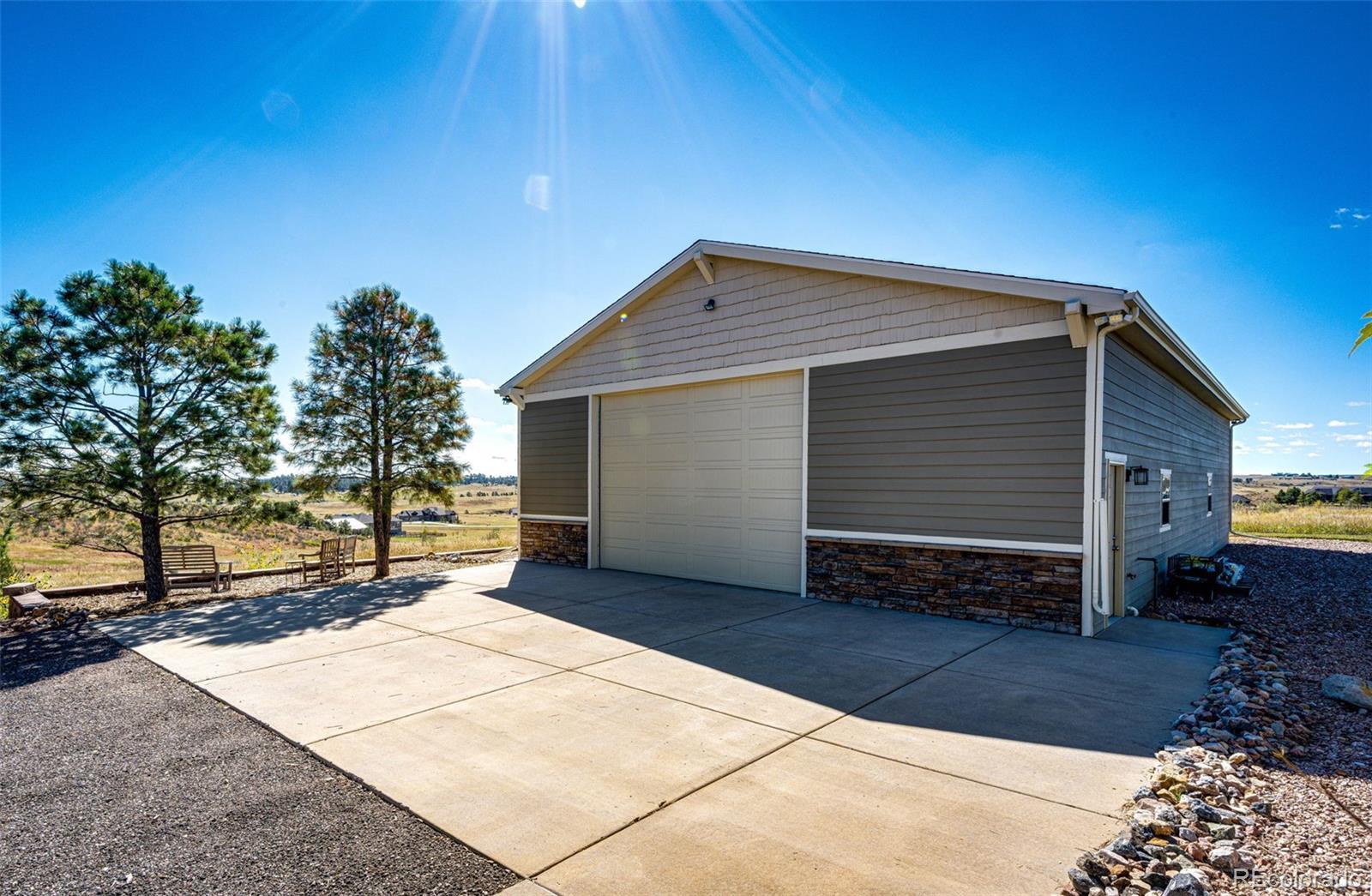 Set on more than five acres of pristine Colorado landscape, 575 Heritage Trail delivers a luxury acreage lifestyle framed by rolling meadows, dramatic cliffs, and endless vistas in the prestigious Wild Pointe Ranch community. This rare setting offers direct access to miles of walking paths and equestrian trails, inviting you to explore the surrounding beauty on foot or horseback while enjoying the peace, privacy, and natural grandeur that define this neighborhood. The home blends refined finishes with warm, modern comfort, featuring sun-filled spaces, soaring ceilings, rich hardwood floors, and a gourmet kitchen with granite surfaces, premium cabinetry, and an oversized island designed for entertaining. The primary suite is a private retreat with spa-level amenities and serene views, while the finished basement expands the home’s versatility with room for recreation, fitness, media, or multi-generational living. A crown jewel of the property is the extraordinary 2,160 square foot workshop designed for RV, boat, and collector storage, offering upgraded dual-phase power, full drywall, heat, water, and an oversized 12.5 by 16 foot door that easily accommodates large vehicles, equipment, and professional-grade hobbies. Outdoors, the expansive acreage provides room for animals, gardens, toys, and future enhancements, all framed by breathtaking sunsets that spill across distant ridge lines and open terrain. The covered patio is perfect for evening relaxation or sophisticated gatherings, creating a seamless connection between indoor comfort and the surrounding natural splendor. With luxury finishes, unmatched utility, and a setting that feels like a private sanctuary yet remains minutes from Parker, Castle Rock, and the conveniences of town, this property stands as one of the finest offerings in the Elizabeth area and an exceptional opportunity for buyers seeking elevated living with extraordinary space and scenery.