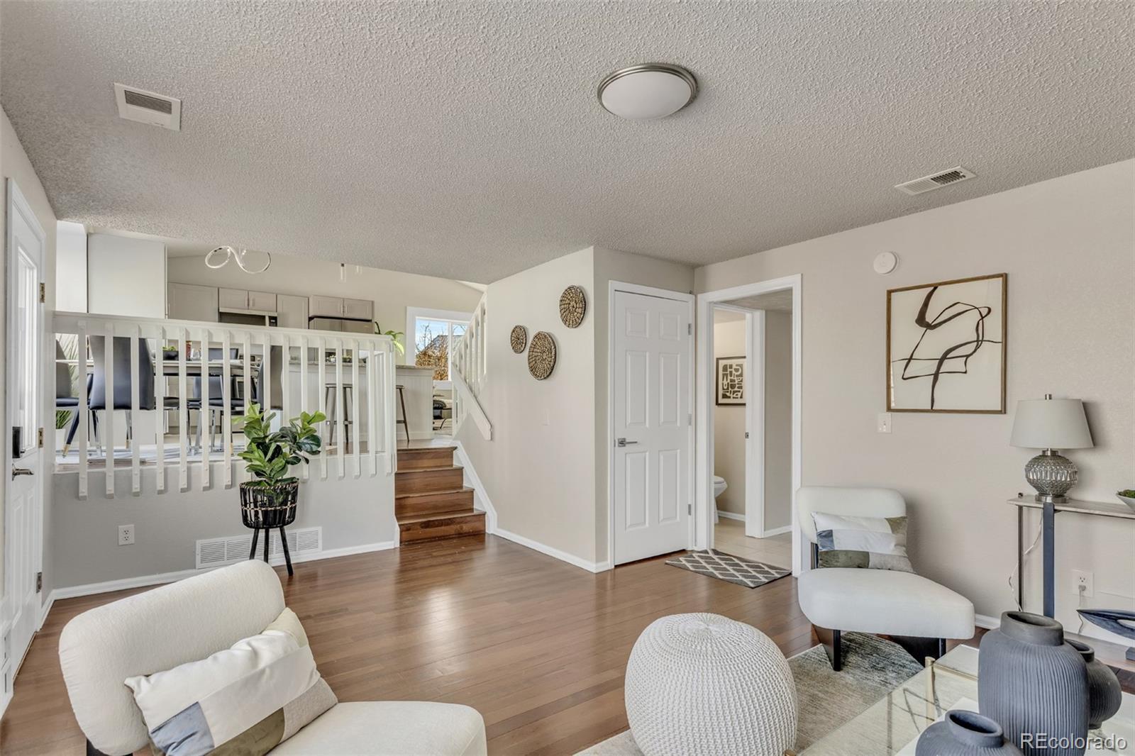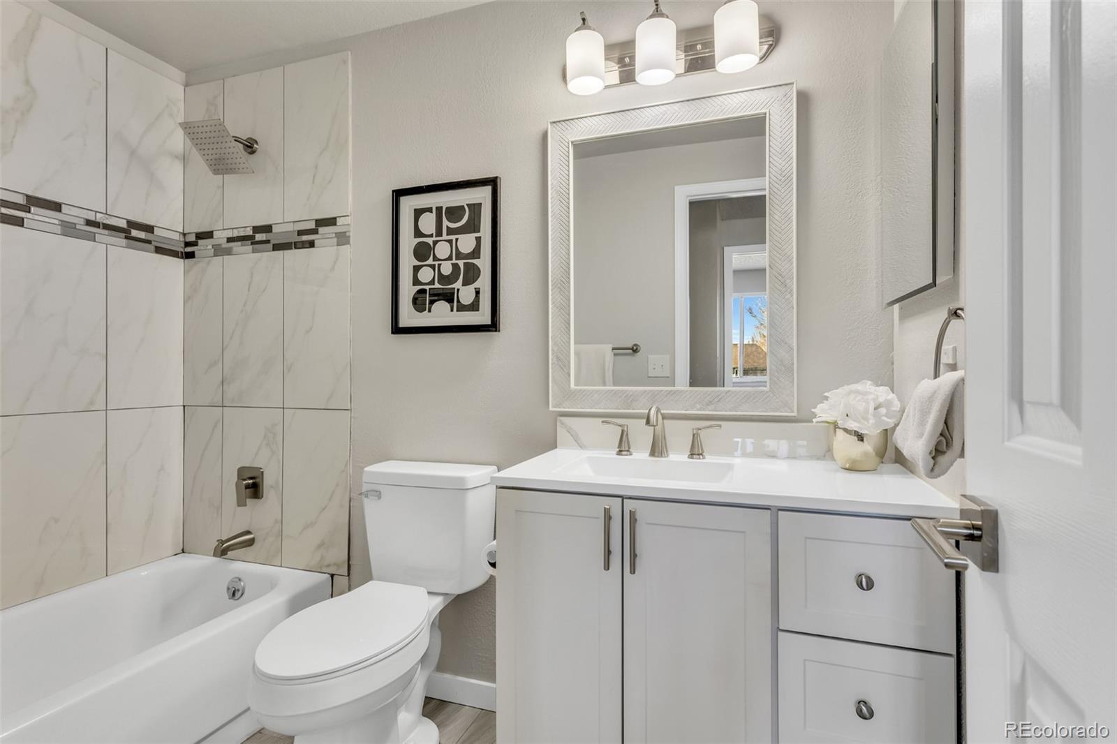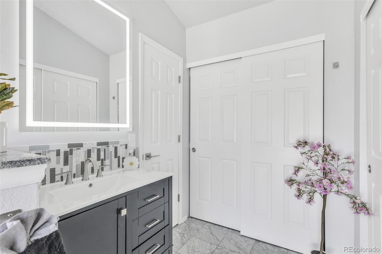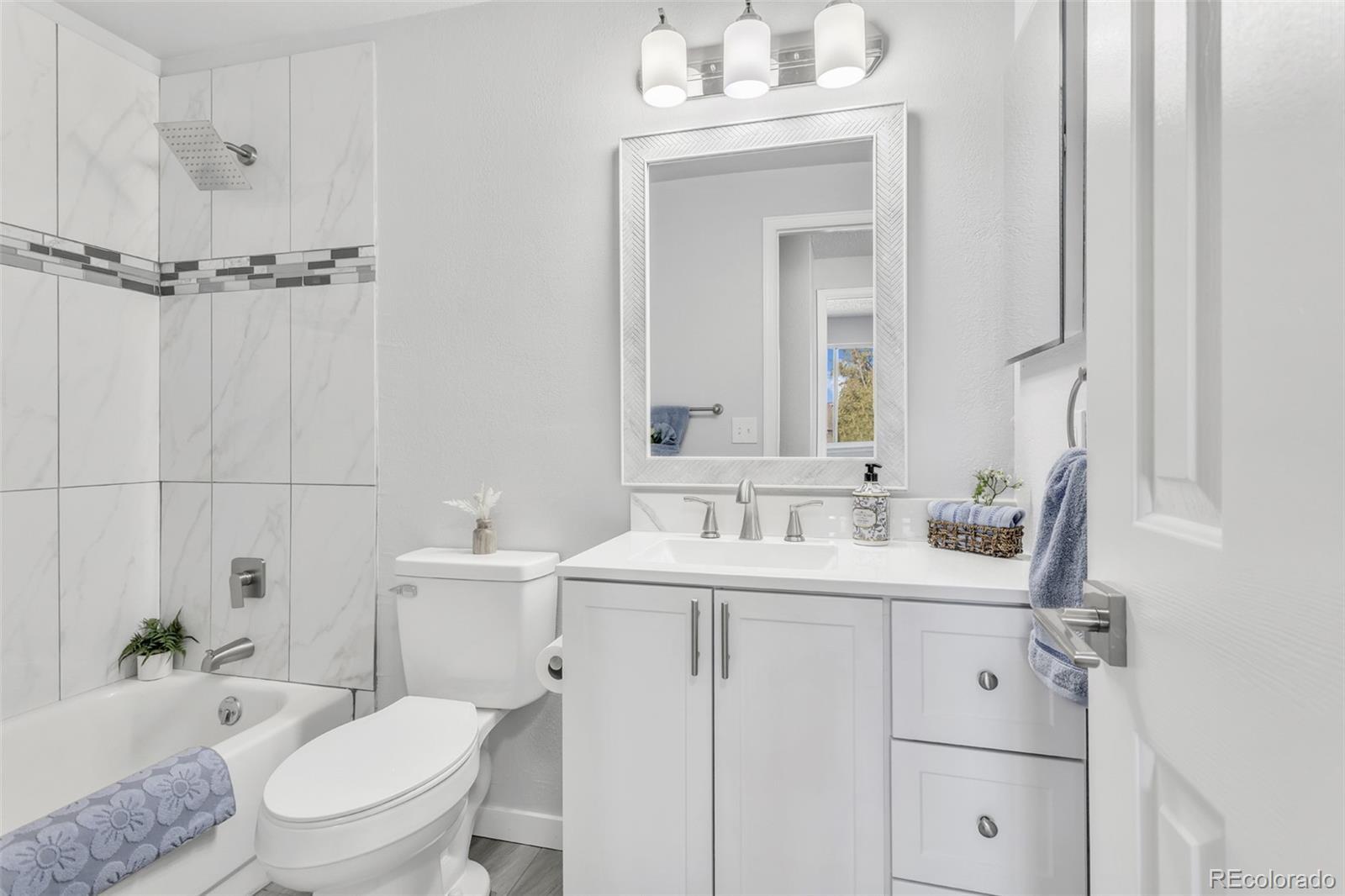Come and discover a remarkable 4 bedroom house in Centennial that I'm confident will capture your imagination. This home is meticulously reimagined with charm and upgrades! From the moment you arrive, you'll be struck by its curb appeal as it is situated on an expansive, unique shaped parcel— larger than most in the area. A charming al fresco nook graces the front entry that is perfect for savoring afternoons with a cool beverage in hand. Step inside, & prepare to be enchanted by an interior designed for modern living and entertaining. The sun-drenched living room flows seamlessly into a gourmet kitchen that truly belongs on the pages of an design magazine. Kitchen boasts gleaming granite countertops, contemporary backsplash, and pristine Shaker cabinetry, all complemented with brand-new appliances. Adjacent to the kitchen, a dedicated dining space offers views of the backyard and a way to peek into the cozy lower-level family room. Journeying downstairs, you'll discover a supremely comfortable 16x12 lower-level family room, ideal for lively game days. A convenient half-bath is perfectly situated near the garage entry. Ascend to the upper level, you'll find Two nice proportioned bedrooms with new carpeting, and elegant paint, ensuring an easy move-in experience. The primary suite stands alone as a sanctuary, easily accommodating a king-sized bed and featuring a 'getting ready' zone. Its en-suite bathroom is modern and renovated with a four-piece bath for those with the most discerning tastes in mind. and it opens to the fully finished basement for an additional 400 square feet. This floor thoughtfully incorporates an extra bedroom, a designer 3/4 bathroom, and a dedicated laundry area, perfect as a self-contained suite for extended family or that teenager! Back outside, fully fenced backyard awaits—a private outdoor oasis ripe for creating distinct zones: envision a crackling fire pit gathering area, or a serene garden nook for cultivating your green thumb.