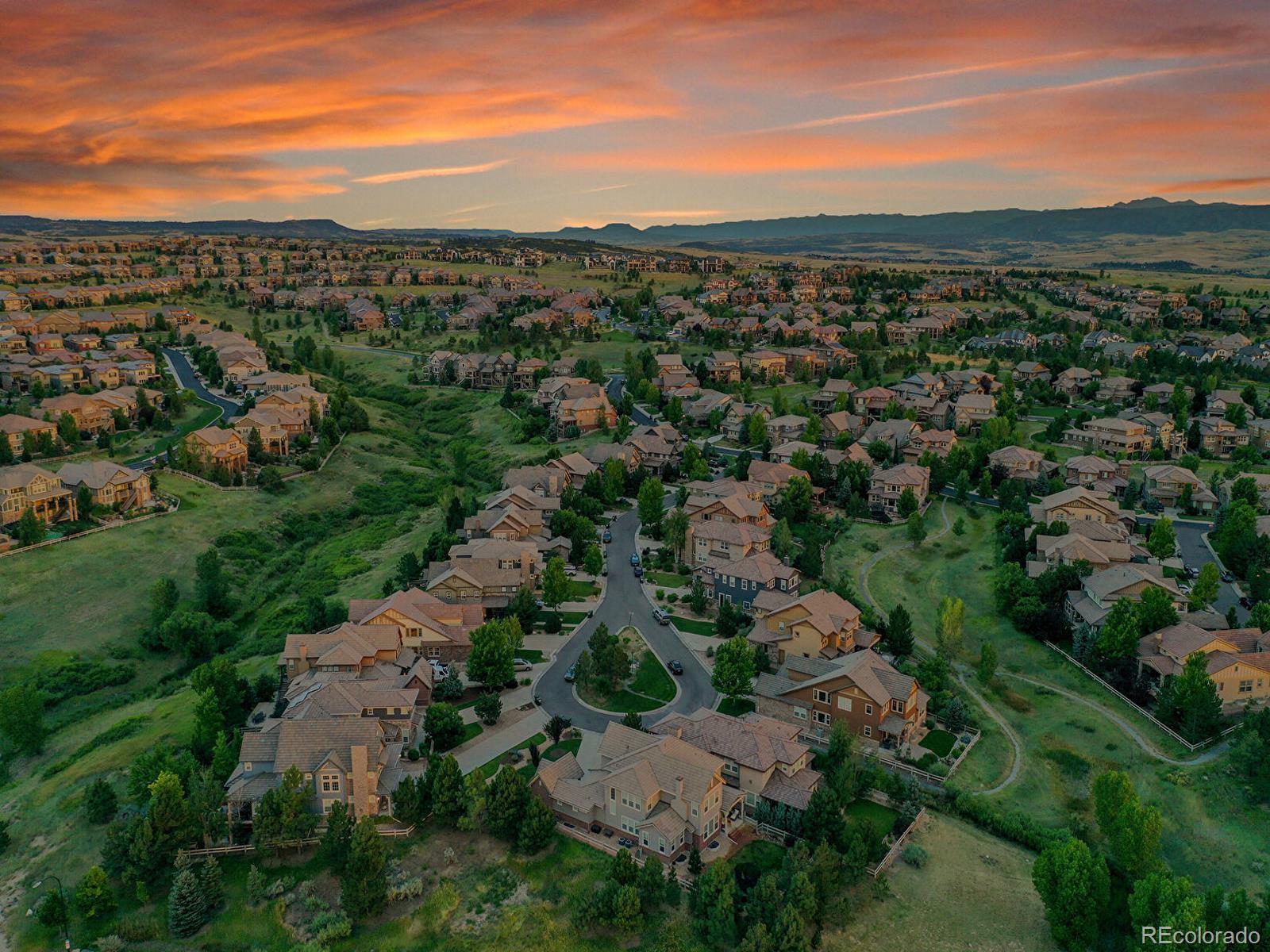 Colorado living at its finest—this lovely 5-bedroom Backcountry retreat with a main floor primary bedroom sits on a quiet cul-de-sac, backs to open space, and offers multigenerational living with seamless indoor-outdoor flow. A foyer opens gracefully, featuring expansive tile floors and vaulted ceilings layered in soothing Colorado-inspired shades. The bright front bedroom with an adjacent full bath suits guests, while a private office delivers a quiet spot for important meetings. Framed by impressive tall windows and illuminated by a graceful chandelier, the formal dining room offers an ambiance that elevates every gathering. The heart of the home is the open-concept family room, where a cozy fireplace and floor-to-ceiling windows frame tranquil views of the backyard. Overlooking the space, the eat-in kitchen boasts rich wooden cabinetry, granite countertops, stainless steel appliances including double ovens, a sleek cooktop, a large island with seating, and a built-in serving counter. A sunny breakfast nook leads to a covered deck with incredible views, perfect for al fresco dining. Tucked privately down a hall, the serene main-floor primary suite features a fireplace, natural light, and a spa-inspired five-piece bath with a generous walk-in closet. A spacious loft suite upstairs includes a large bedroom, private full bath, and walk-in closet, perfect for flexible living needs. A convenient laundry room/mudroom and a half bath complete the main floor. The walkout basement features a kitchenette with elegant wood flooring and a vast rec space for entertaining. Two bedrooms and a full bath are crafted for seamless multigenerational living. Offering the best in outdoor privacy, the backyard boasts lush greenery, a covered patio, and open space access for peaceful, uninterrupted views. Enjoy the Backcountry community’s parks, trails, and top-rated schools—just minutes from Chatfield Reservoir and Highlands Ranch Town Center.