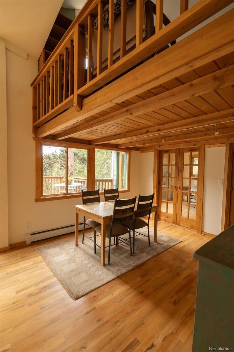 Escape to Your Mountain Retreat – Just 20 Mins from Boulder's Buzz!Nestled on nearly 6 acres of pristine Colorado wilderness, this architectural gem evokes a modern treehouse suspended in nature. Wraparound windows flood open spaces with sunlight, creating an airy vibe that melts away the daily grind, with sweeping canyon and mountain views perfect for morning coffee or sunset toasts.Why This Home Steals the Show: Epic Open Floor Plan: Soaring 20-foot ceilings and seamless hardwood floors flow effortlessly from living to dining areas, ideal for gatherings or quiet reflection. Smart Layout: Two secluded upstairs rooms for guests or retreats; main-floor office, master bedroom, and three versatile living spaces for year-round comfort—sunny play areas or cozy Netflix zones. Kitchen Oasis: Ample counters and a chef-top island let guests sip wine while you entertain. Bonus Features: Spa-like steam shower for post-ski or cycle recovery; multi-level decks blurring indoor-outdoor lines; plus a separate den/studio steps from the house.Adventure awaits: Bike the Peak-to-Peak, hike Ward's trails or ridge to Jamestown's brick-oven pizza—all just a 20-minute drive to Boulder's craft brews, farm-to-table eats, and Front Range energy. Perched on historic Nugget Hill, it's neighborly yet serenely private—your gateway to Colorado's wild heart.Ready to Claim Your Slice of Paradise? Schedule a viewing today—properties like this vanish faster than a summer snowpack.