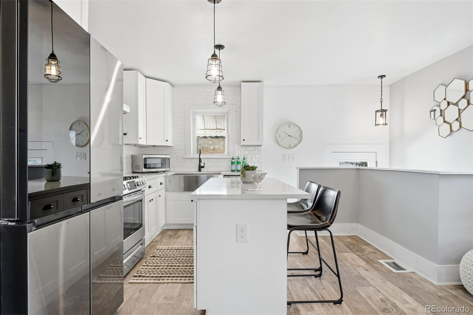 Step into this charming bungalow, perfectly nestled just one block from the spacious Bates/Logan Park and moments from downtown Englewood's vibrant energy. With 3 bedrooms, 2 bathrooms, and 1,352 square feet of thoughtfully updated living space, this home beautifully blends modern comforts with timeless appeal. The heart of the home—a sleek, updated kitchen—boasts stainless steel appliances, a gas range, and a stunning quartz island, ideal for casual breakfasts or hosting friends. Natural light pours into the open living spaces, creating a warm and inviting atmosphere. Step outside, and you'll find your personal oasis: an expansive backyard featuring a recently refinished deck, perfect for summer BBQs and evening gatherings. Situated near the best of South Broadway, you’ll love being just minutes from trendy restaurants, lively nightlife, and boutique shopping. Plus, with easy access to the foothills and mountains, weekend adventures are always within reach. A detached one-car garage offers convenient storage for your car, bikes, or outdoor gear. Don’t miss the chance to make this move-in-ready gem your home. Whether you're drawn to its prime location, stylish updates, or outdoor retreat, this bungalow checks all the boxes!