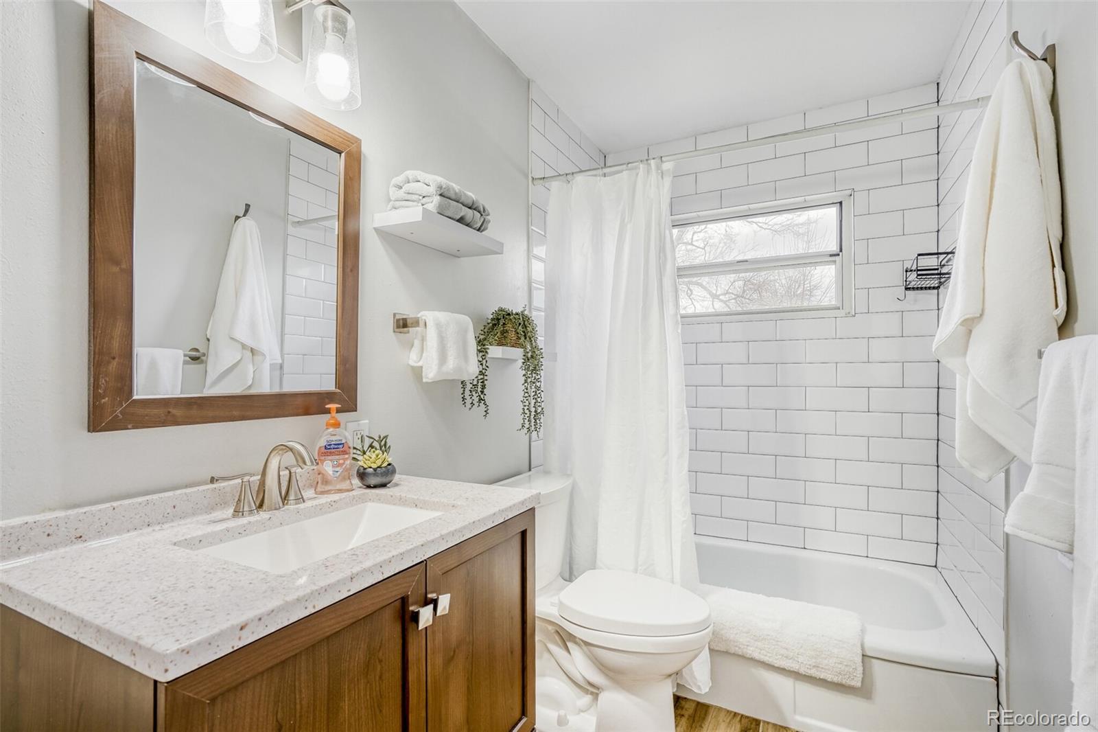Charming, fully updated 6-bedroom, 3-bath home in the beautiful Eiber neighborhood of Lakewood! This classic mid-century red brick home sits on a spacious corner lot and has been thoughtfully renovated inside and out, offering the perfect blend of character and modern comfort. The main level features an open, inviting layout with a fully updated kitchen, open dining area with access to the back patio and yard, and a light-filled living room complete with the original wood-burning fireplace. The primary suite includes generous closet space and a brand-new, spa-like en suite bathroom with a large walk-in shower (room for two+!). Secondary bedrooms are well-sized (king beds+), and the 2nd main level bathroom is also fully updated. Lovely natural light throughout! The finished basement provides exceptional flexibility w/a large living area, wet bar (easily convertible to a kitchenette), a 3rd fully updated bathroom, and 3 additional bedrooms—2 w/ egress and one w/o (yet still filled w/ natural light.) Excellent storage throughout the home and fresh interior paint add to the move-in-ready appeal. Enjoy the fully fenced backyard, ideal for entertaining, gardening, or relaxing outdoors, enhanced by beautiful new landscaping. Eiber is a highly desirable, tree-lined neighborhood offering a peaceful setting w/ quick access to major roads, schools, shopping, and dining. Plus, the home is just two blocks from the very quiet light rail—reach downtown for dinner, a game, or work in approximately 20 minutes without driving! Welcome home! Buyer to verify all information.