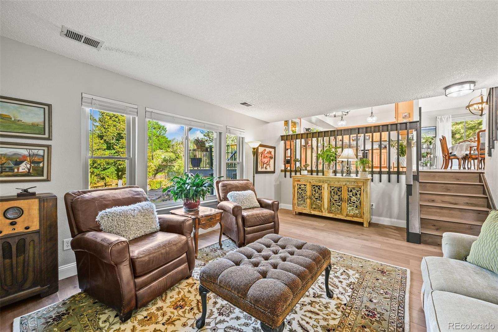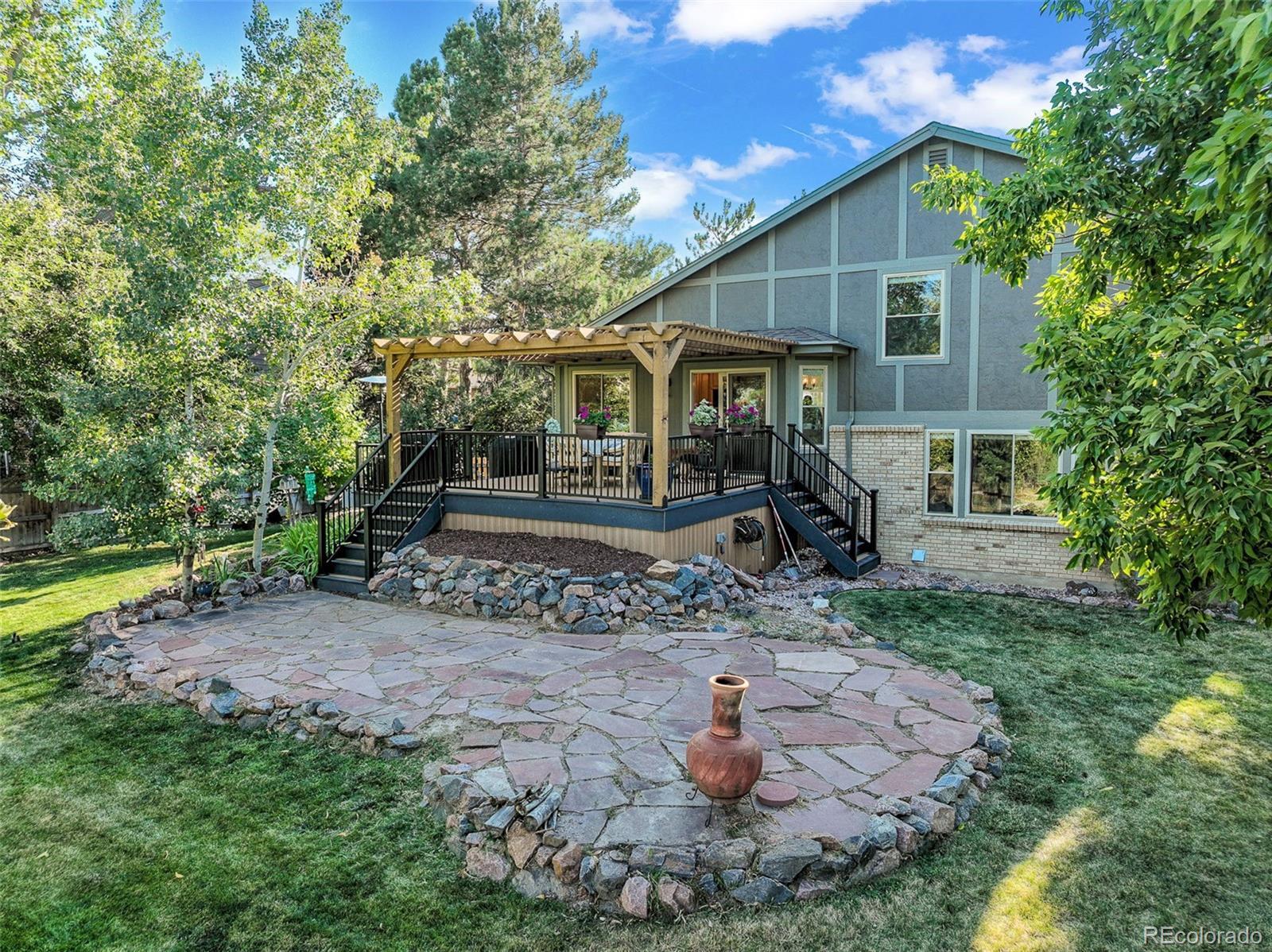 Welcome to this beautifuly designed, corner lot home in The Highlands neighborhood of Centennial! This 4 bed / 3 bath, tri-level home blends open-concept living with a peaceful backyard retreat that backs to open space. With a dreamy deck, mature trees, and a whisper of wildlife nearby, it’s where personal gatherings and quiet Colorado mornings collide. Step inside and you’ll be greeted by an open floorplan with newly installed laminate flooring throughout the main, lower, and upper levels, and soaring vaulted ceilings with windows that flood the living room with natural light. The open-concept dining room, kitchen and living room blend seamlessly together and set the stage for memorable moments with those that matter most to you. The kitchen features Corian countertops, a breakfast nook, and views into the cozy sunken family room with fireplace—perfect for relaxing evenings. Upstairs, the primary suite is a true retreat with its own fireplace, two closets, and a luxurious 5-piece bath. Two additional bedrooms and a full bath complete the upper level. Need a quiet retreat and some time alone? Head downstairs to the finished basement that offers a fourth, non-conforming, bedroom and an extra living space for guests, hobbies, or entertainment. Enjoy Colorado’s outdoor living on the deck with pergola, overlooking a peaceful backyard with mature trees, fruit trees, and space for gardening. The home backs to open space with water and wildlife, giving it a private, country-like feel while still being close to everything from Park Meadows mall, the Highline canal, or the shops at Southglenn. This one has it all—style, space, and the perfect Centennial location. Don't forget to make a note that this is one location you don't want miss!