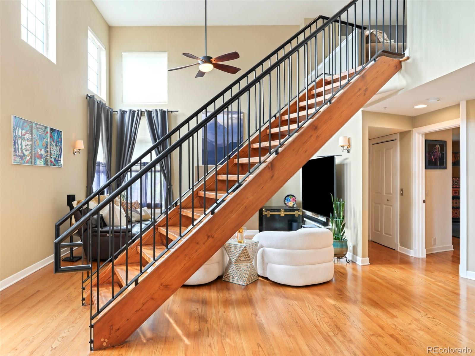 AMAZING NEW PRICE!! Soaring ceilings, abundant natural light and a rare two-story design define this stylish Capitol Hill residence, offering an elevated urban retreat with modern sophistication. Anchored by a striking staircase, the open floorplan effortlessly blends a bright kitchen with stainless steel appliances, a breakfast bar seating and a dining area illuminated by a contemporary fixture and the natural light off the balcony. The inviting living space centers around a cozy fireplace, adding warmth and ambiance throughout. Upstairs, a loft-style primary suite evokes the feel of a private treehouse, complete with a serene bath and private balcony, perfect for enjoying fresh air in the city. A spacious secondary bedroom provides flexibility for guests or a home office. With two secure underground parking spaces, wired sound throughout and a vibrant location in one of Denver’s most iconic neighborhoods, this residence captures the best of contemporary city living with comfort, style and seamless access to local shopping, dining and parks. Preferred Lender is offering a 1% buy-down! Call the agent for details!