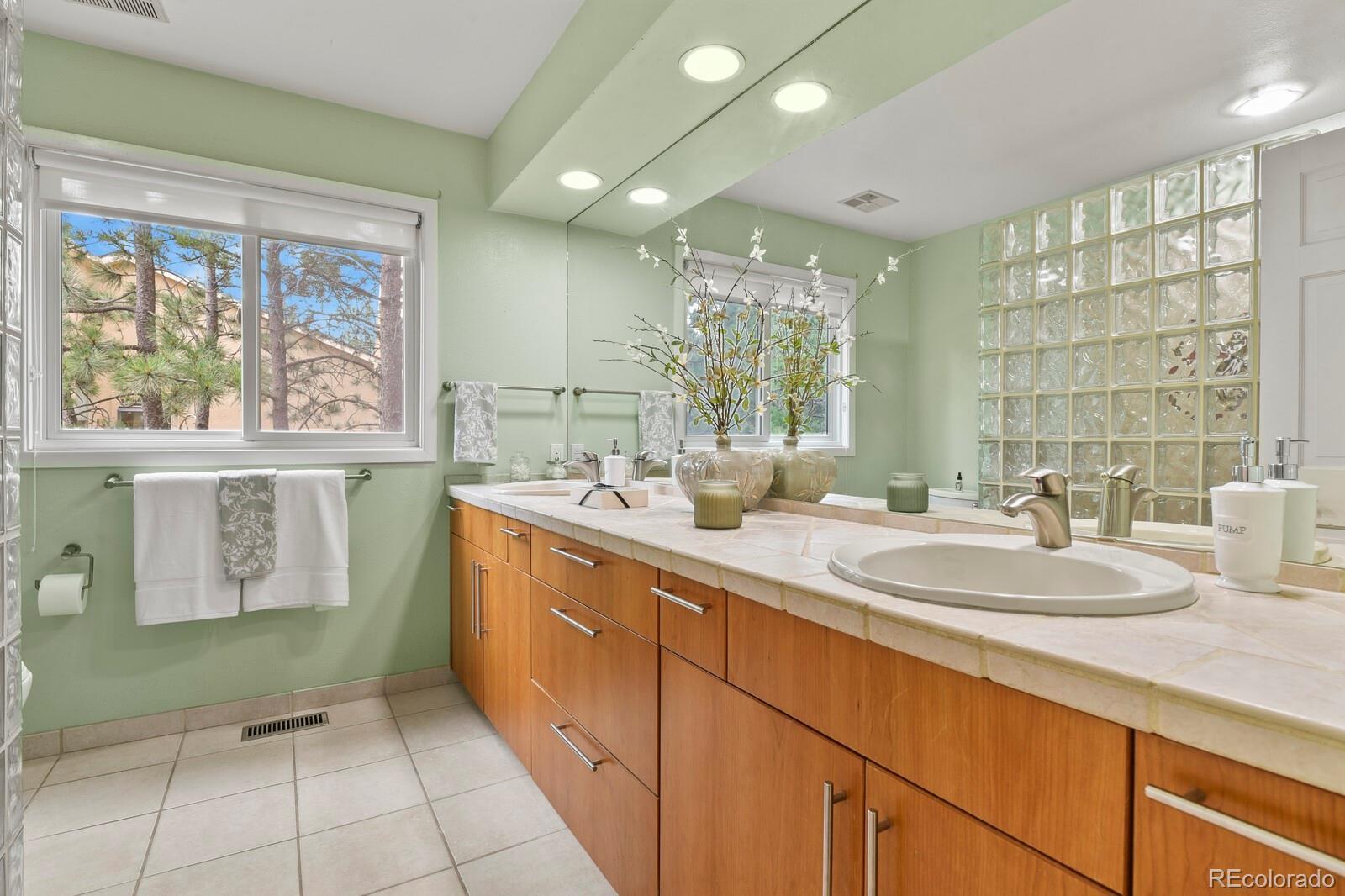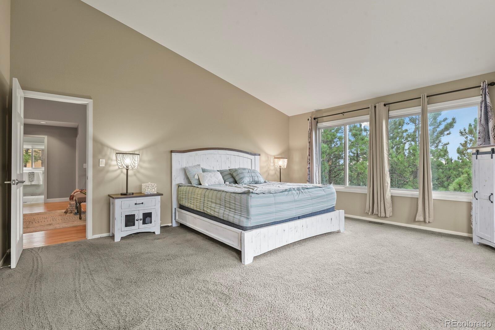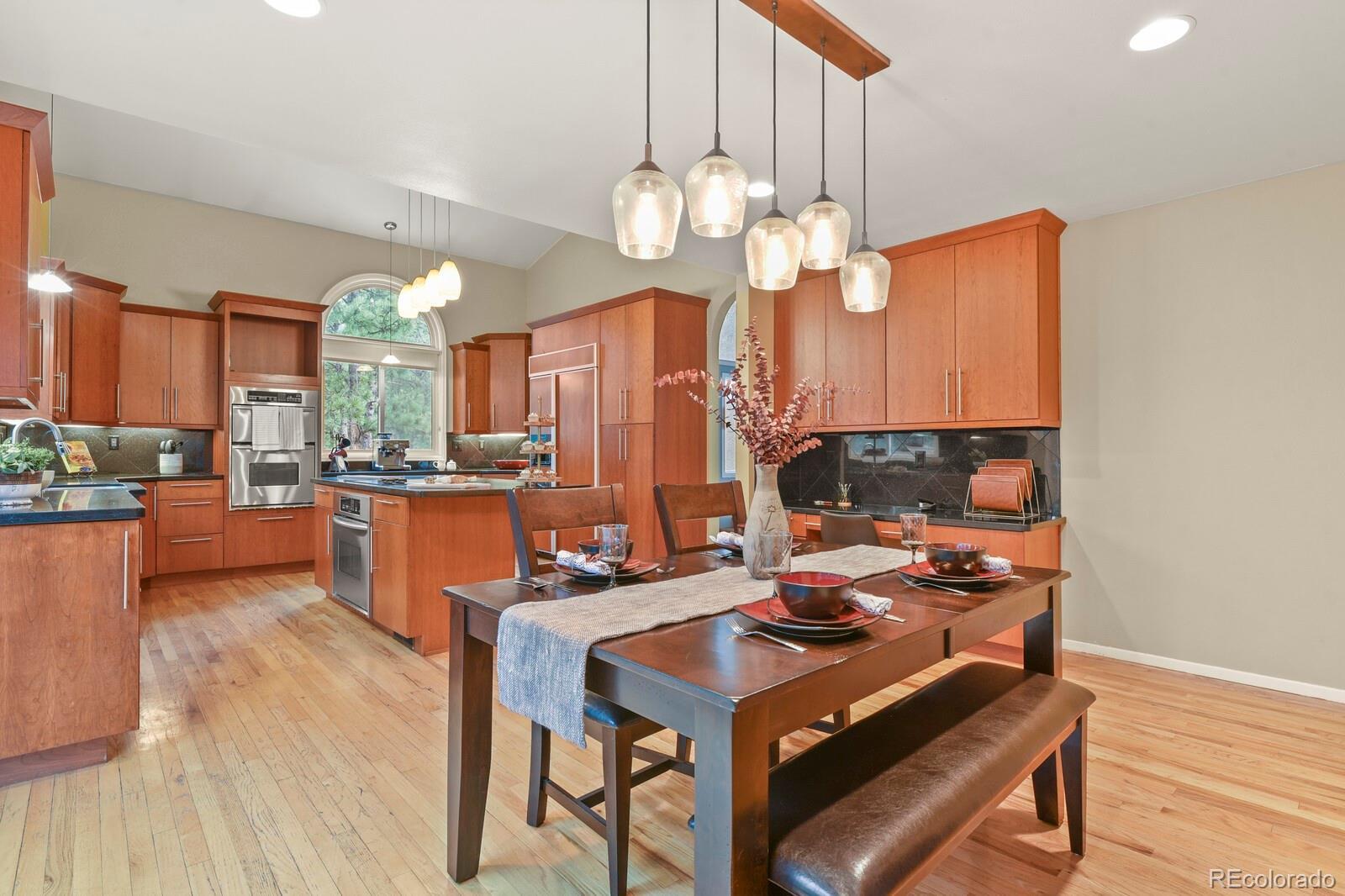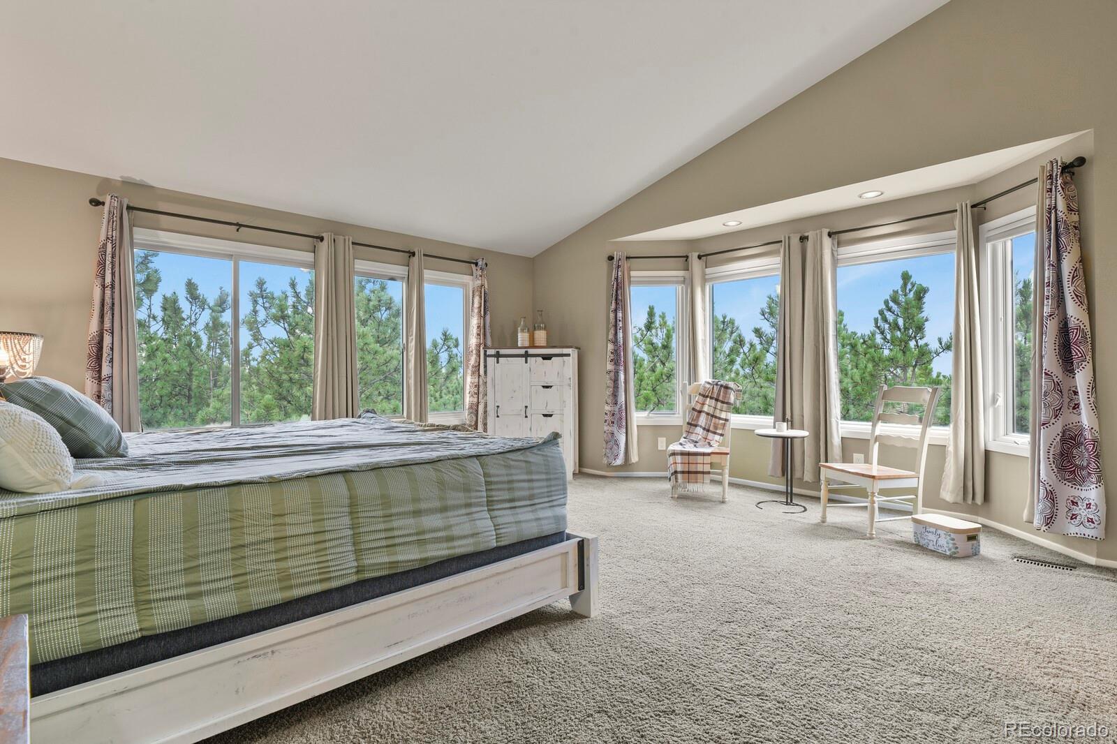 Tucked away in the towering pines of Woodmoor, this stunning 5-bedroom home offers privacy, mountain views and an ideal layout for everyday living and entertaining. Situated on nearly 2/3 of an acre with a brand-new composite wrap-around deck (installed in 2021) featuring Trex decking and all-aluminum framing, perfect for Colorado sunsets and entertaining guests. The roof, replaced just 5 years ago, is a Class 4 high-impact shingle with a 50-year transferable warranty, offering exceptional durability and peace of mind. Inside the main level features hardwood floors, a gourmet kitchen with custom cabinetry, granite countertops, KitchenAid appliances, a built-in refrigerator, and a large island with ample prep space for aspiring chefs. A cozy wood-burning fireplace anchors the family room, while a main-level bedroom with a custom Murphy bed offers flexible use as a guest room or office space. Upstairs, you will find four spacious bedrooms, all with walk-in closets, and a bright loft overlooking the two-story living room framed by a wall of windows and mature ponderosa pines. The primary suite is a true retreat with sweeping views, a 5-piece bath with jetted tub, and a generous walk-in closet. The walkout basement expands the living space with an additional bedroom and full bath, wet bar with live-edge walnut counter, game room, office and recreation space. Additional highlights include two fireplaces (wood and gas), new windows, built-ins throughout, a circular driveway, and a beautiful lot filled with mature ponderosa pines. This is Colorado living at its finest: peaceful, private, and just minutes from everything Monument has to offer.