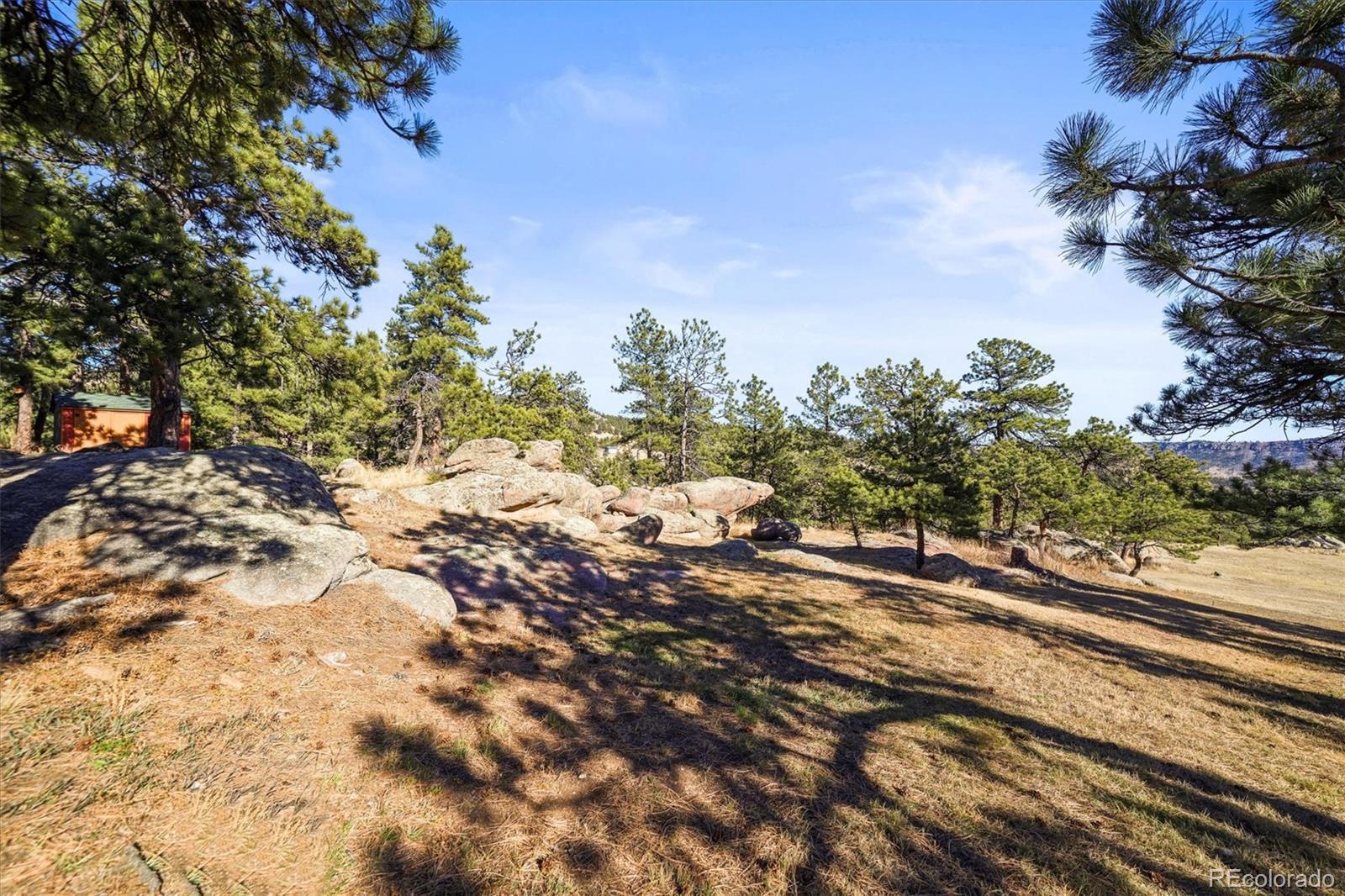 Dreamy Mountain Retreat on 33+ private acres with breathtaking mountain, valley and Denver city-light views from every room. You'll be intrigued by the Vail & Aspen inspired colors and design with stunning architecture including some timber-frame elements, hardwood floors, exposed beams and 9' ceilings. Sophisticated kitchen adjoins the dining area with fireplace and expansive windows framing the spectacular scenery. Wrap-around deck is perfect for outdoor entertaining or enjoying wildlife. Or cozy up in the living room with fireplace that provides a welcoming space for winter evenings while a separate living area extends to the covered porch that invites morning coffee or quiet time. Main floor 4th bedroom with 3/4 bath or use as study/office. Bask in the elegant primary bedroom featuring en-suite bath, 2 closets & balcony overlooking the panoramic views. 2nd floor with 2 additional bedrooms, full bath and spiral staircase leading to a finished loft - an ideal tree-house-style office or extra living space. There's a must-have finished walkout basement with rec room, office (could be non-conforming 5th bedroom) or easily convert to an ADU (has 2nd sink & laundry hook up). Car enthusiasts, hobbyists or those seeking a workshop will appreciate the detached 4-car garage (1,160 SF) with steel beams, concrete walls, cedar siding, COR-TEN metal roof. Breezeway-attacheds to 3-car garage with built-in shelving, workbench, 220V & 2 mini-splits for heating & cooling. The home is thoughtfully equipped with Central AC, two furnaces, tankless water heater and a high-producing domestic water well for effortless comfort. Nestled among natural forest, open meadows and rock outcroppings, this property feels like a private state park. Just outside Boulder with the hip town of Lyons just minutes away and larger shopping in Boulder or Longmont just a short drive further. A true sanctuary that offers privacy, beauty and an unmatched lifestyle. Hurry this one won't last long!