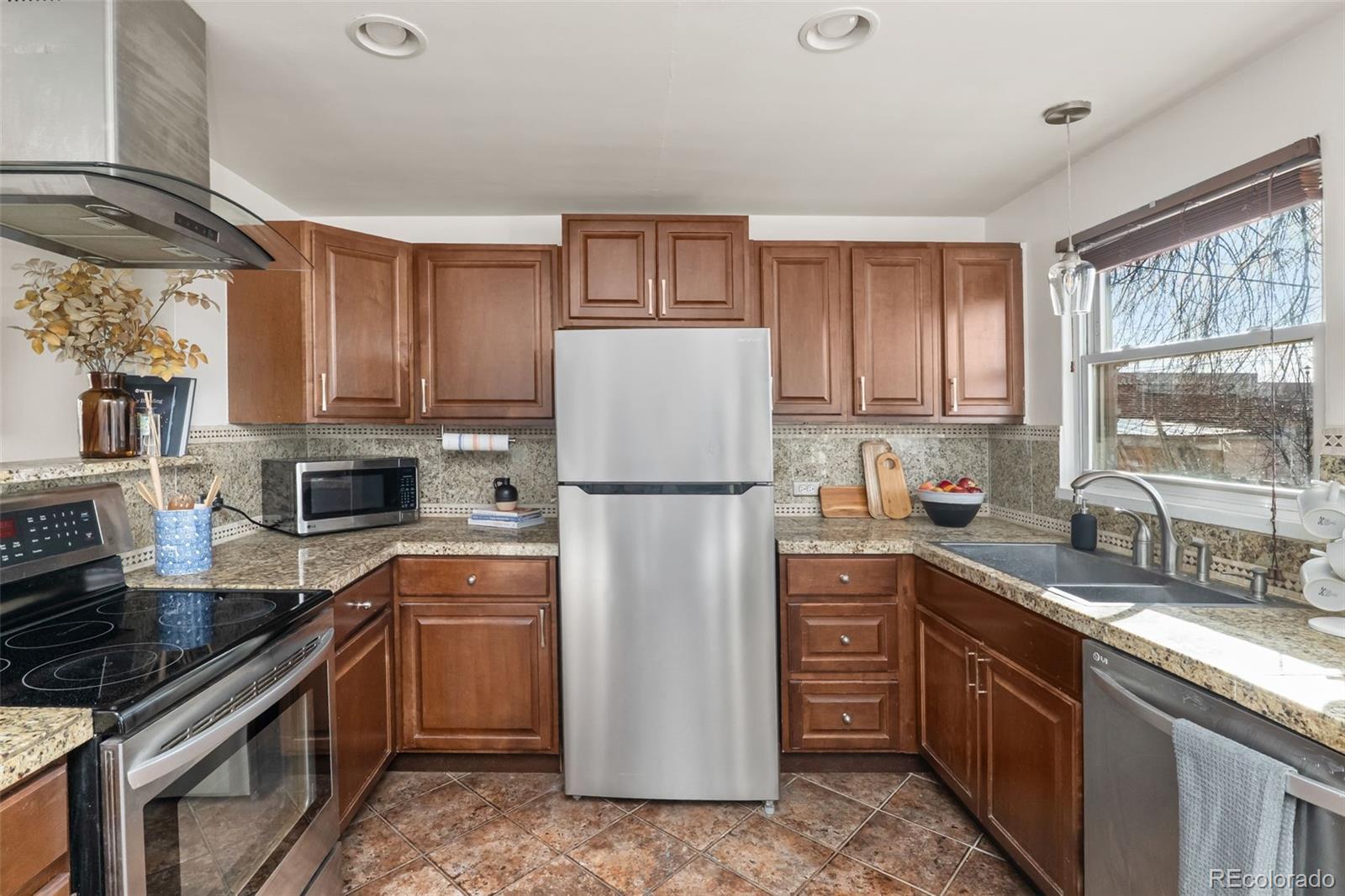 Set walking distance to Englewood Town Center, South Broadway, the Englewood light rail station and miles of bike trails, this three-bedroom, two-bath Englewood bungalow delivers on walkability and a connected lifestyle. Inside, the freshly painted interior, along with hardwood floors create a clean, bright feel. The open kitchen features granite tile countertops, updated cabinetry, and updated appliances — ideal for everyday living and casual hosting. With two bedrooms and a full bath on the main level, the layout is both comfortable and effortlessly functional. The finished basement adds a second living space that works perfectly as a media room (TV included!), home office, guest space, or workout zone, a large conforming bedroom with en suite access to the updated bathroom, and plenty of additional storage. Carefree ownership with recent systems updates including new driveway, newer furnace, and central A/C. Outside, the backyard and patio offer space to relax, entertain, or unwind after walking to dinner, meeting friends on South Broadway, or hopping on the nearby trails. If you’re looking for character, location, and lifestyle — with the right updates already in place — this Englewood home checks all of the boxes.