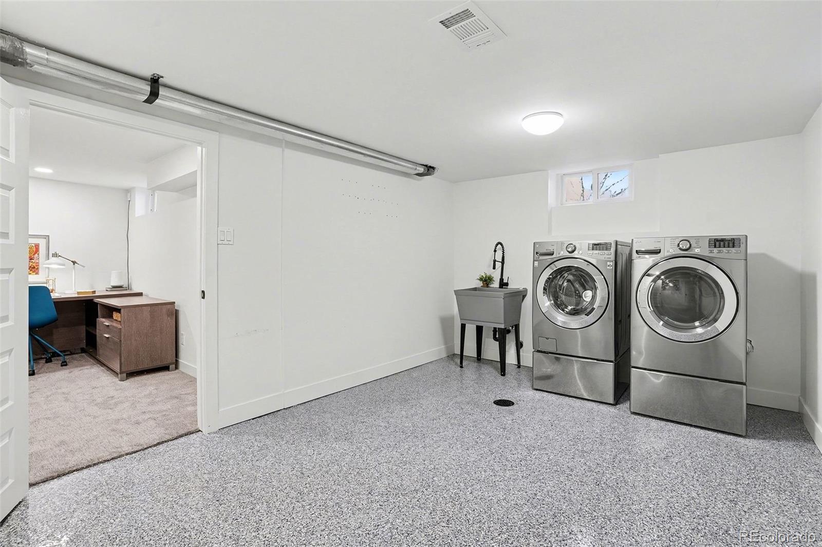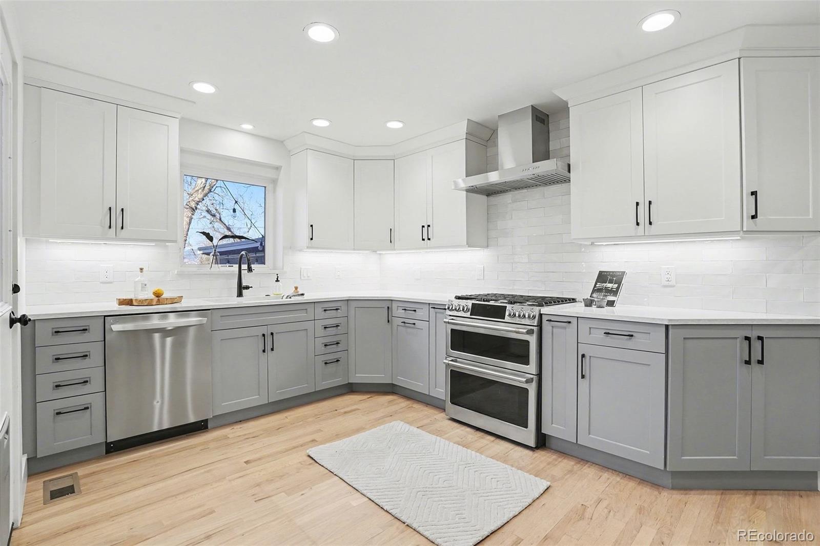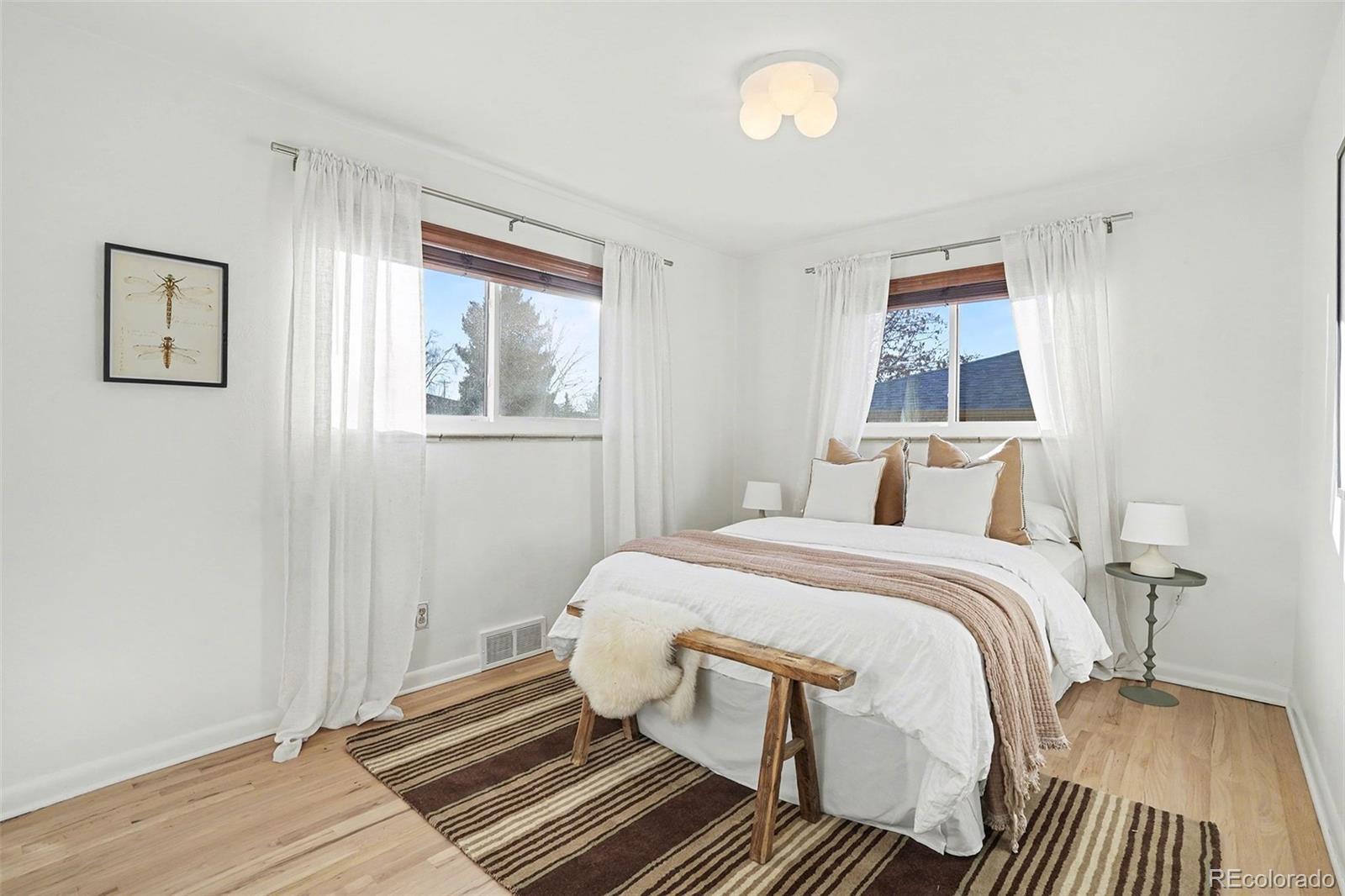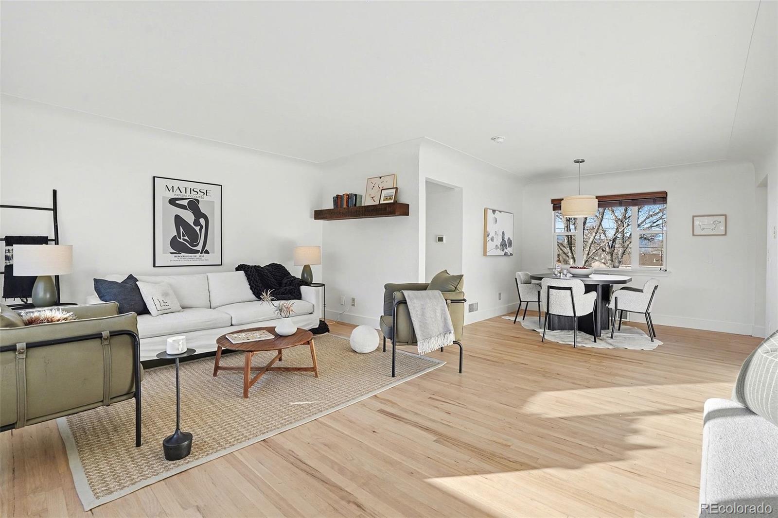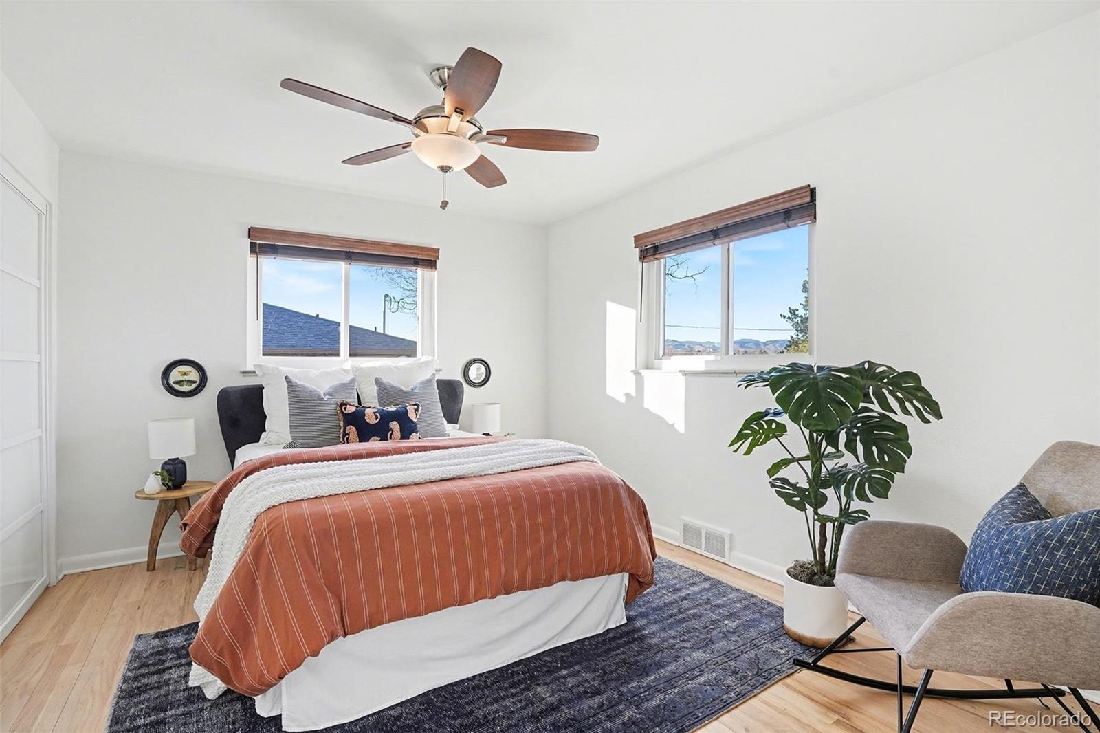 Perfectly positioned in the Inspiration Point neighborhood on the outskirts of Berkeley, this modern, impeccably maintained ranch offers an exceptional blend of neighborhood charm, convenience, and thoughtfully designed living space. Set on a quiet street and close to Denver’s most loved parks, trails, dining, and commuter routes, this home delivers an ideal location that truly elevates everyday living. Inside, the home offers generous square footage evenly divided between the main level and a fully finished basement, creating flexibility for both daily life and entertaining. The main floor features two comfortable bedrooms, an updated modern 3/4 bathroom, and a light-filled living room that flows effortlessly into the dining area perfect for gathering with family and friends. Enjoy the sleek, contemporary, updated kitchen featuring abundant custom cabinetry, a clean modern aesthetic, and SS appliances. West-facing windows capture stunning mountain views and glowing sunsets, while the Trex deck just off the kitchen invites evenings outdoors around a fire, overlooking the spacious backyard with mature trees. The lower level expands the living space with a second family room complete with custom built-ins and ample space for a media setup, an open office or flex area, two additional bedrooms with egress windows, and a full bathroom. Newer carpet, neutral paint, and a generous laundry room with utility sink, epoxy flooring and lots of room for storage add practicality to the space. Enjoy the attached one-car garage with epoxy floors in the winter and large concrete driveway for off street parking, and a fully fenced yard ideal for relaxing, entertaining, and pets. Located near Inspiration Point Park, Willis Case Golf Course, Clear Creek Trail, Berkeley and Lakeside Parks, Tennyson Street shops and dining, and with easy access to I-70, this home offers comfort, style, and an unbeatable Denver lifestyle in a truly desirable setting. You're going to love living here!