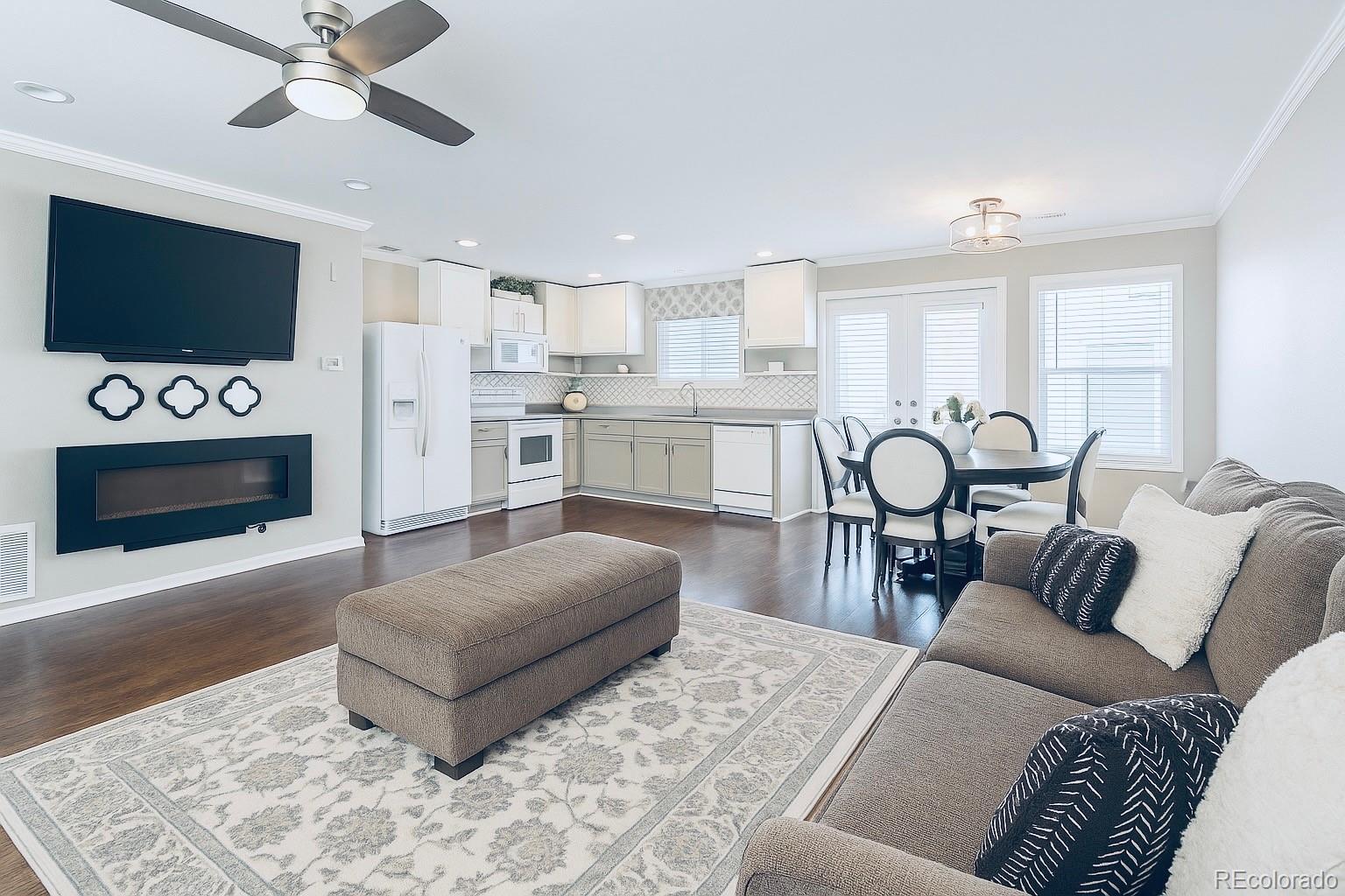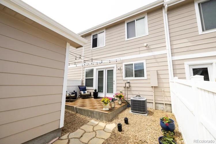 Welcome to 5780 Ceylon Street in the First Creek subdivision! This spacious and inviting 3 bed 2.5 bath townhome is totally move-in ready! Open floor plan with gorgeous laminate flooring throughout the main floor and new luxurious carpet on the upper level. The dining area and kitchen open to the fenced patio with easy access for entertaining. The detached garage and additional reserved space make parking a breeze. The main floor boasts an electric fireplace as well as a powder room and laundry with included washer and dryer. The alcove outside the entry door is ideal for a bistro set to enjoy your morning coffee or welcome guests. Upstairs, you'll find 3 bedrooms, with the master bedroom and ensuite full bath. The master also includes a large walk-in closet. Two additional bedrooms share another full bath with plenty of closet space. The upstairs includes additional storage in the linen closet as well. New roof installed this past spring of 2025! First Creek is conveniently located just off 56th Avenue and Pena Boulevard with quick access to DIA, E-470 or I-70 and downtown or the mountains plus light rail and a bus stop are close by. Shopping, parks and playgrounds are all within minutes! All of the Seller's beautiful furnishings are included in the sale if interested! Could be a perfect investment property or starter home. Immediate rental income with the property as it is! Please come and see for yourself, showings start this weekend!