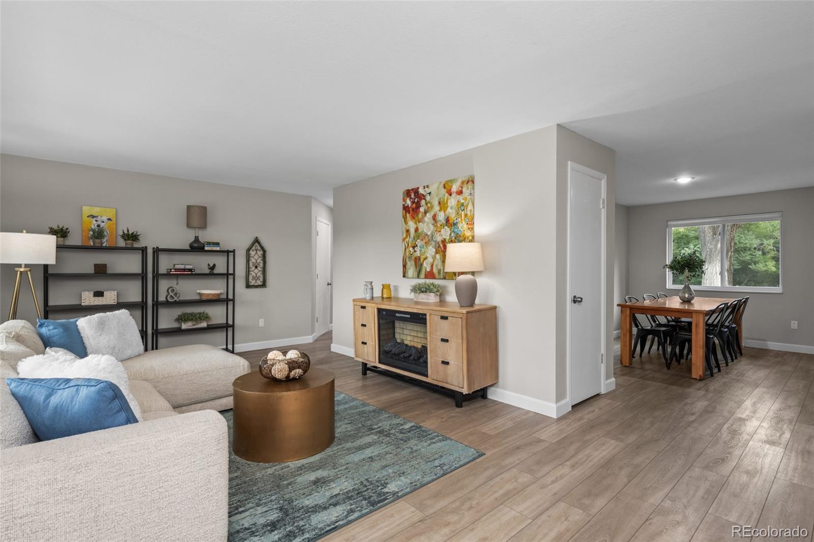 Welcome to 7596 E Davies Court, Centennial, CO 80112—a charming, move-in-ready ranch-style home ideally located on a quiet cul-de-sac in the highly sought-after Walnut Hills neighborhood. Situated within the Cherry Creek School District, this spacious 4-bedroom, 3-bathroom home offers approx. 2,593 finished sq ft on a generous 0.35-acre lot with mature landscaping and a serene, private backyard. Step inside to find fresh neutral paint and luxury vinyl plank flooring throughout. The large, light-filled living room flows seamlessly into the dining area and kitchen with breakfast bar seating, creating a perfect space for everyday living and entertaining. The cozy family room features a wood-burning brick fireplace with mantel and sliding doors that open to an expanded deck, ideal for enjoying Colorado’s beautiful seasons. The main floor boasts a primary suite with a private 3/4 en-suite bath, plus two additional bedrooms and a full hallway bath. Downstairs, the finished basement offers a spacious second 2nd family/media room, a perfect guest bedroom with en-suite 3/4 bath, and a large laundry room with ample storage and workshop space. Additional highlights include: oversized 2 car garage with EV charging station, front and rear sprinkler system, updated electrical panel, newer sewer line, and a private, fenced backyard perfect for gatherings or relaxation. This home blends comfort, functionality, and location—just minutes from parks, trails, shopping, DTC, and major highways. Please see agent remarks below prior to showing.