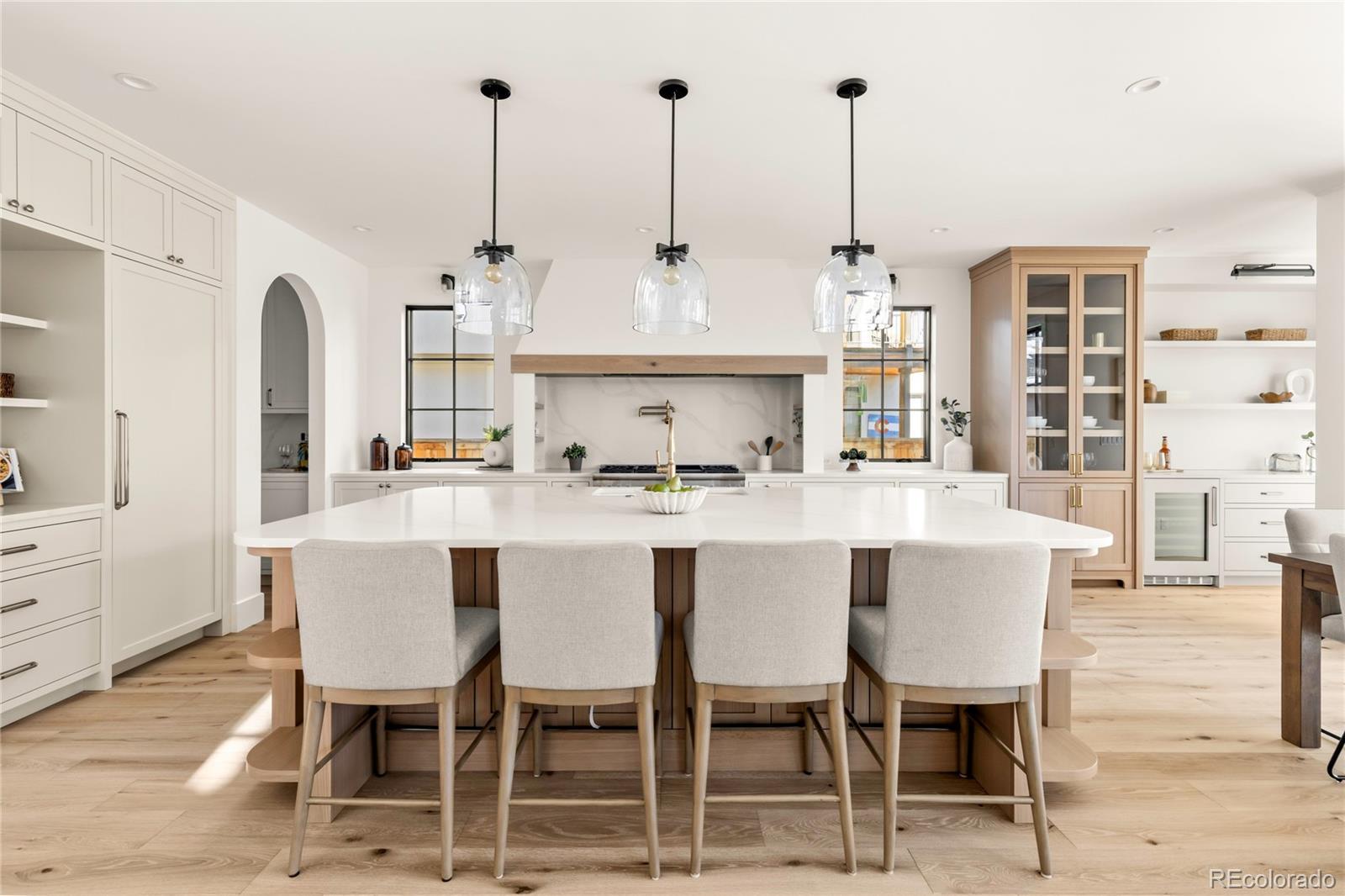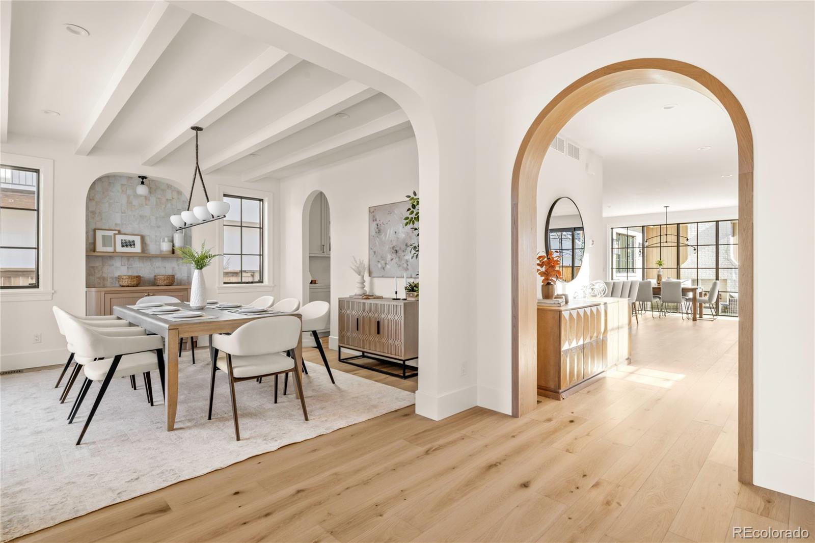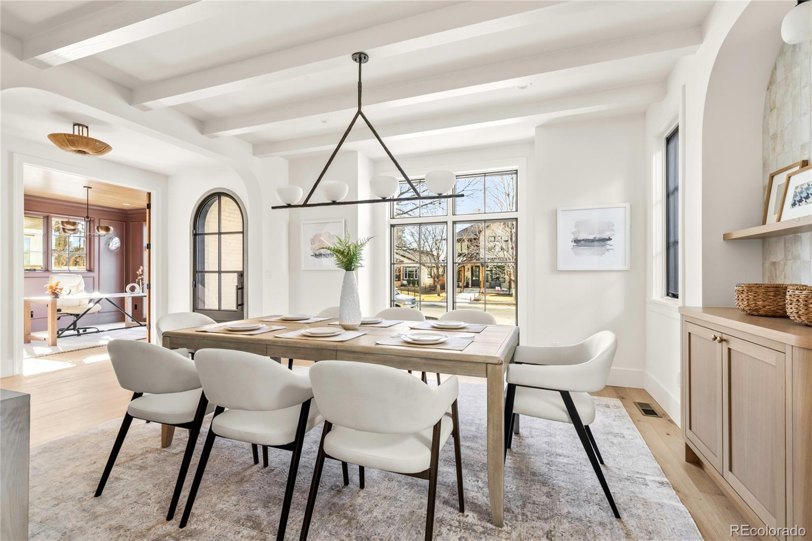 Timeless English Tudor by ATK Construction, offering a refined blend of classic architecture & modern luxury. Striking beamed ceilings, wood-clad arches & handcrafted built-ins create warmth and character throughout. The slurried brick exterior evokes charm, while limestone patios/walkways create seamless indoor-outdoor living.The showcase kitchen features custom cabinetry, oversized refrigeration units, a dedicated bar area with wine+beverage, and a massive island perfect for gatherings. A handcrafted hood surrounds the chef’s range, serving as a striking centerpiece. A sun-filled breakfast nook, encased by floor-to-ceiling windows, overlooks the outdoor oasis with multiple entertaining areas & a stunning exterior fireplace-ideal for quiet evenings. The butlers and walk-in pantry provide ample space to keep small appliances out of sight. The great room is anchored by a stone fireplace & beautiful built-ins, with graceful arches & wood-clad details providing elegance. A sophisticated office features paneling & a French oak ceiling. The mudroom off the attached garage includes a spacious built-in bench, while the powder is finished with an Arabescato marble vanity. The primary suite is a true retreat, vaulted ceilings w/exposed beams and shiplap detailing, a custom built-in corner unit forming a fireside reading nook, and a spa-like bath with honed marble & separate vanities. The walk-in closet connects to a beautiful laundry room for exceptional convenience. Additional upper bedrooms are all ensuite and filled with natural light. The lower level showcases a tavern-inspired bar, large game and dining area, family room, two bedrooms-including one styled as a home gym, ceilings tall enough for a golf simulator and ample storage throughout. With thoughtful design, exceptional craftsmanship, and outstanding indoor-outdoor spaces, this home offers an unparalleled lifestyle in one of Denver’s most coveted neighborhoods—a truly distinctive offering not to be missed.