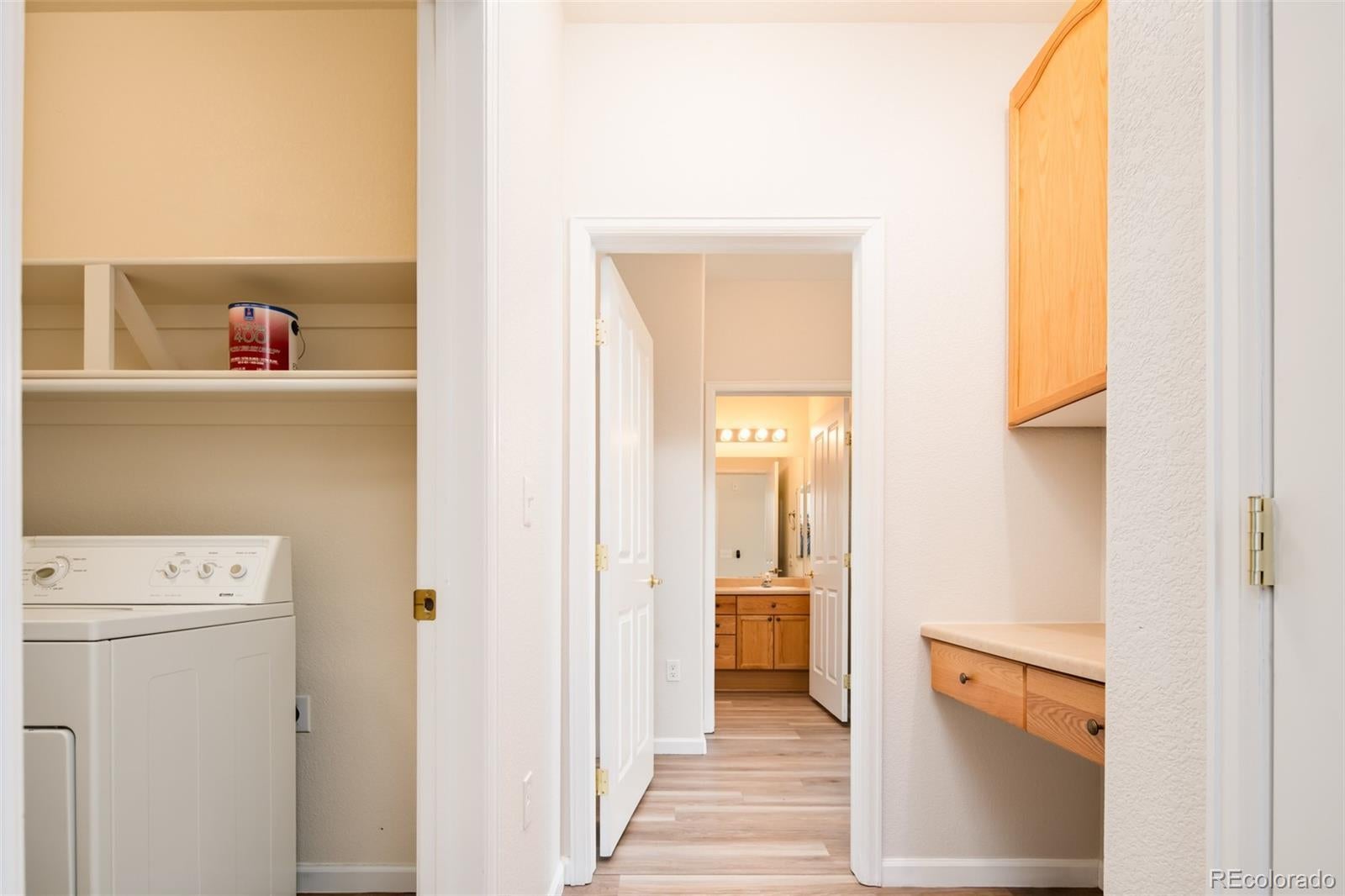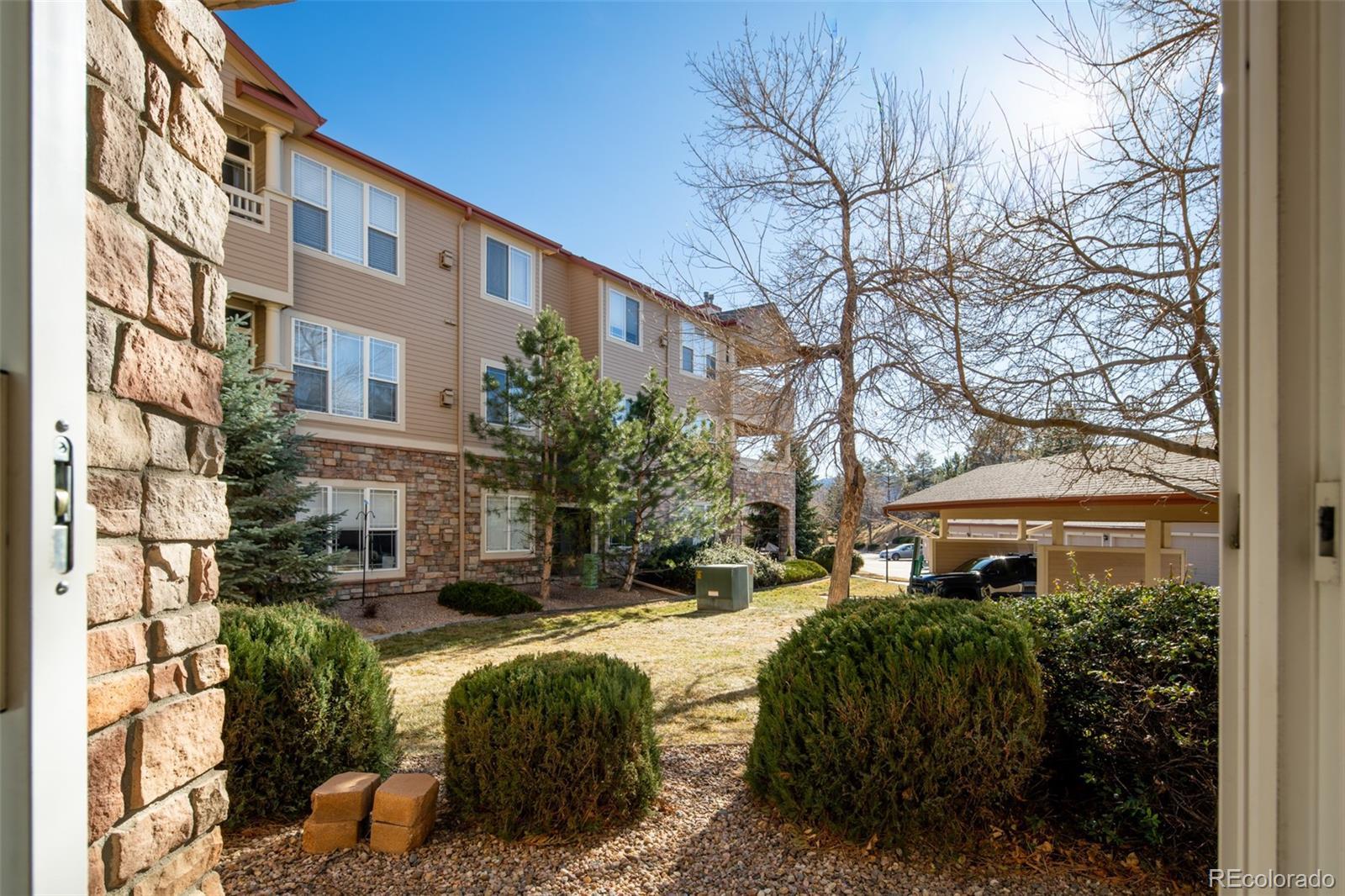 Welcome home to Redstone Ridge Condominiums in Southwest Littleton’s Ken Caryl Community. This beautifully updated, ground-floor 2-bed/2-bath is brimming with modern conveniences and ease. Bedrooms are draped in natural light and paired with custom built-ins in the adjoining closets. The primary boasts a ¾-ensuite bath with two sinks, large shower and linen closet, while the second ¾-bath is great for guests. Among the bedrooms is a well-appointed and spacious laundry room, as well as a desk with cabinets above for organizing life’s demands. The open floor plan features a living room with gas fireplace and cheerful dining area with exterior door to the covered patio for morning coffee and evening conversation during the summer months. Adjacent the dining room is a highly practical kitchen with stainless-steel appliances and plentiful cabinetry. The unit includes a dedicated single-car garage, off-street parking and community amenities, including pool, spa/hot tub, fitness center and clubhouse. Near C-470 for seamless travel into the Mile High City, The Foothills and beyond; this location is within close proximity to local retail, restaurants and everyday conveniences; plus, parks, open space and trails, the Chatfield Reservoir and Denver Botanic Gardens.