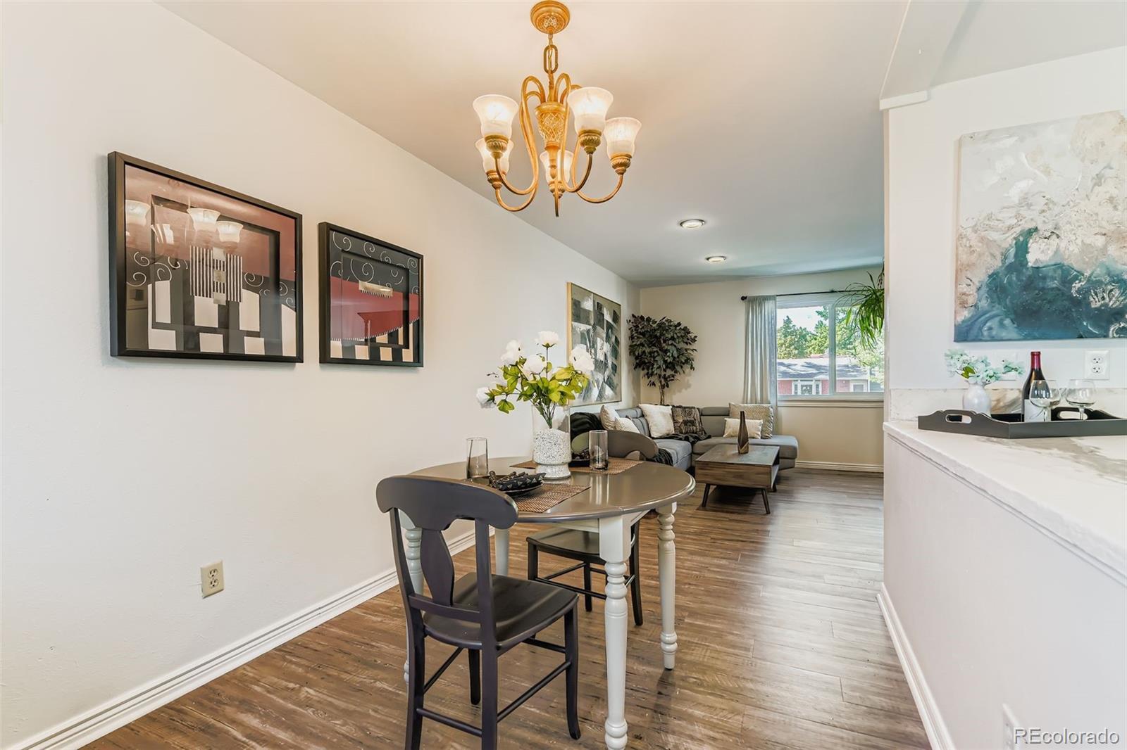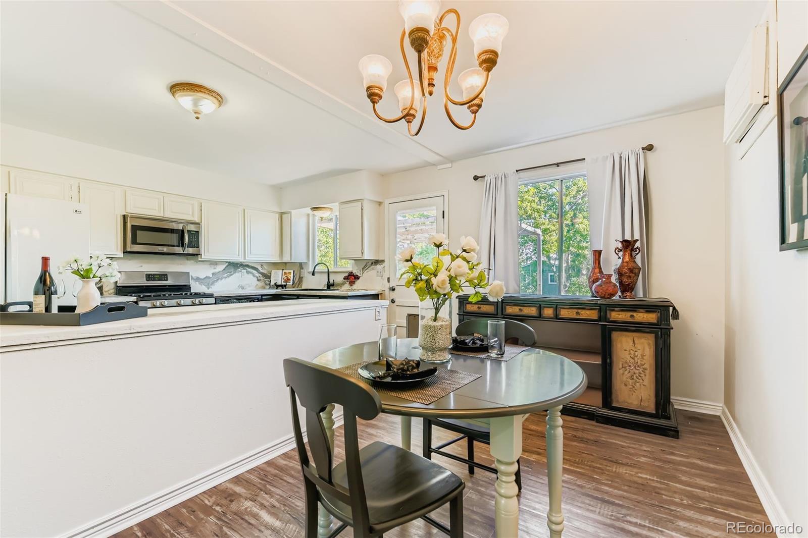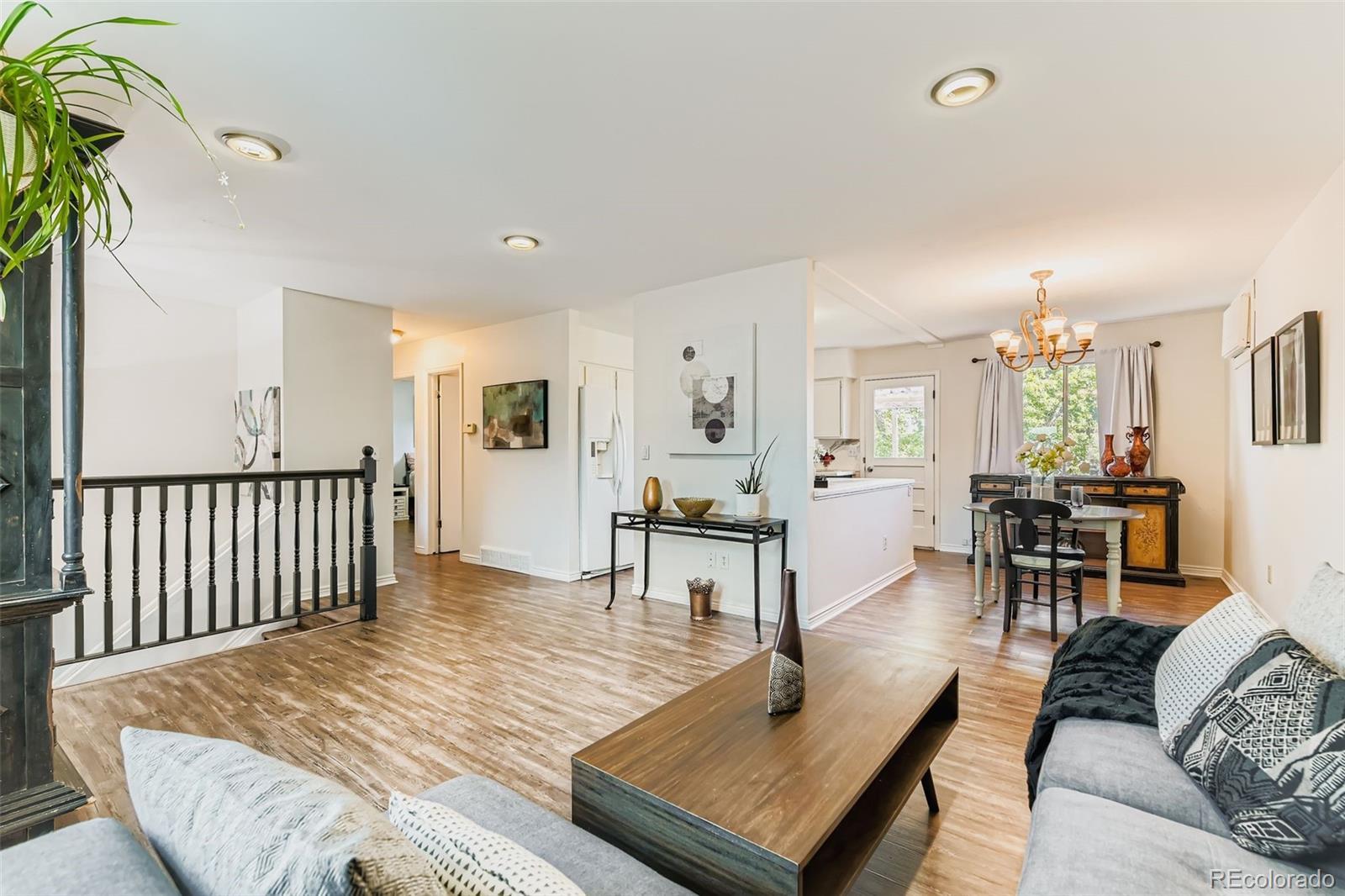 Welcome Home! This Arvada Beauty has four bedrooms, two baths, and dual living areas. Updates to the home include kitchen, bathroom, LVP flooring, interior paint, some interior windows, modernized exterior paint and new concrete driveway. Conveniently located to Parks and Olde Town Arvada - centering around Olde Town Square, offering seasonal Sunday Farmers' Market, varieties of restaurants, Quaint shops, Craft brewerings and movie theater. Additionally, this level yard includes a shed and chicken coop. Close proximity to major throughways and highways.