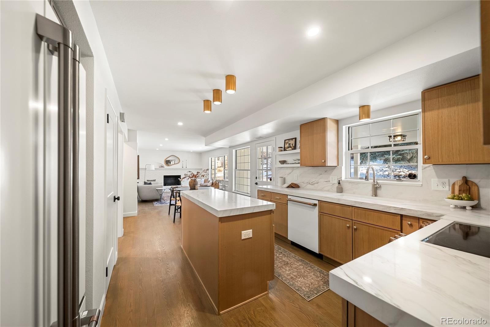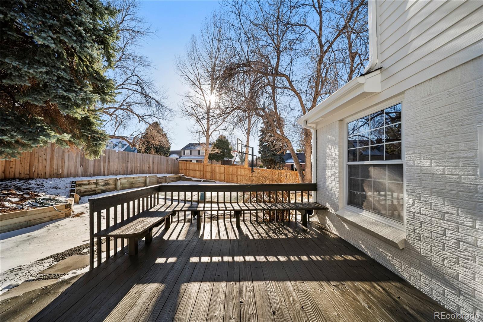 Welcome to 7154 S Newport Way, a fully remodeled, move-in-ready residence in the heart of Homestead in the Willows, one of Centennial’s most established, sidewalk-lined neighborhoods with mature trees and a strong sense of community. Thoughtfully renovated in 2025–2026, this home delivers best-in-class finishes, timeless materials, and enduring craftsmanship—offering true turnkey living with meticulous attention to detail throughout. The main level is designed for everyday comfort and effortless entertaining, featuring a family room with a custom coffered ceiling, a separate living room with an updated fireplace, and a beautifully curated kitchen with Café appliances, thick quartz countertops, custom cabinetry, and a dedicated coffee bar with wine refrigerator. A formal dining room, renovated powder bath with new tile and fixtures, and a custom mudroom complete the space. Upstairs, four bedrooms include a spacious primary suite with a fully renovated bath, double vanity, walk-in shower, and walk-in closet. Three additional bedrooms share a well-appointed full bath. The finished basement adds valuable flexibility with a large living area, a conforming fifth bedroom with egress, and a beautifully finished bathroom—ideal for guests or extended living. Outside, enjoy a large fenced backyard with refreshed landscaping, basketball court, new pavers and mulch, a newly stained deck, and space to relax, play, or gather. Additional upgrades include refinished wood floors, new carpet, updated electrical, all-new lighting, new doors and hardware, new interior and exterior paint, new garage door, updated plumbing fixtures throughout, butcher-block laundry counters, and new washer/dryer. Located within the Cherry Creek School District, this home offers walkable access to neighborhood pools, parks, trails, and tennis courts, with convenient proximity to the Denver Tech Center, shopping, and dining—an exceptional opportunity in one of Centennial’s most desirable neighborhoods.