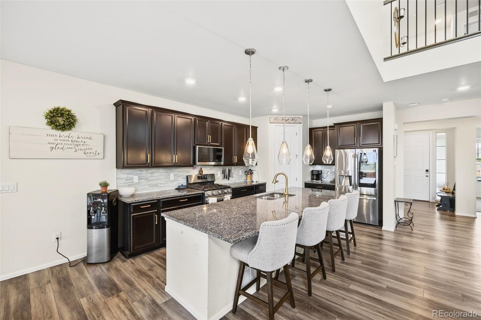 Sellers are offering a credit to buyers of up to $15,000 to be used towards closing costs, prepaid items or rate buy down! Welcome to this stunning Stonehaven model by Lennar—move-in ready and filled with modern upgrades. This 5-bedroom, 4-bathroom home features an open floor plan with vaulted ceilings, creating a bright and airy feel throughout. The chef’s kitchen includes all new appliances, ample cabinetry, and a large island that flows seamlessly into the dining and living areas—perfect for entertaining. A main-level bedroom with a full bath offers flexibility for guests or a home office. Upstairs, spacious bedrooms and a serene primary suite provide private retreats. Enjoy the expansive backyard with a covered patio and peaceful open space views. The full unfinished basement, complete with rough-in plumbing and a radon mitigation system, is ready for your future vision. Additional highlights include a 3-car garage, $5,000 GemStone smart outdoor lighting, solar thermal energy, and smart-home features for convenience and efficiency. This is the perfect blend of comfort, style, and sustainability!