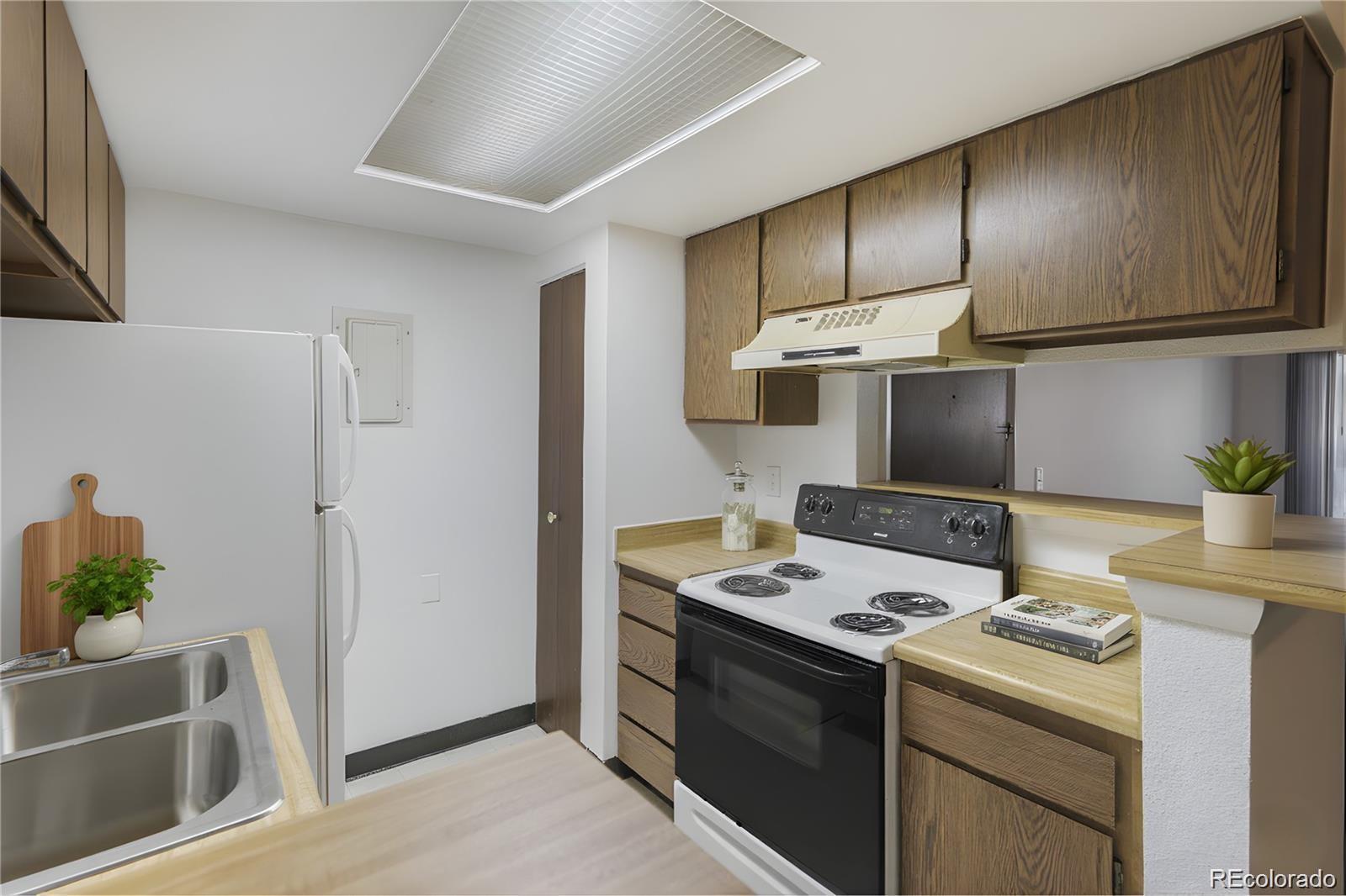 RARE FIND! Don’t miss this incredible opportunity to own TWO additional parking spaces: a garage space plus a reserved outdoor spot! Nestled in a quiet Aurora community, this home offers comfort and peace of mind with thoughtful upgrades, including a BRAND-NEW furnace & electrical box, new soft carpeting, fresh interior paint, and blackout blinds to filter out daytime rays. JUST ADDED: New range hood, new bathroom flooring (not pictured) and new bathroom fan. Cozy up to the wood-burning fireplace in the open living room that easily connects to the kitchen and breakfast bar. The spacious primary bedroom includes a generous walk-in closet for your storage needs, while the bathroom features a newer vanity and medicine cabinet. New Electrical box as well for ease of mind. Step outside to your own covered patio, surrounded by beautifully maintained grounds cared for by the community association. Residents also enjoy access to a community pool, along with included trash and snow removal services. Conveniently located just minutes from I-225, public transportation, grocery stores, schools, shopping, and dining, this home blends comfort, convenience, and superior value with its new additions and parking spaces. Whether you’re purchasing your first home, downsizing, or seeking an investment opportunity, this home is ready to welcome you into your next chapter!