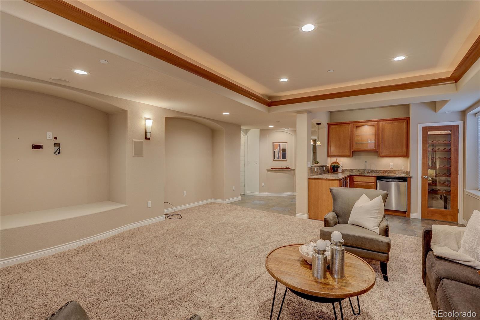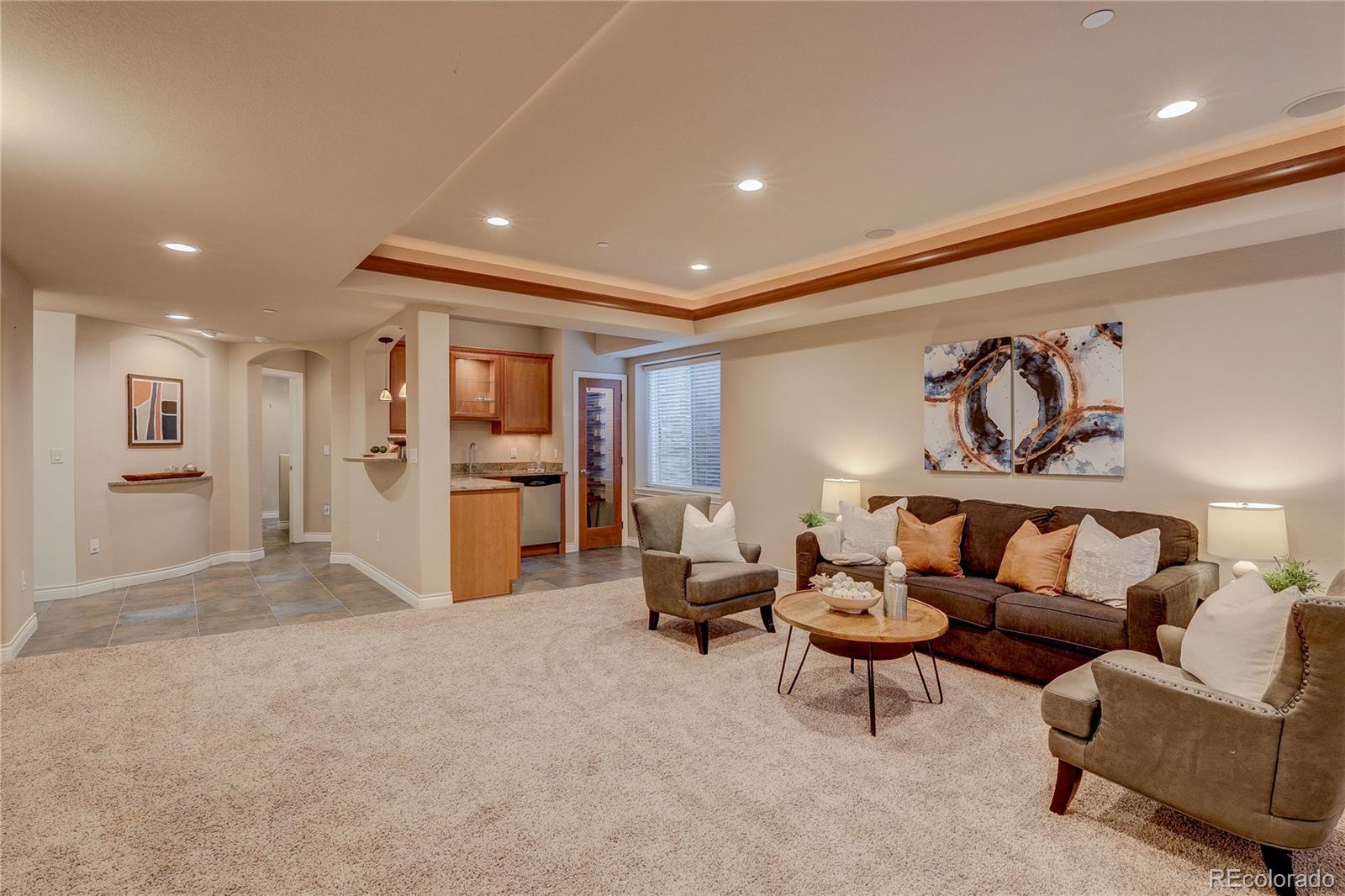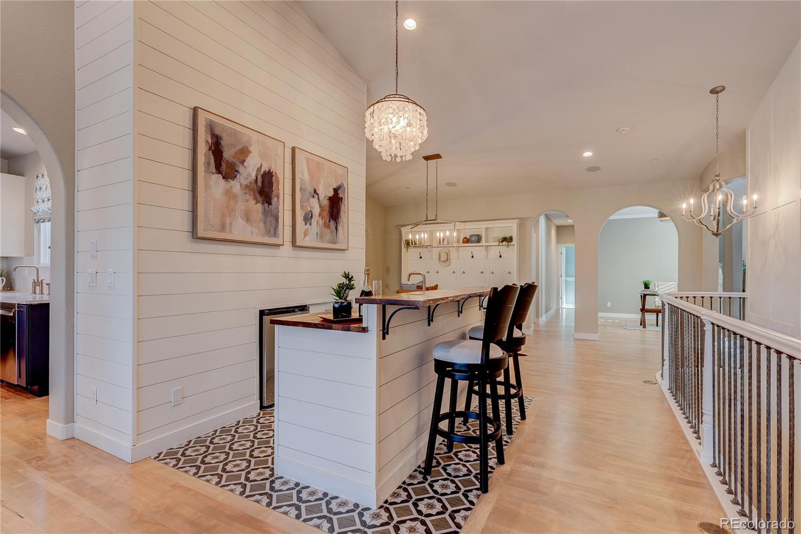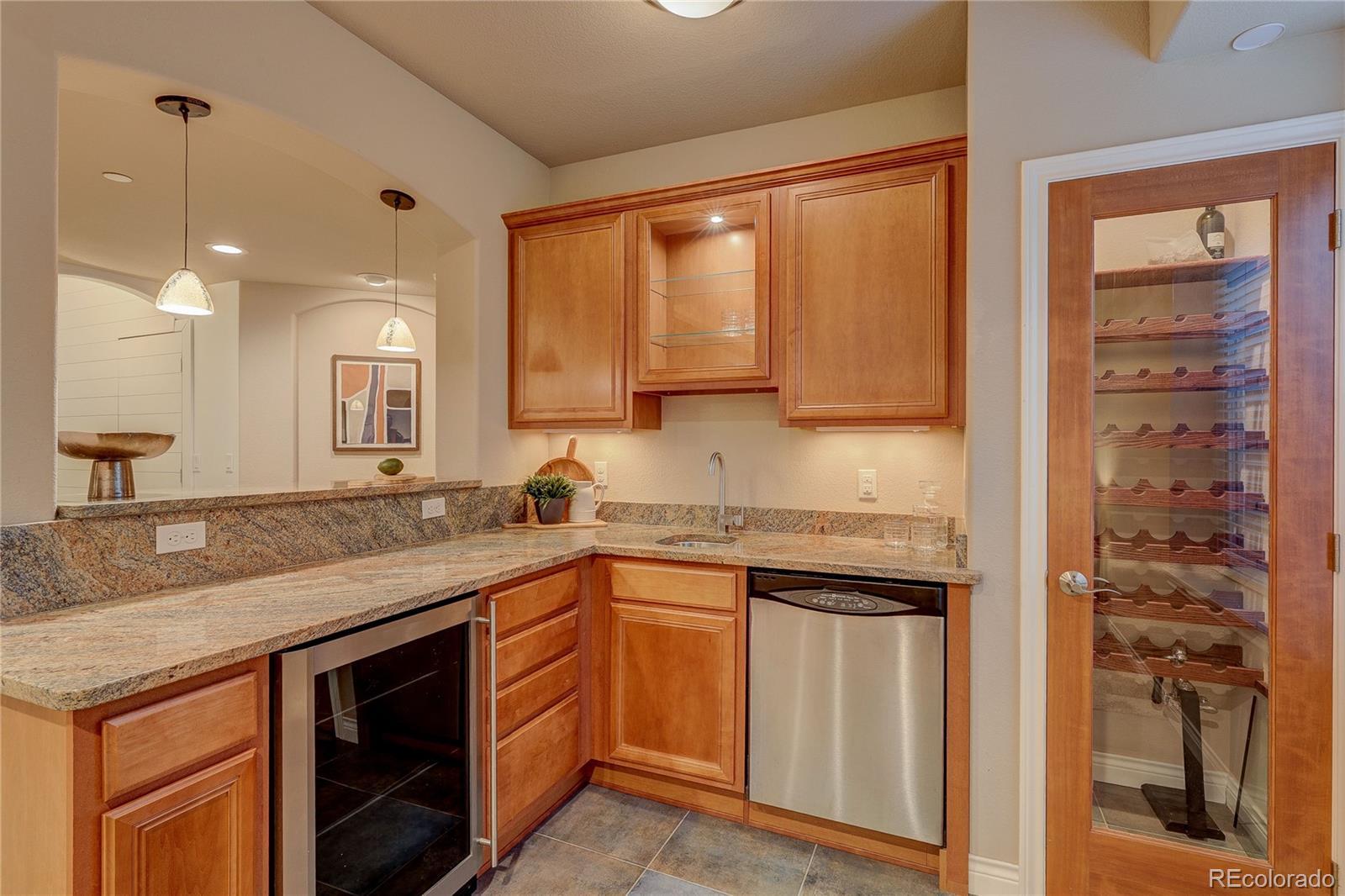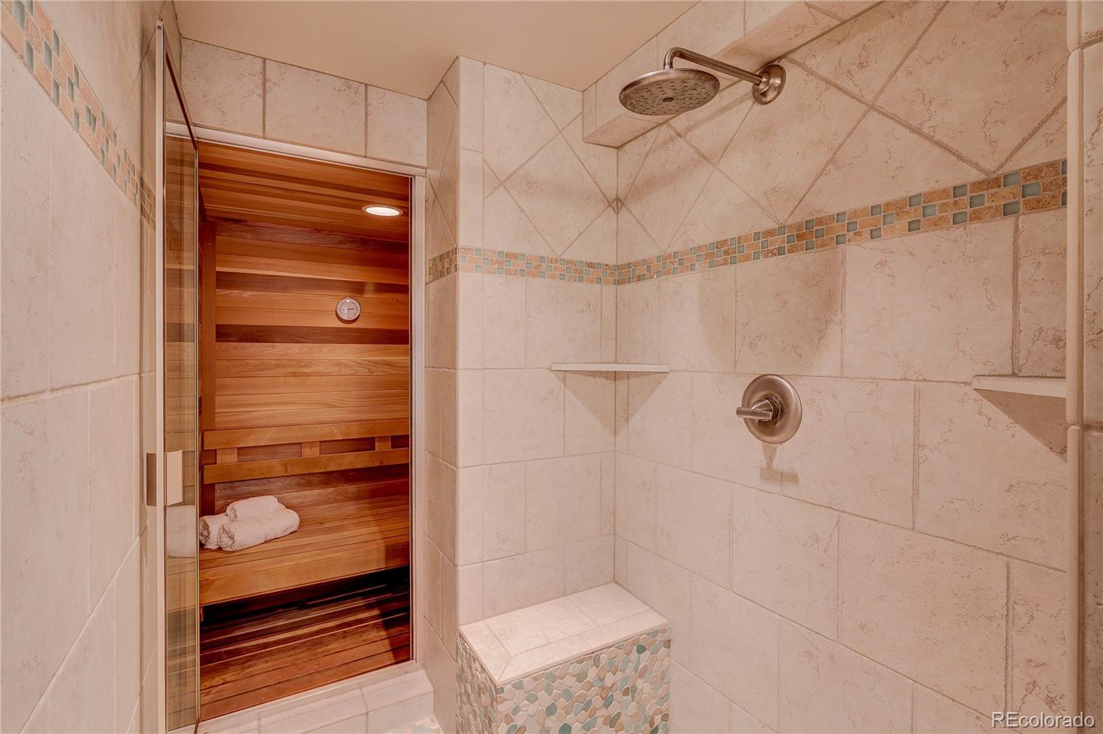 Welcome to luxury living in the gated community of The Village at Castle Pines. This beautifully updated home offers the perfect blend of comfort, style, and resort-style amenities. The heart of the home features an updated kitchen with modern finishes, ideal for everyday living and entertaining. Newly refinished hardwood floors enhance the main level and upper areas, adding warmth and timeless appeal. The thoughtfully designed floor plan includes a spacious main-floor primary suite, providing privacy and convenience. Upstairs, enjoy an entertainment bar, perfect for hosting guests or relaxing evenings at home. The finished basement expands your living space with a wet bar, wine cellar, and plenty of room for recreation or media. After a long day, unwind in your own private sauna, creating a true spa-like retreat. Located within the secure, gated Village at Castle Pines, residents enjoy access to exceptional amenities including pools, fitness center, tennis and pickleball courts, miles of walking trails, parks, playgrounds, and vibrant community events. Surrounded by stunning natural landscapes and close to world-class golf, this home offers a lifestyle that is truly unmatched. A rare opportunity to enjoy refined living in one of Castle Pines’ most sought-after communities.