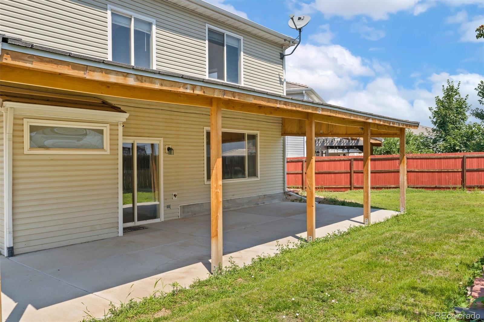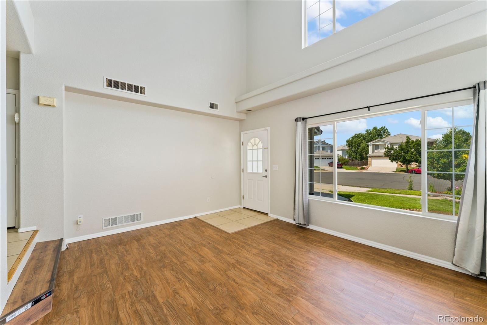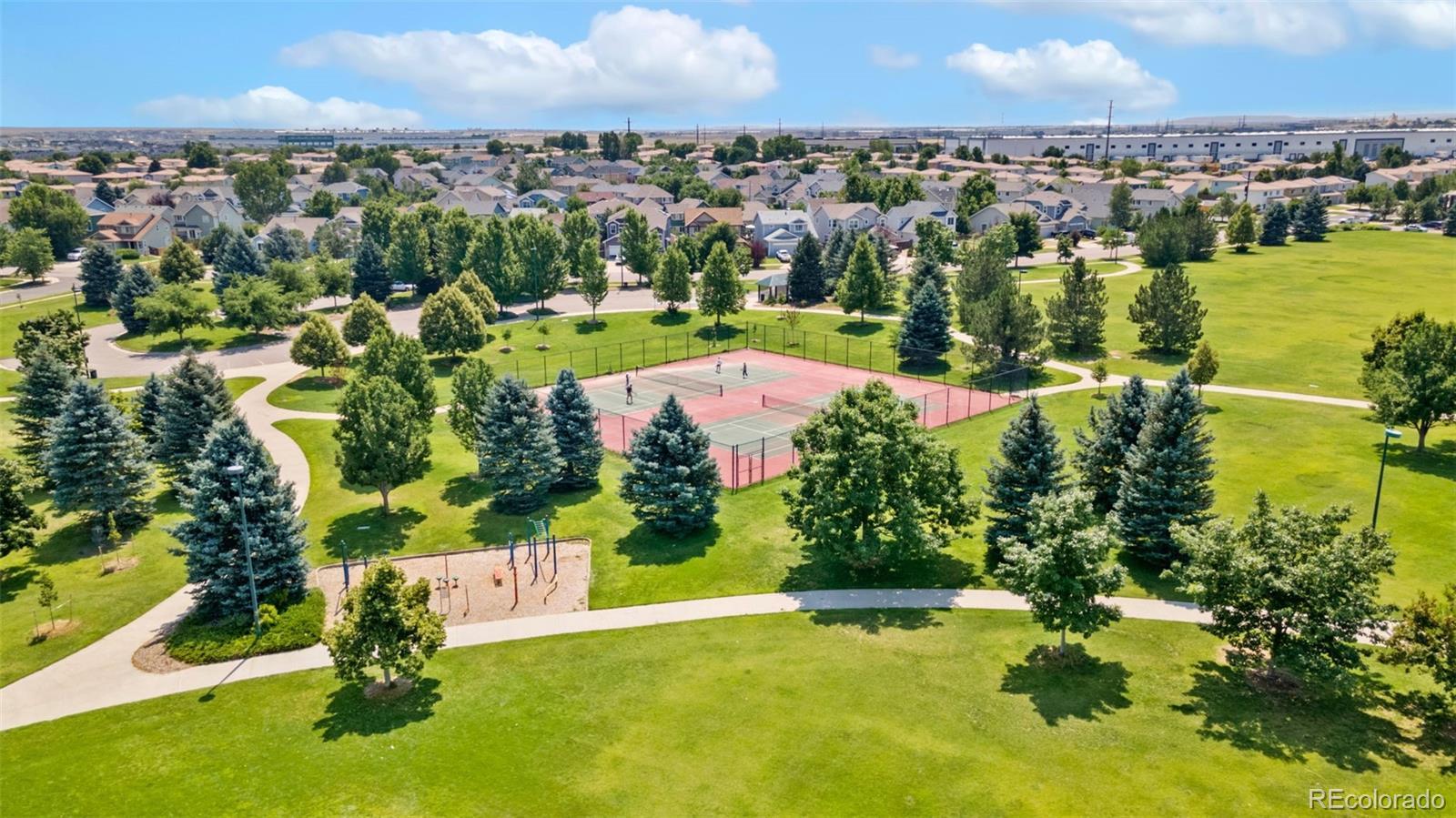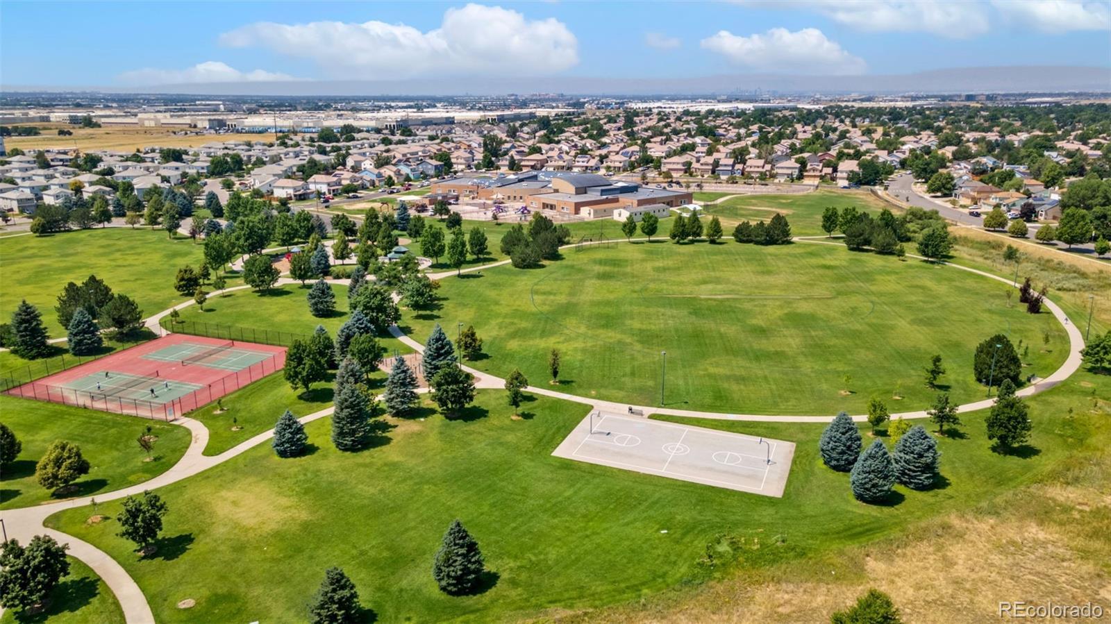 Welcome to this beautiful, spacious, and move-in-ready home in Denver’s highly sought-after Green Valley Ranch neighborhood, tucked away on a quiet cul-de-sac. This inviting residence offers 4 bedrooms and 2.5 bathrooms with a thoughtfully designed layout and fresh interior paint throughout. Upon entry, you are greeted by a vaulted-ceiling living room featuring a cozy fireplace, creating a warm and welcoming atmosphere. Luxury vinyl flooring extends throughout the main level and upstairs. The spacious kitchen offers ample cabinet storage and a dining area perfect for everyday living and family gatherings. The adjoining great room is ideal for movie nights and entertaining guests. Sliding doors lead to a covered patio and private, fenced backyard—perfect for relaxing after a long day or enjoying weekend downtime. Upstairs, the primary suite provides a comfortable retreat with an en-suite bathroom and walk-in closet. Three additional generously sized bedrooms share a full bathroom, making the space ideal for family or guests. The laundry room is conveniently located on the main floor. An attached two-car garage offers plenty of room for parking and storage. Ideally located just minutes from Denver International Airport, major highways, parks, schools, and shopping. Schedule your showing today!