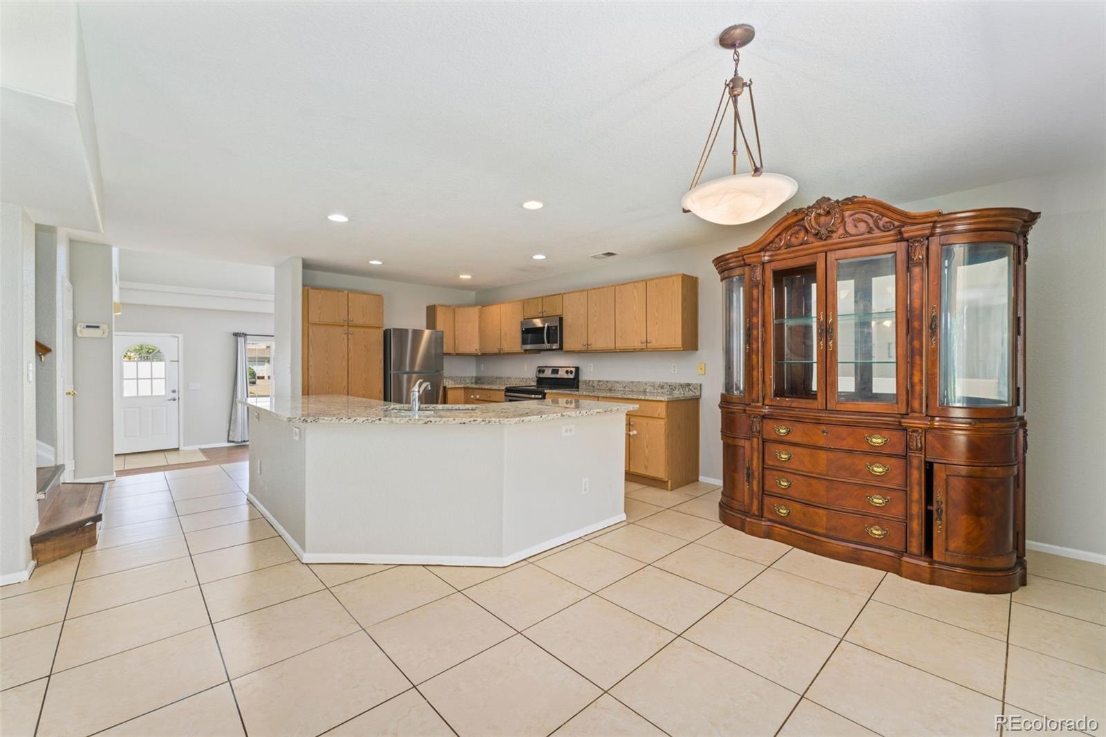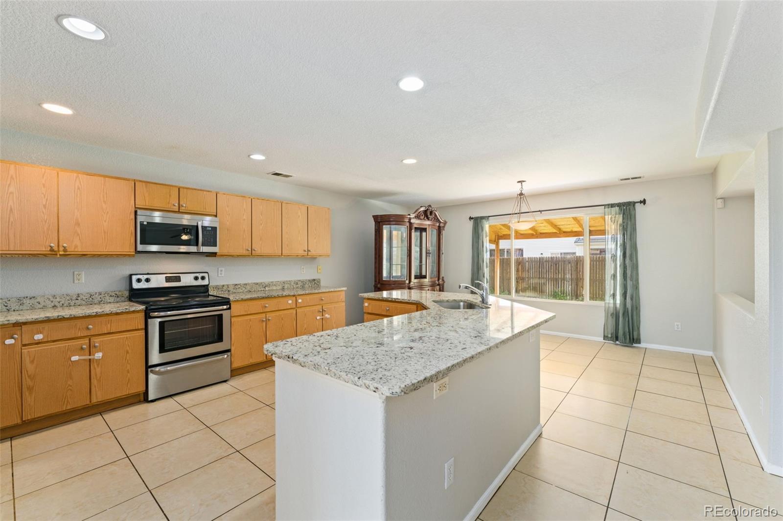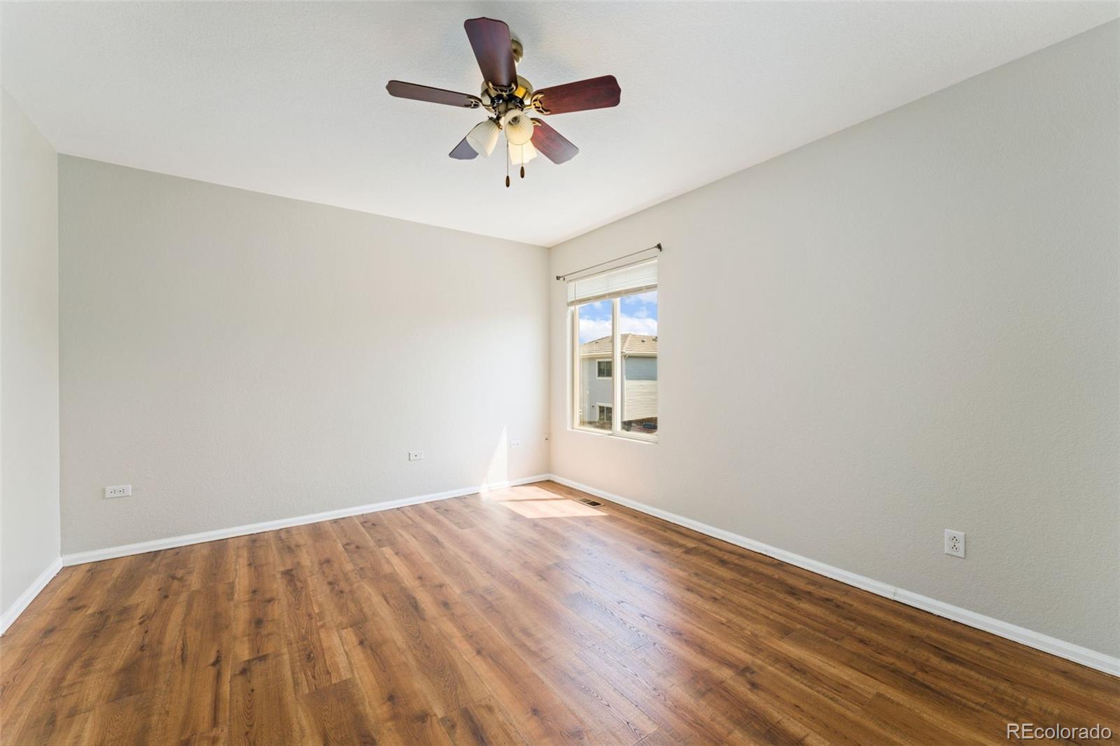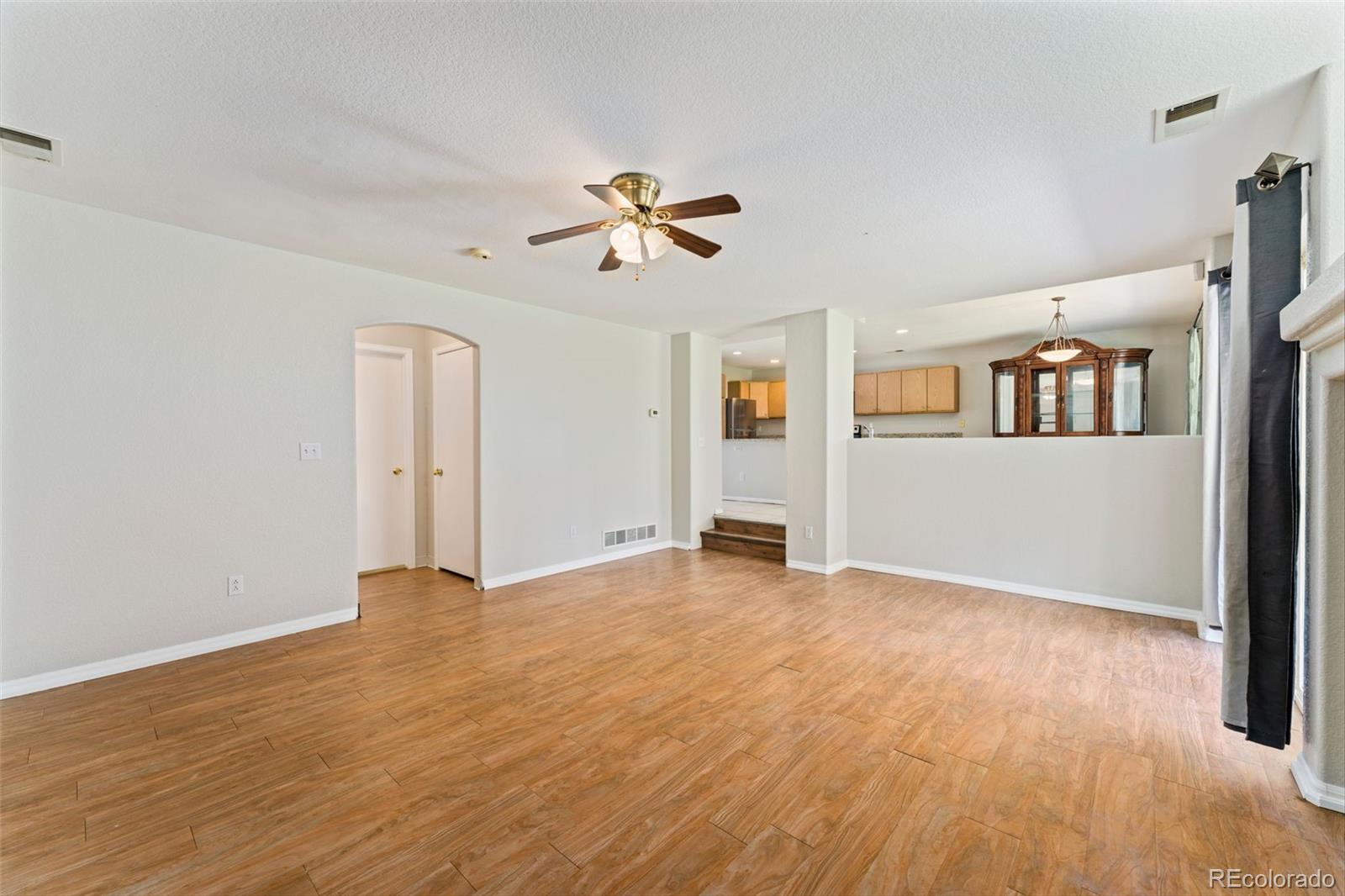 Welcome to this beautiful, spacious, and move-in-ready home in Denver’s highly sought-after Green Valley Ranch neighborhood, tucked away on a quiet cul-de-sac. This inviting residence offers 4 bedrooms and 2.5 bathrooms with a thoughtfully designed layout and fresh interior paint throughout. Upon entry, you are greeted by a vaulted-ceiling living room featuring a cozy fireplace, creating a warm and welcoming atmosphere. Luxury vinyl flooring extends throughout the main level and upstairs. The spacious kitchen offers ample cabinet storage and a dining area perfect for everyday living and family gatherings. The adjoining great room is ideal for movie nights and entertaining guests. Sliding doors lead to a covered patio and private, fenced backyard—perfect for relaxing after a long day or enjoying weekend downtime. Upstairs, the primary suite provides a comfortable retreat with an en-suite bathroom and walk-in closet. Three additional generously sized bedrooms share a full bathroom, making the space ideal for family or guests. The laundry room is conveniently located on the main floor. An attached two-car garage offers plenty of room for parking and storage. Ideally located just minutes from Denver International Airport, major highways, parks, schools, and shopping. Schedule your showing today!